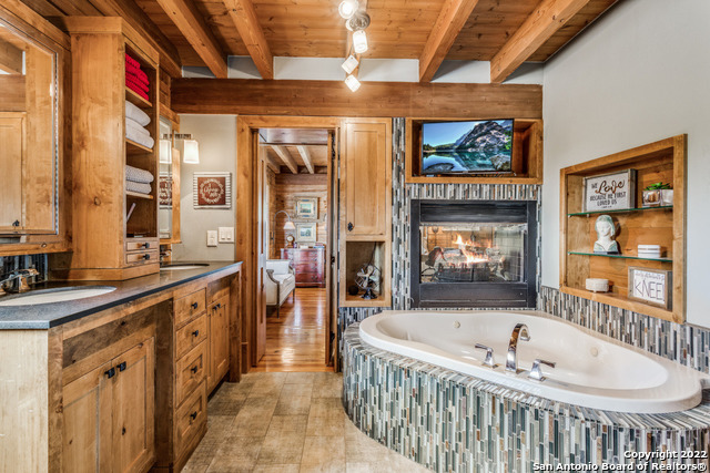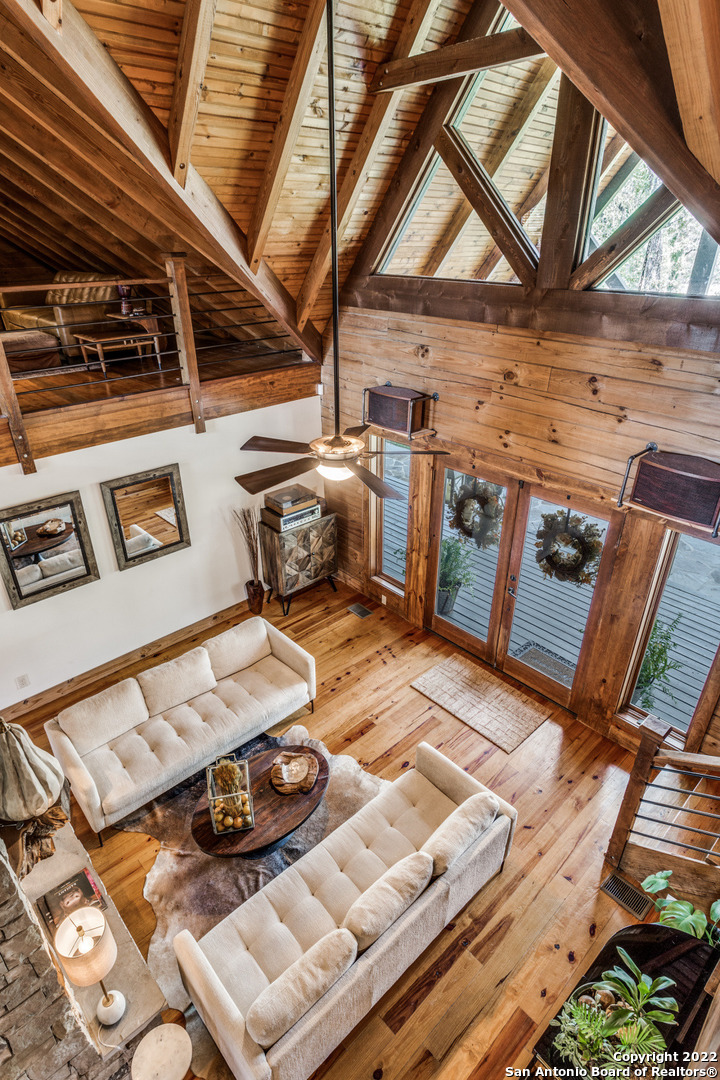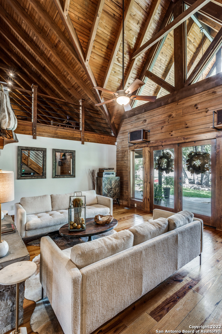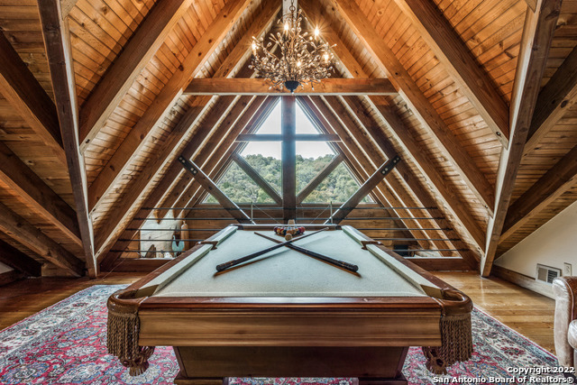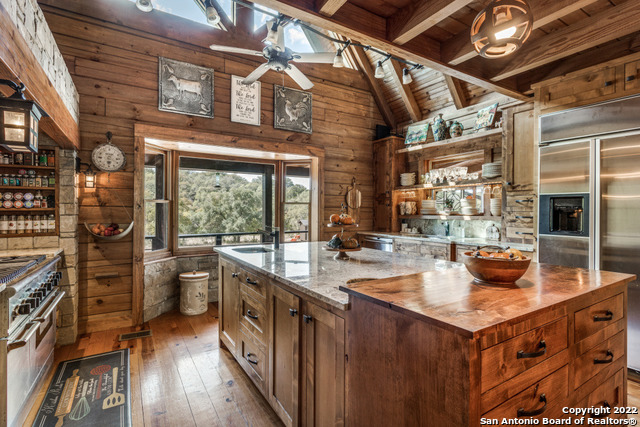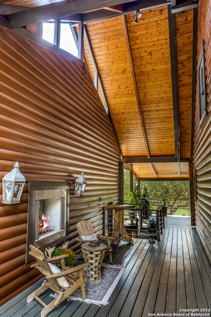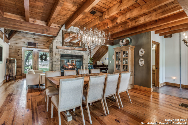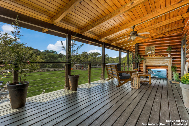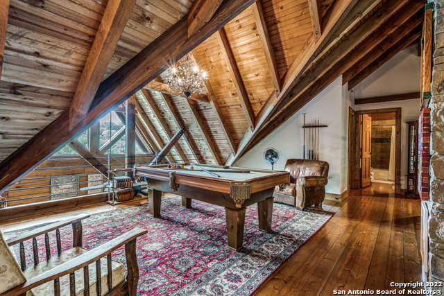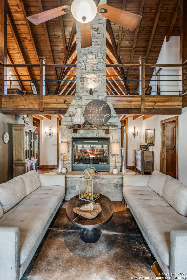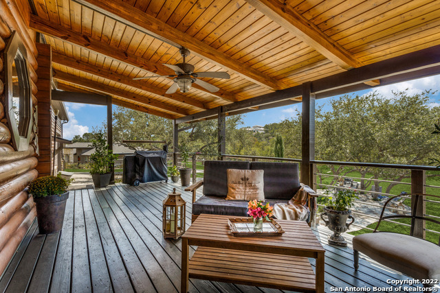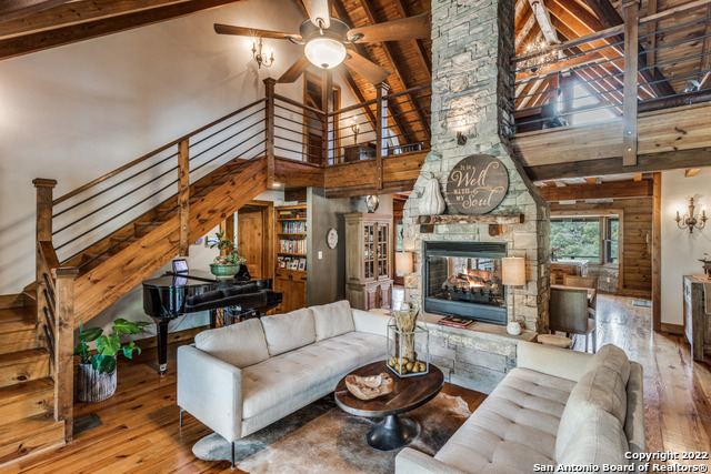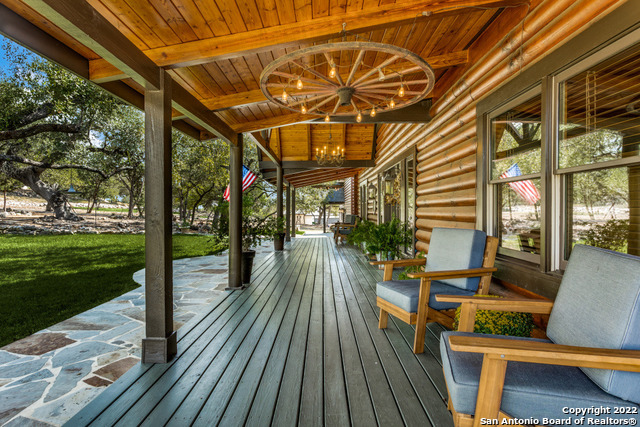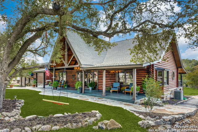Southern Living Magazine Worthy in this Beautiful Log Home on 2.90 acres with a wrap around porch that has 3 different sitting areas including a superior gas fireplace and completely landscaped. This home has upgrades throughout to include pine hardwood flooring, soaring ceilings, double fireplace in living and dining, chef's kitchen with knotty alder custom cabinets, granite countertops, commercial Thermador gas stove, and built in refrigerator. Master Suite downstairs has to offer a sitting area, master bath with jacuzzi bathtub and separate 3 head shower along with another bedroom downstairs. 2 bedrooms upstairs with a game room and band area. This home also has a 13 x 20 four classic car garage/workshop with separate storage upstairs. The amenities include a 60 acre park, walking trails, pool, sports center and community events.