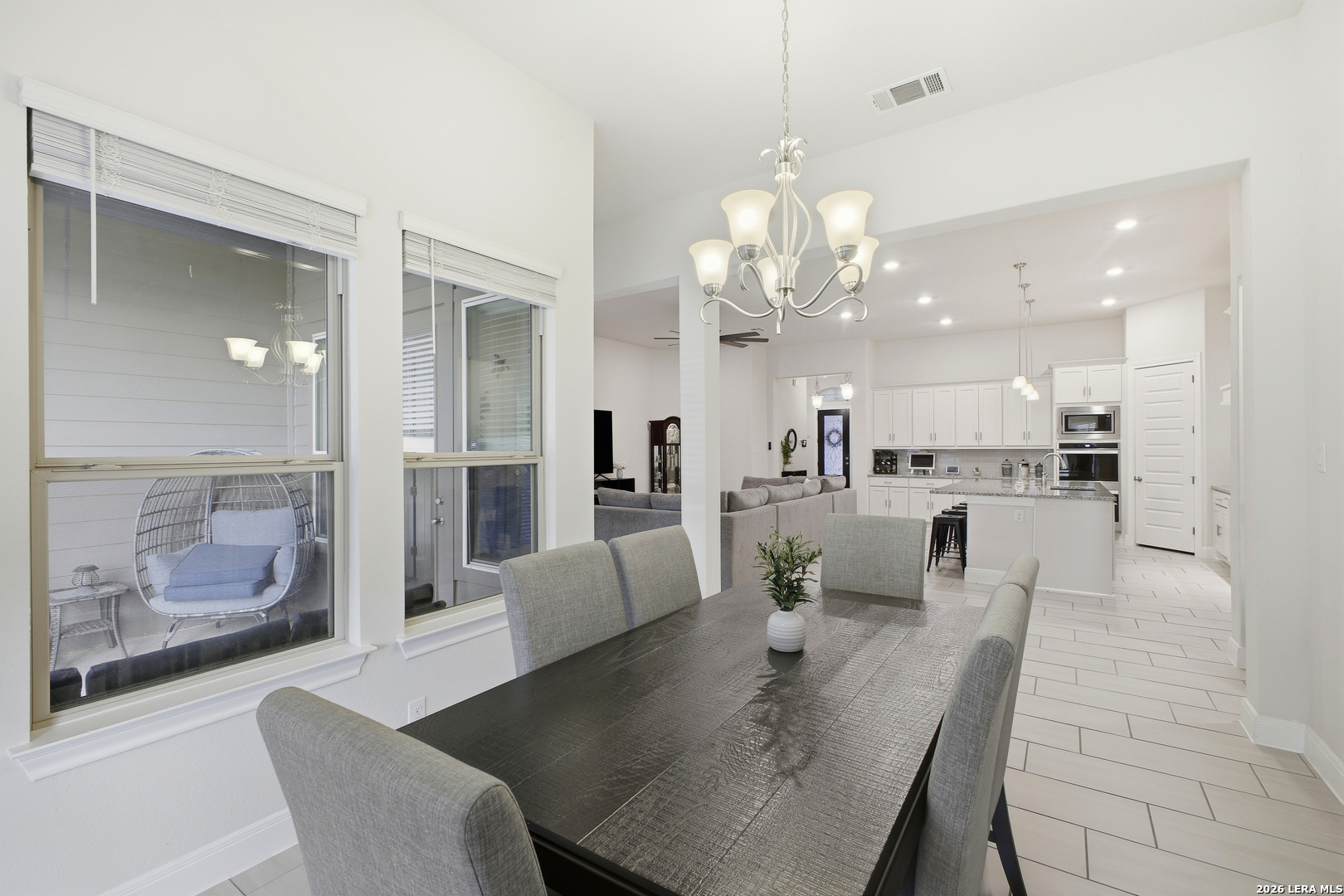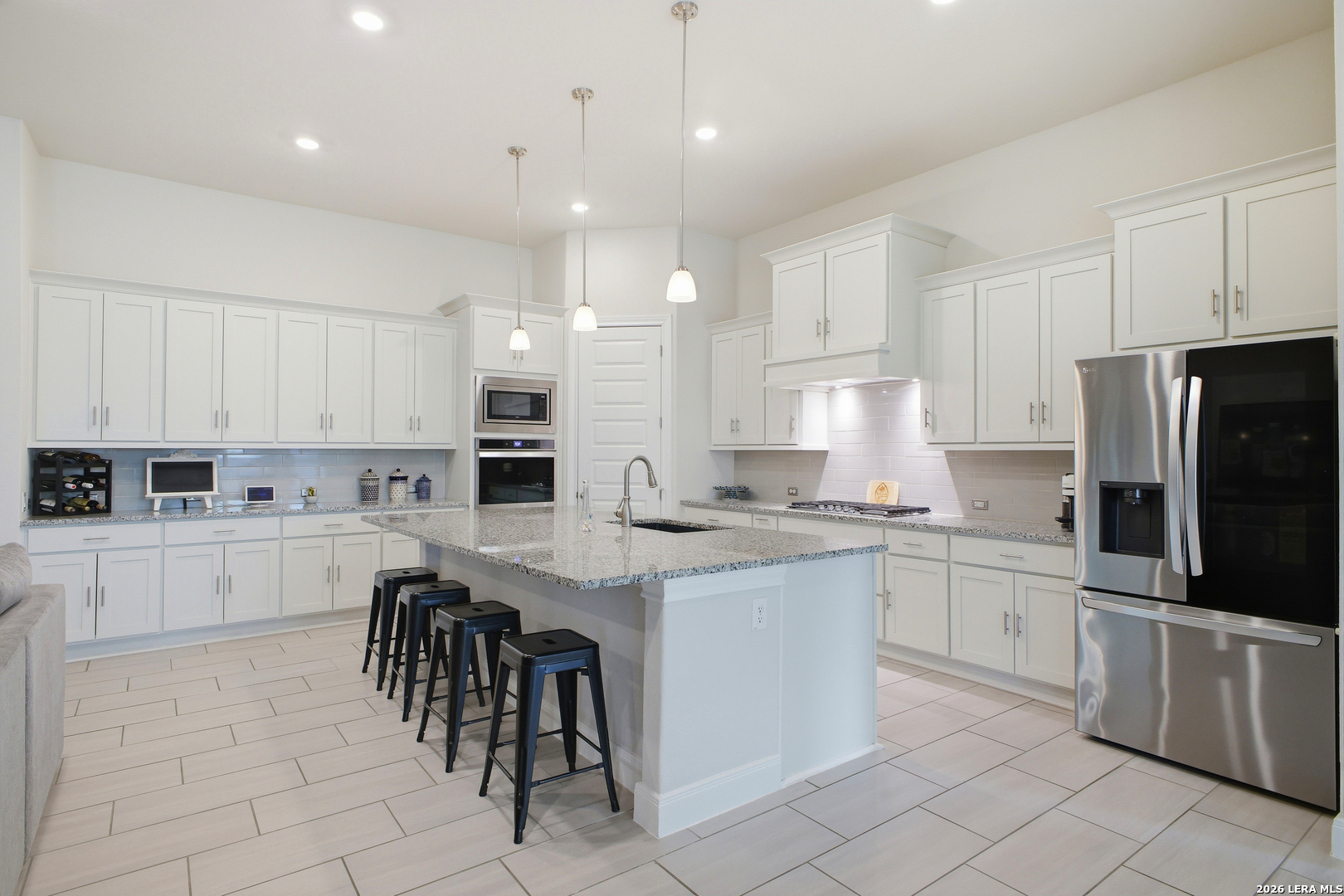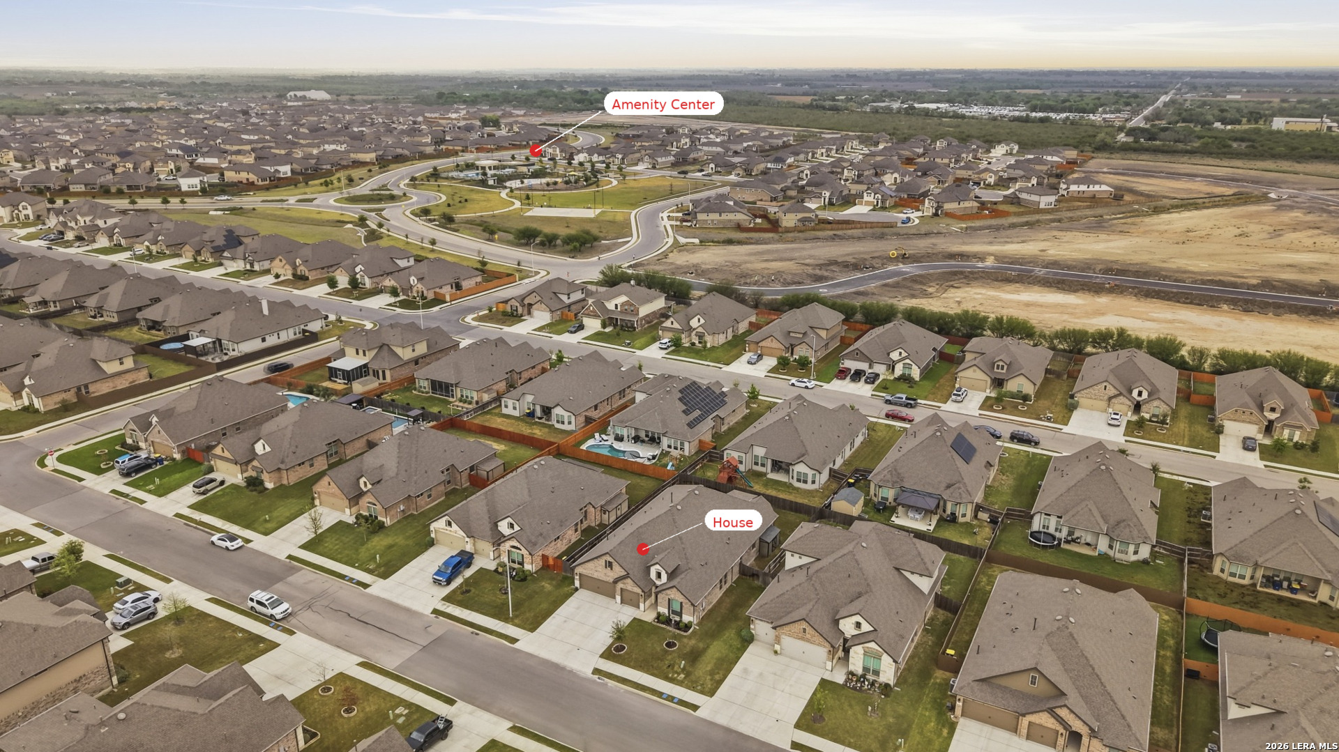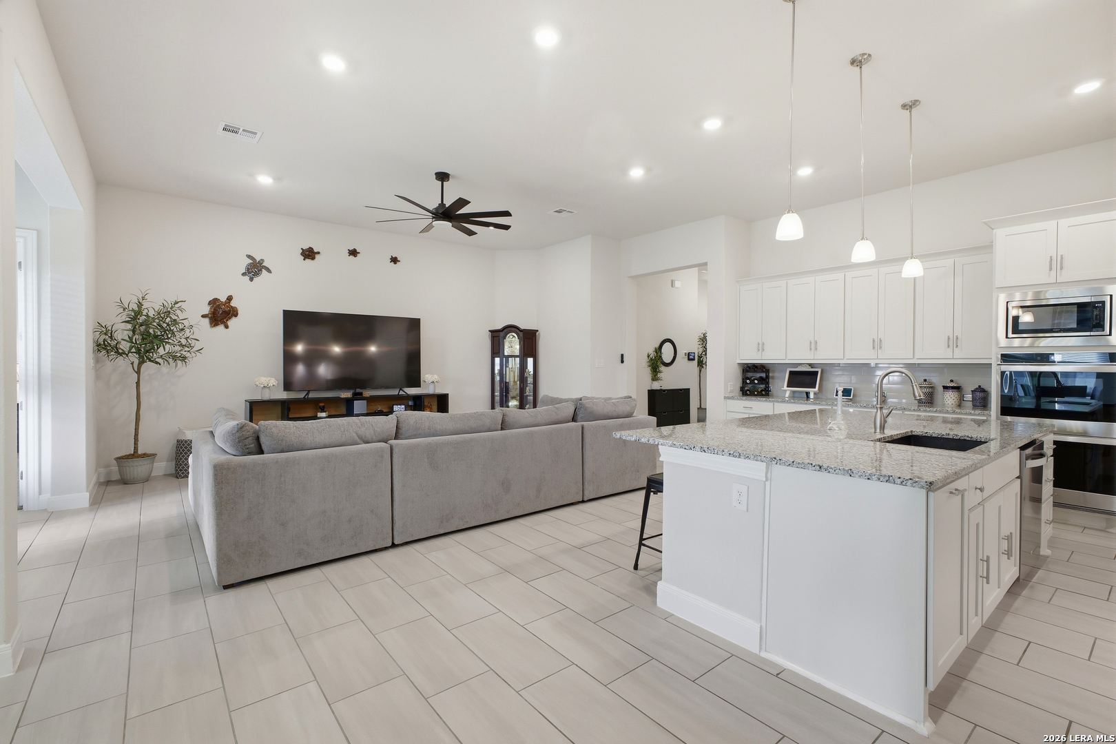 Welcome to this stunning single-story Emerald Homes build in the highly sought-after Steele Creek community, where thoughtful design meets everyday luxury. From the moment you step inside, you're greeted by high ceilings, abundant natural light, and beautiful tile flooring throughout the main living areas-offering both durability and easy maintenance. Just off the entry, a private office with elegant French double glass doors creates the perfect work-from-home space or quiet retreat. The open-concept layout seamlessly connects the living, dining, and kitchen areas-ideal for both entertaining and daily living. The chef's kitchen is the heart of the home, featuring a large granite island with seating, double ovens, gas cooking, 42-inch white cabinetry, ample storage, and convenient pull-out racks. A designated dining space adds both function and style. The spacious primary suite is privately situated at the back of the home and features a beautiful bay window, double tray ceiling, and direct access to the patio. The ensuite bathroom offers dual granite vanities, a soaking tub, a large tiled walk-in shower, and an oversized walk-in closet. On the opposite side of the home, you'll find two secondary bedrooms connected by a Jack & Jill bathroom with separate granite vanities-providing both privacy and convenience. Step outside to enjoy a covered patio plus an extended patio with additional shade-perfect for relaxing or entertaining year-round. The home also features premium Gemstone lighting by Astoria Lighting, allowing you to customize exterior colors for holidays, game days, or everyday ambiance. Additional highlights include a finished 3 car garage with epoxy flooring, full sprinkler system, and gutters, along with a 10-year builder transferable foundation warranty for added peace of mind. Residents of Steele Creek enjoy resort-style amenities including a pool, gym, playground, basketball court, and splash pad. Located in the top-rated SCUCISD and zoned for Byron P. Steele High School, this home offers convenient access to FM 1103, shopping, dining, and is just 15 minutes from JBSA Randolph and approximately 30 minutes to Fort Sam Houston. This home truly checks all the boxes, schedule your private showing today!