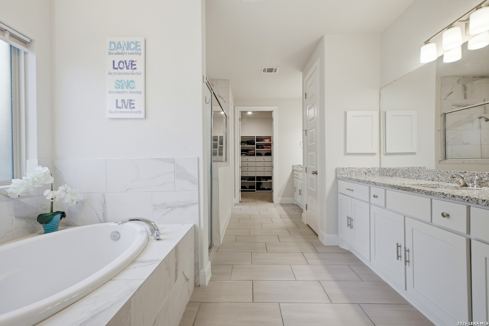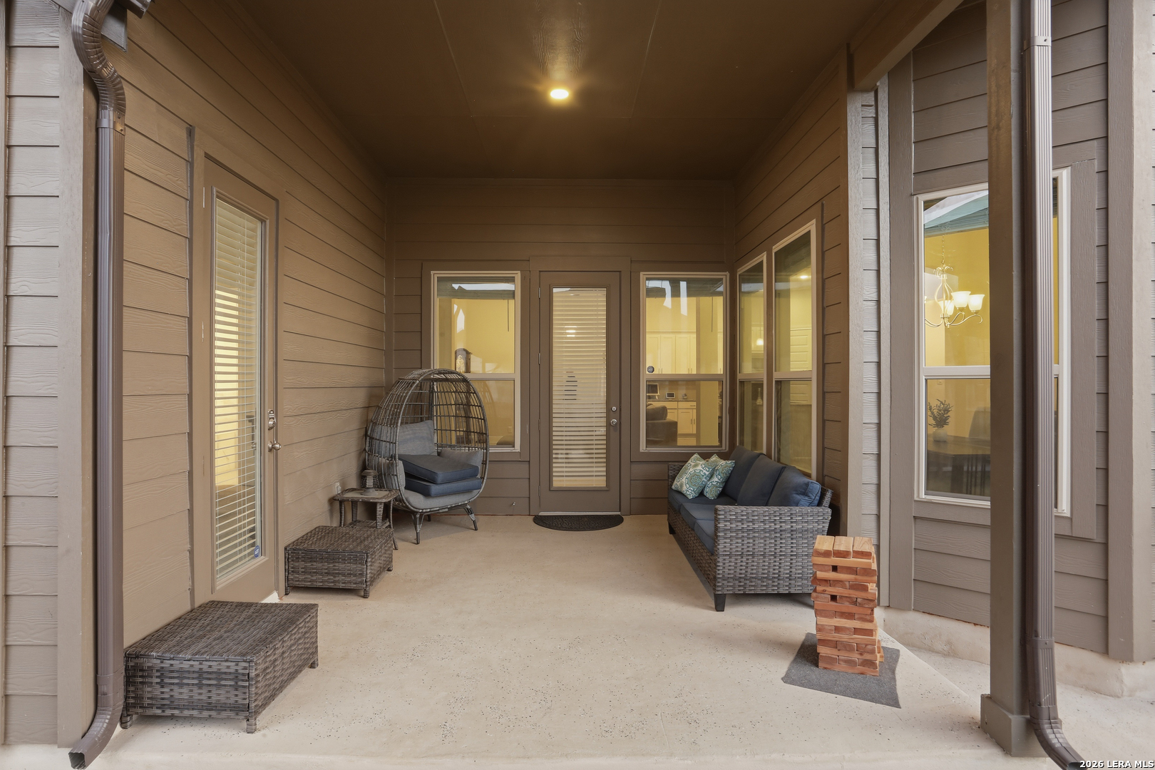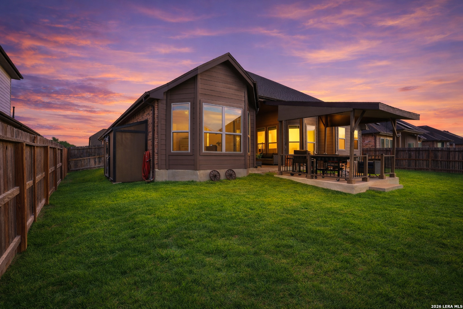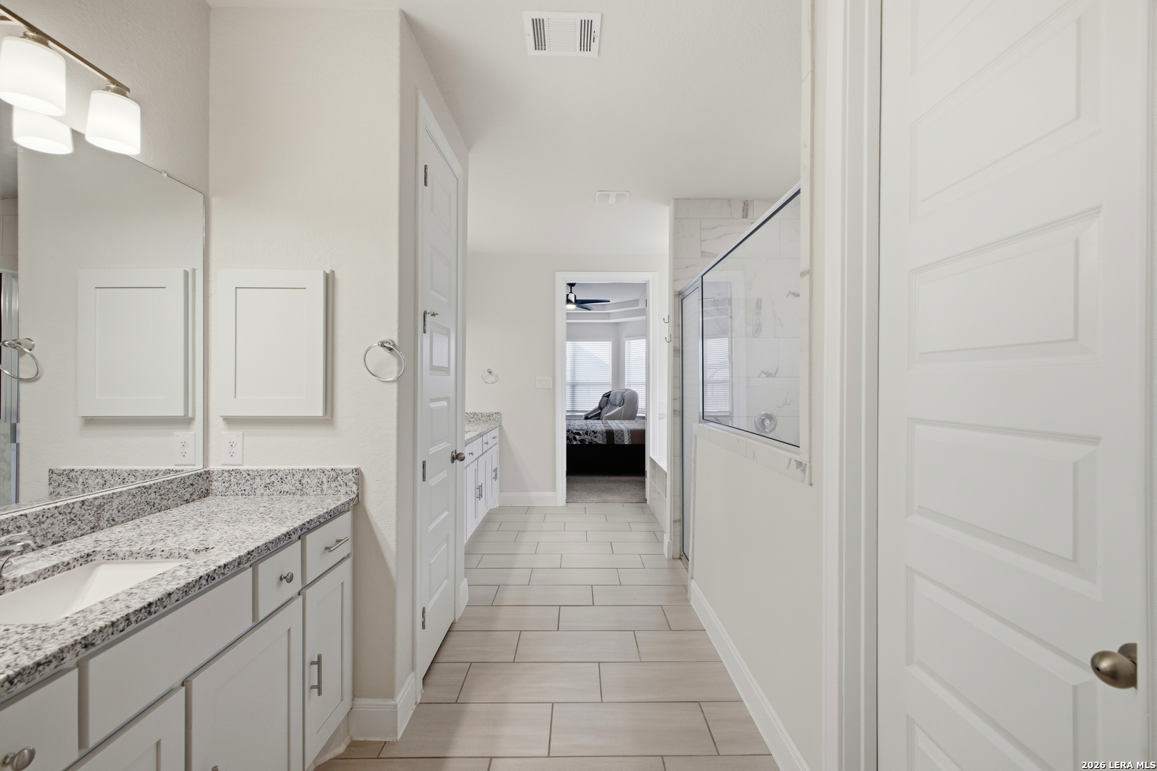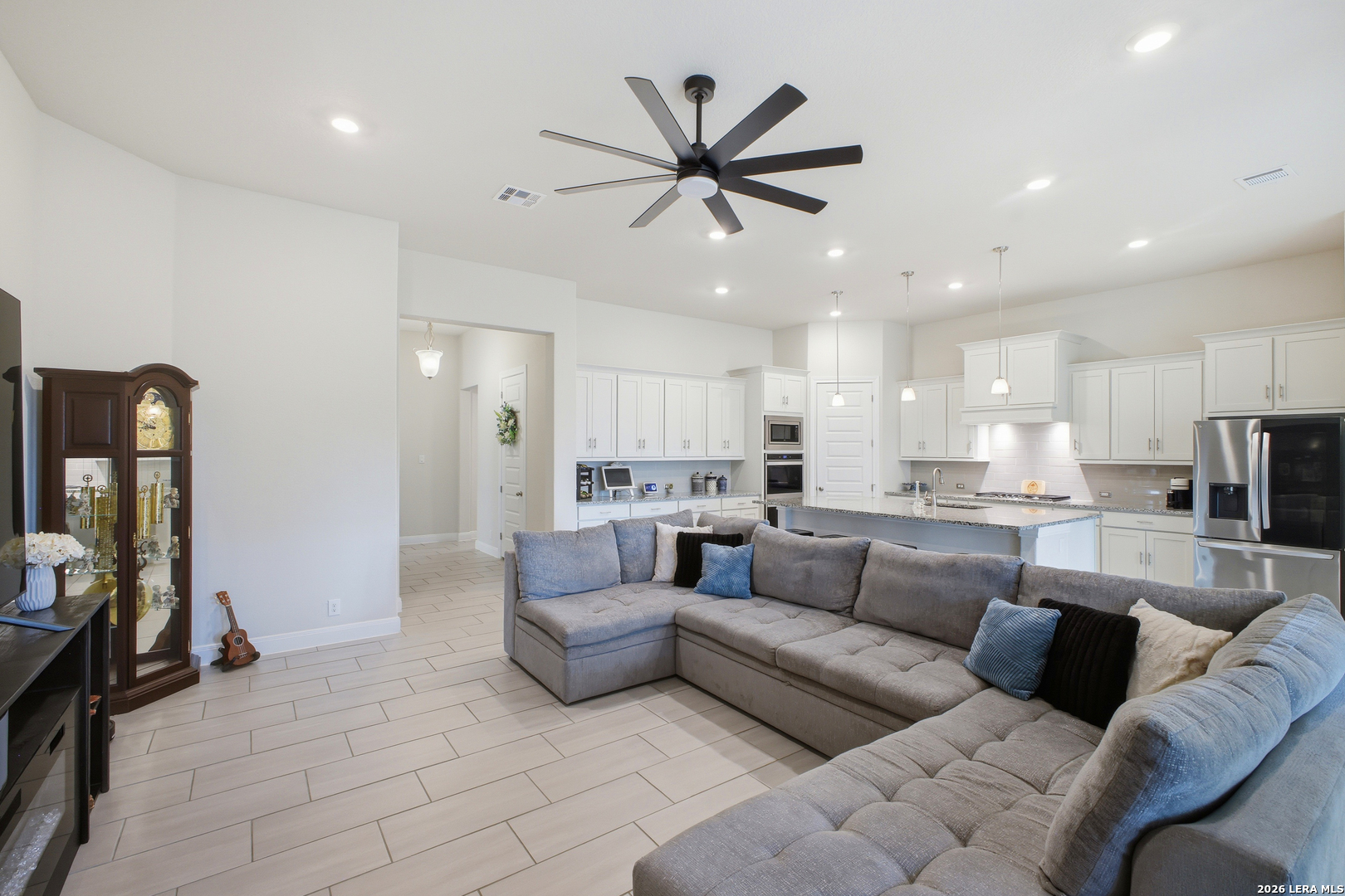 Welcome to this stunning single-story Emerald Homes build in the highly sought-after Steele Creek community, where thoughtful design meets everyday luxury. From the moment you step inside, you're greeted by high ceilings, abundant natural light, and beautiful tile flooring throughout the main living areas-offering both durability and easy maintenance. Just off the entry, a private office with elegant French double glass doors creates the perfect work-from-home space or quiet retreat. The open-concept layout seamlessly connects the living, dining, and kitchen areas-ideal for both entertaining and daily living. The chef's kitchen is the heart of the home, featuring a large granite island with seating, double ovens, gas cooking, 42-inch white cabinetry, ample storage, and convenient pull-out racks. A designated dining space adds both function and style. The spacious primary suite is privately situated at the back of the home and features a beautiful bay window, double tray ceiling, and direct access to the patio. The ensuite bathroom offers dual granite vanities, a soaking tub, a large tiled walk-in shower, and an oversized walk-in closet. On the opposite side of the home, you'll find two secondary bedrooms connected by a Jack & Jill bathroom with separate granite vanities-providing both privacy and convenience. Step outside to enjoy a covered patio plus an extended patio with additional shade-perfect for relaxing or entertaining year-round. The home also features premium Gemstone lighting by Astoria Lighting, allowing you to customize exterior colors for holidays, game days, or everyday ambiance. Additional highlights include a finished 3 car garage with epoxy flooring, full sprinkler system, and gutters, along with a 10-year builder transferable foundation warranty for added peace of mind. Residents of Steele Creek enjoy resort-style amenities including a pool, gym, playground, basketball court, and splash pad. Located in the top-rated SCUCISD and zoned for Byron P. Steele High School, this home offers convenient access to FM 1103, shopping, dining, and is just 15 minutes from JBSA Randolph and approximately 30 minutes to Fort Sam Houston. This home truly checks all the boxes, schedule your private showing today!