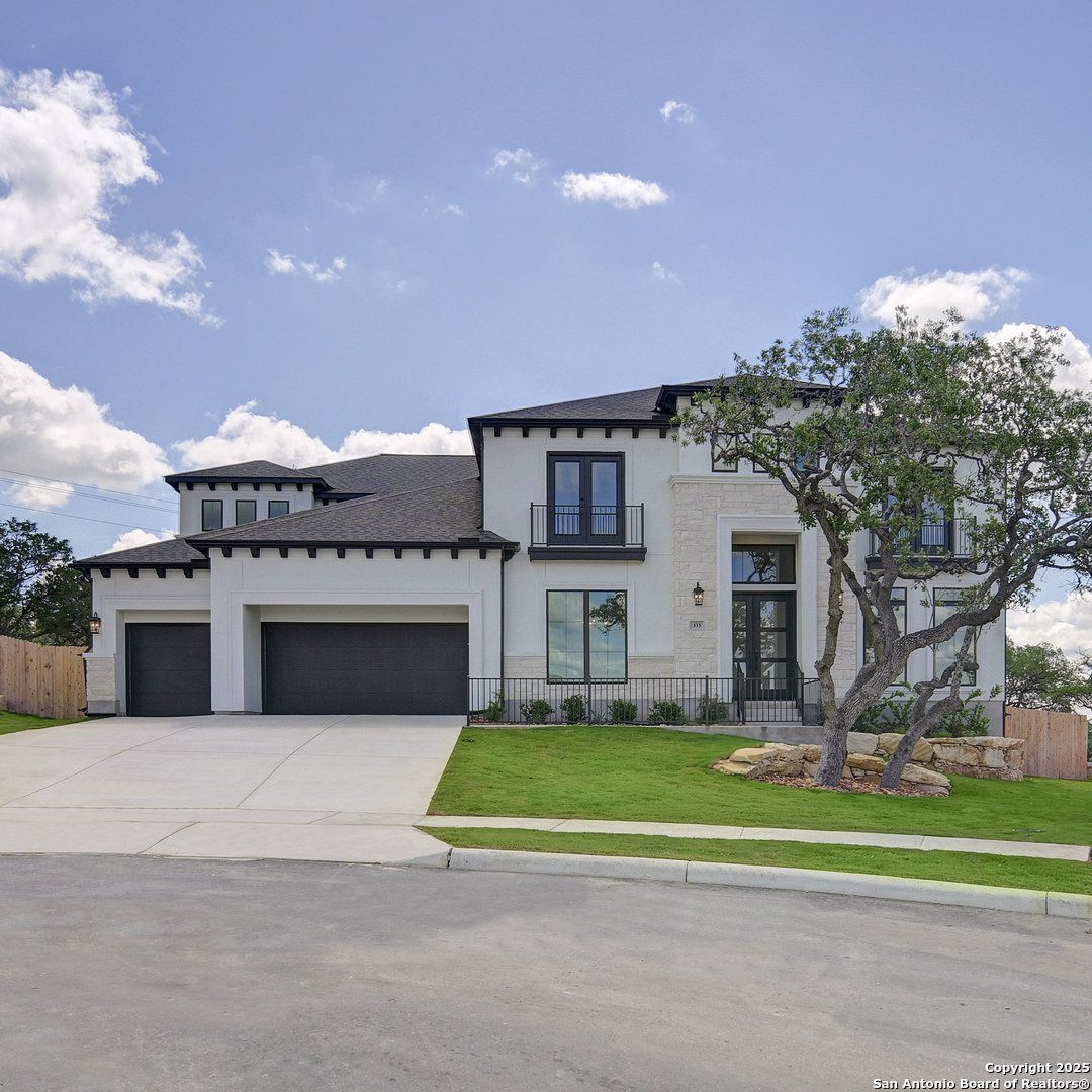 READY FOR MOVE-IN! Step off the front porch into a grand entryway boasting a 20-foot ceiling and curved staircase. French doors open into the home office. Dining room is adjacent from the office. Past the stairs you enter the open family room with a wall of windows and extended ceilings. The morning area connects the living area and the kitchen. An island with built-in seating, corner walk-in pantry and butler's pantry provide additional storage. The primary bedroom hosts a wall of windows. French doors open into the primary bathroom which features dual vanities, a garden tub, a separate glass enclosed shower, and two walk-in closets. A private guest suite is off of the morning area and features a walk-in closet and private bathroom. Upstairs you are greeted by a game room which overlooks the main floor and a media room with three large windows. Secondary bedrooms which boast walk-in closets and a Hollywood bathroom as well as an additional guest suite complete the second floor. Covered backyard patio. The mud room, utility room, and additional storage area off of the porte-cochere four-car garage.