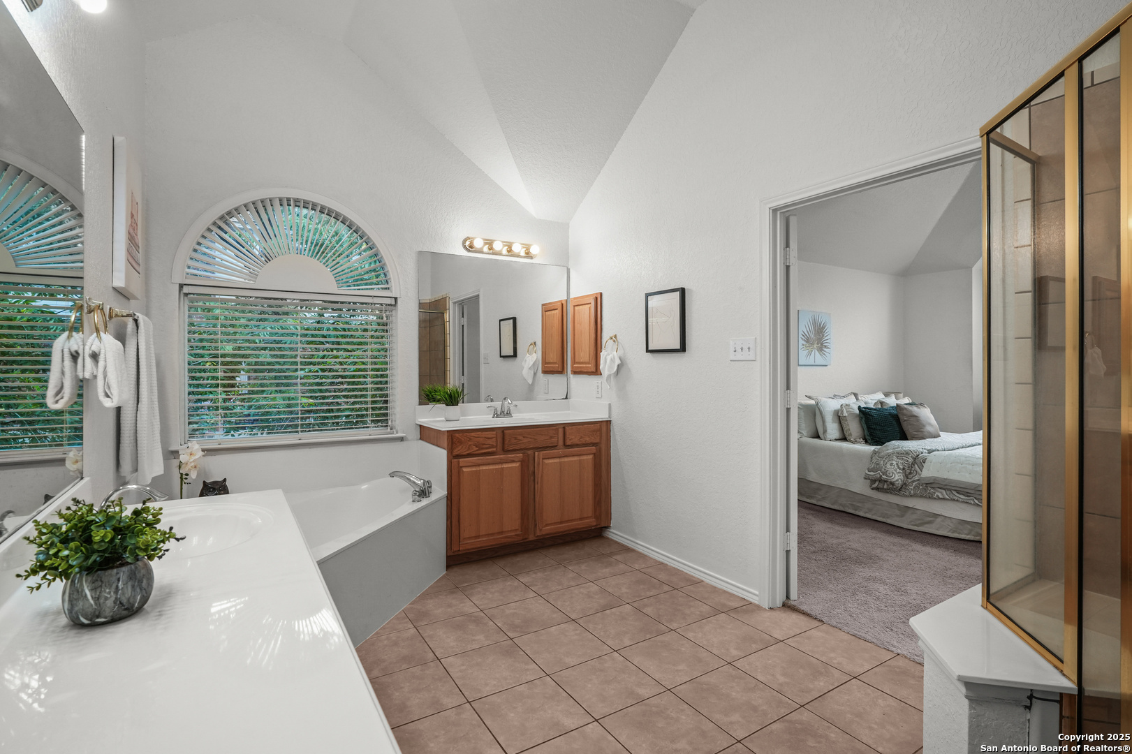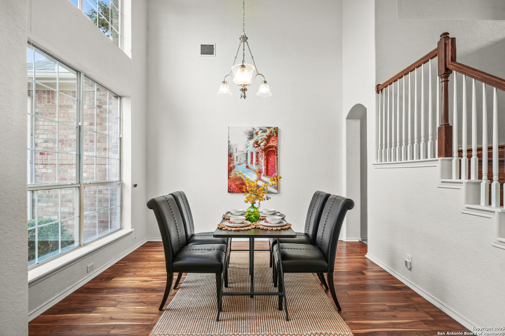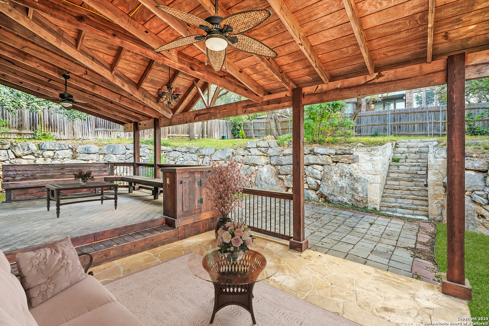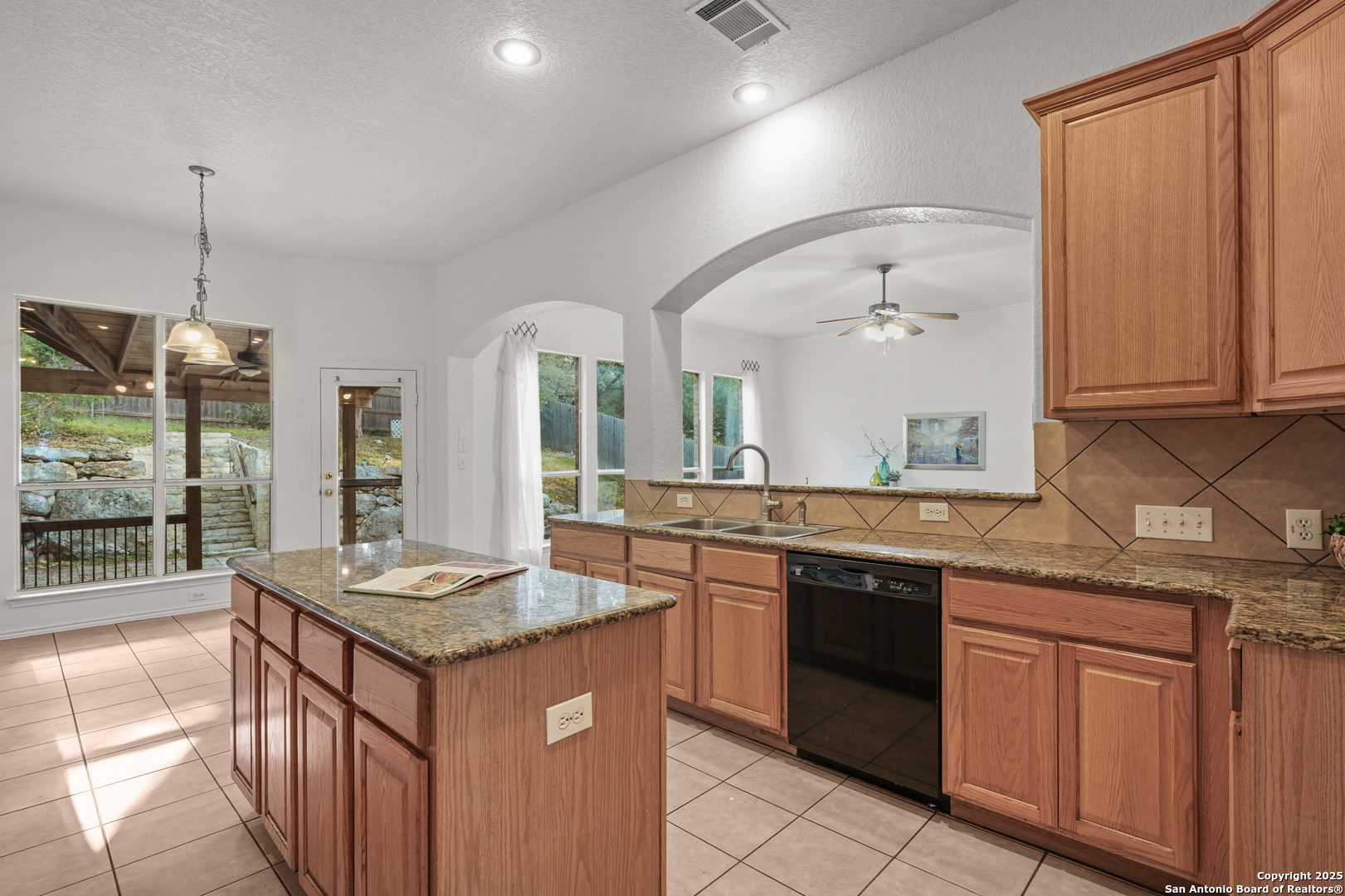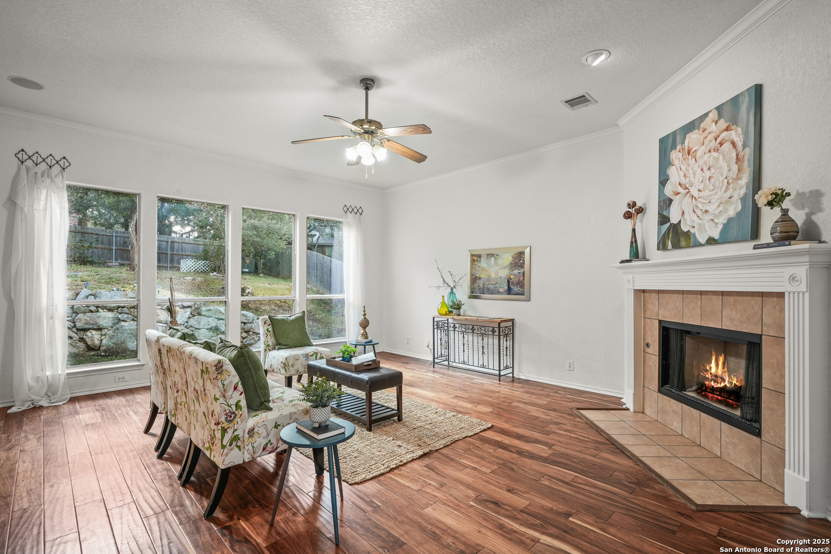 Located in the Terraces, one of Encino Park's most sought-after neighborhoods, this beautifully maintained Highland Home blends quality craftsmanship with timeless design. A single-owner home featuring soaring ceilings, freshly painted neutral interiors, wood floors, and a wall of windows that fill the space with natural light. The glass in 42 windows was recently replaced, enhancing both efficiency and beauty. The open kitchen offers gas cooking and granite counters, flowing seamlessly into two versatile living areas and a dining room framed by dramatic ceilings. A convenient downstairs bedroom with a full bath provides flexibility for guests or multi-generational living, while upstairs you'll find a spacious primary suite, two additional bedrooms, and a game room. The backyard stands out with its character and privacy, offering a custom covered deck ideal for relaxing or entertaining. Located in a gated community with award-winning NEISD schools and just a short walk to Encino Park Elementary and Tejeda Middle, this home also enjoys easy access to Johnson High, 281, 1604, Bulverde Road, JW Marriott, TPC golf courses, Stone Oak shopping and dining, and community amenities including a pool, park, and basketball court. WELCOME HOME!