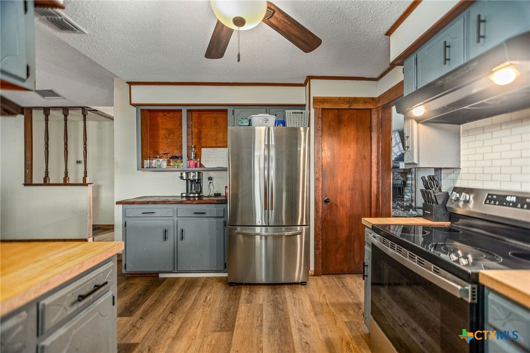 Welcome home to this charming 3-bedroom, 2-bath residence with a 2-car garage, situated on a spacious half-acre lot just directly across from the Chocolate Bayou Boat Ramp. Enjoy convenient water access along with green lights for nighttime fishing enthusiasts. Inside, the home features a sunken living room with a cozy wood-burning fireplace, creating a warm and inviting gathering space. The large kitchen opens to the dining area and includes a separate breakfast nook, offering flexibility for everyday living and entertaining. Generously sized bedrooms provide comfort and functionality. Step outside to your private backyard retreat, complete with a covered patio and outdoor kitchen—perfect for relaxing or hosting gatherings. Located just minutes from Chocolate Bayou Park, which features a newly improved playground and outdoor amenities.
