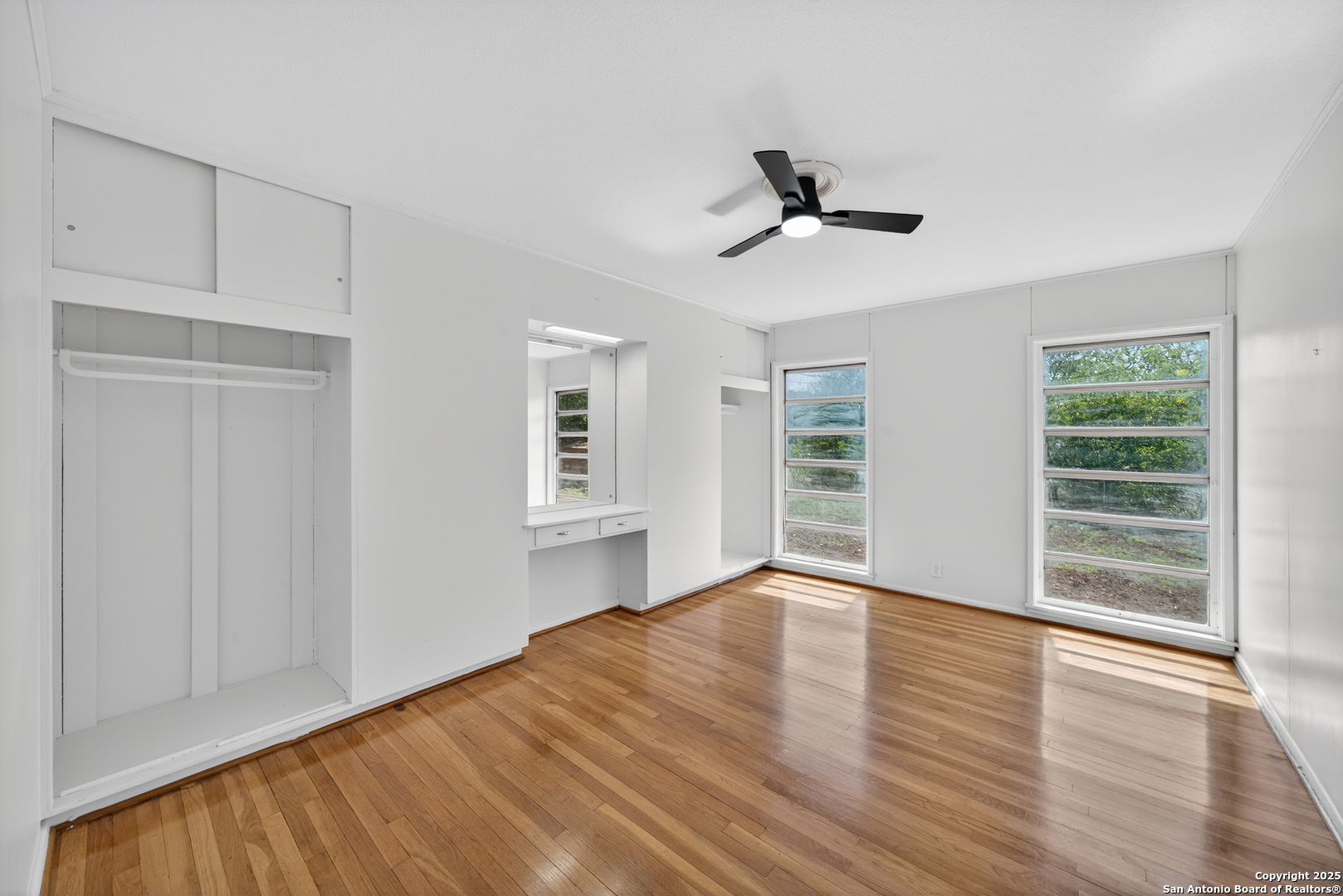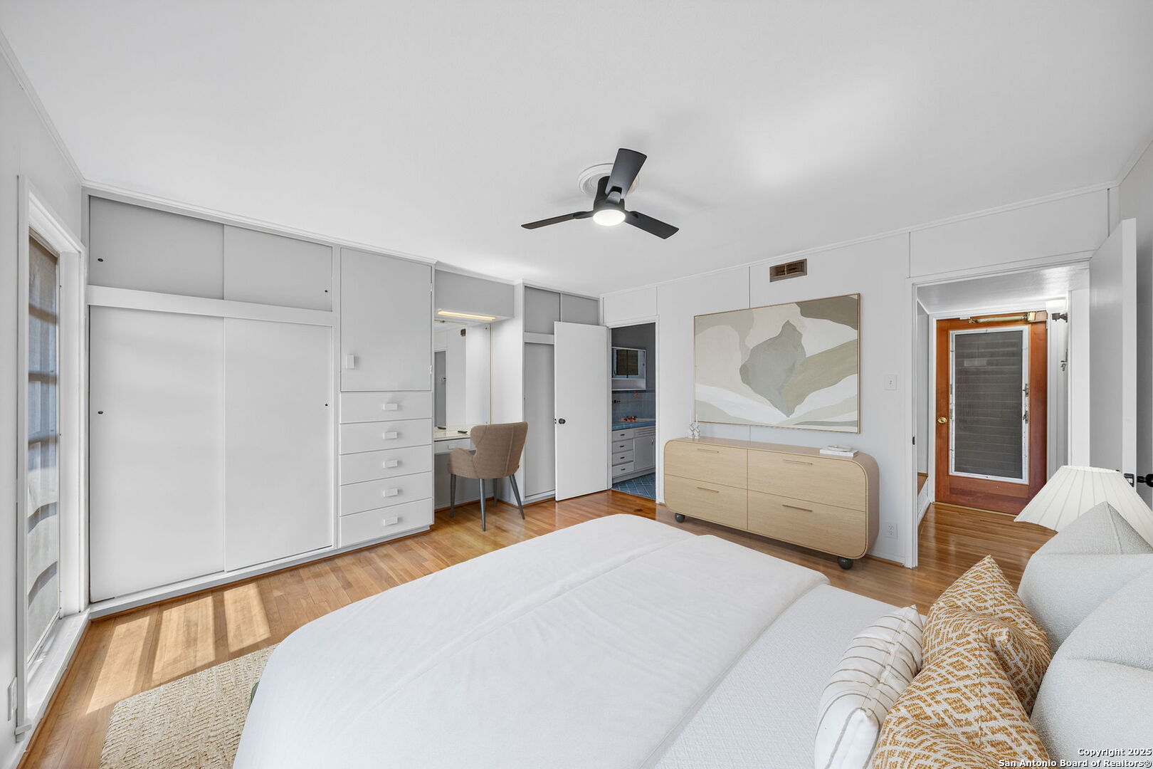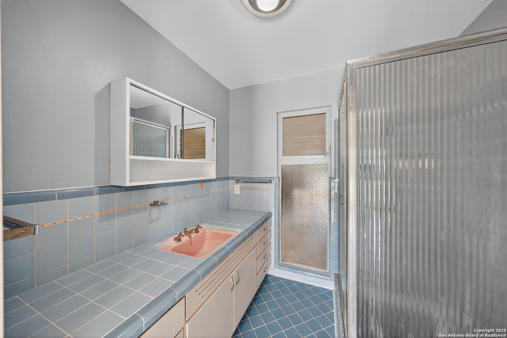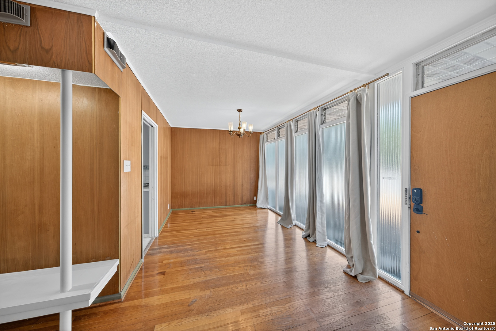 A true mid-century ranch filled with the character and nostalgia of the 1950's. The warm brick interior makes the space feel inviting and grounded, while a 20-foot stretch of floor-to-ceiling windows fills the living area with natural light and creates a beautiful connection between the indoors and the covered patio. Transfer the patio into another living area with outdoor dining, comfortable seating, and a projector for fall movie nights to spend evenings with family and friends. Inside, the original wood paneling adds texture and charm, giving the home a timeless midcentury warmth. The front room, where a 13-foot line of windows stretches across the wall filling it with natural light. Great location in the heart of San Antonio, just minutes from La Cantera, North Star, and Downtown. Wonderful neighbors that exemplify community. This house has warmth, history, and personality that make you feel at home the moment you walk in.