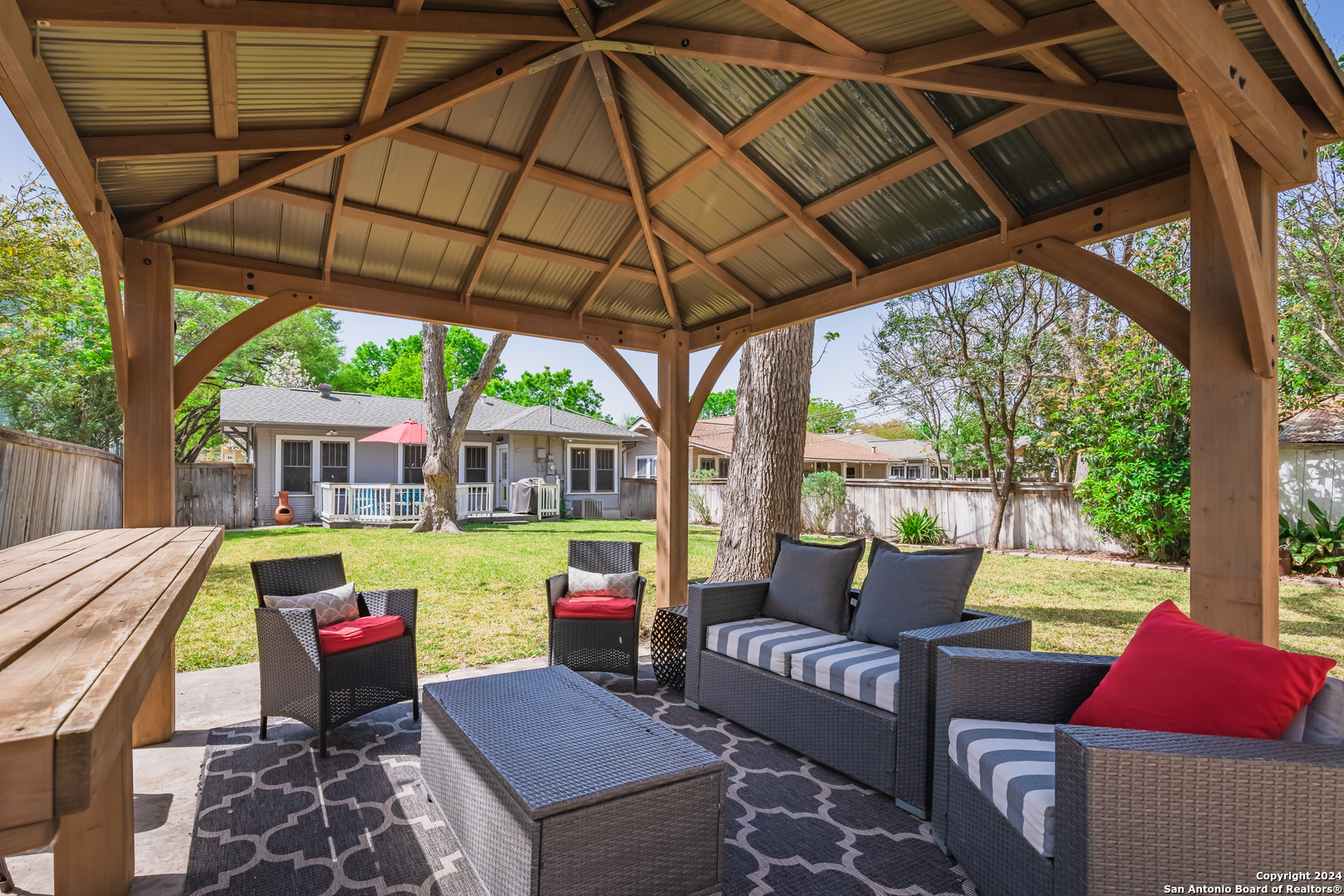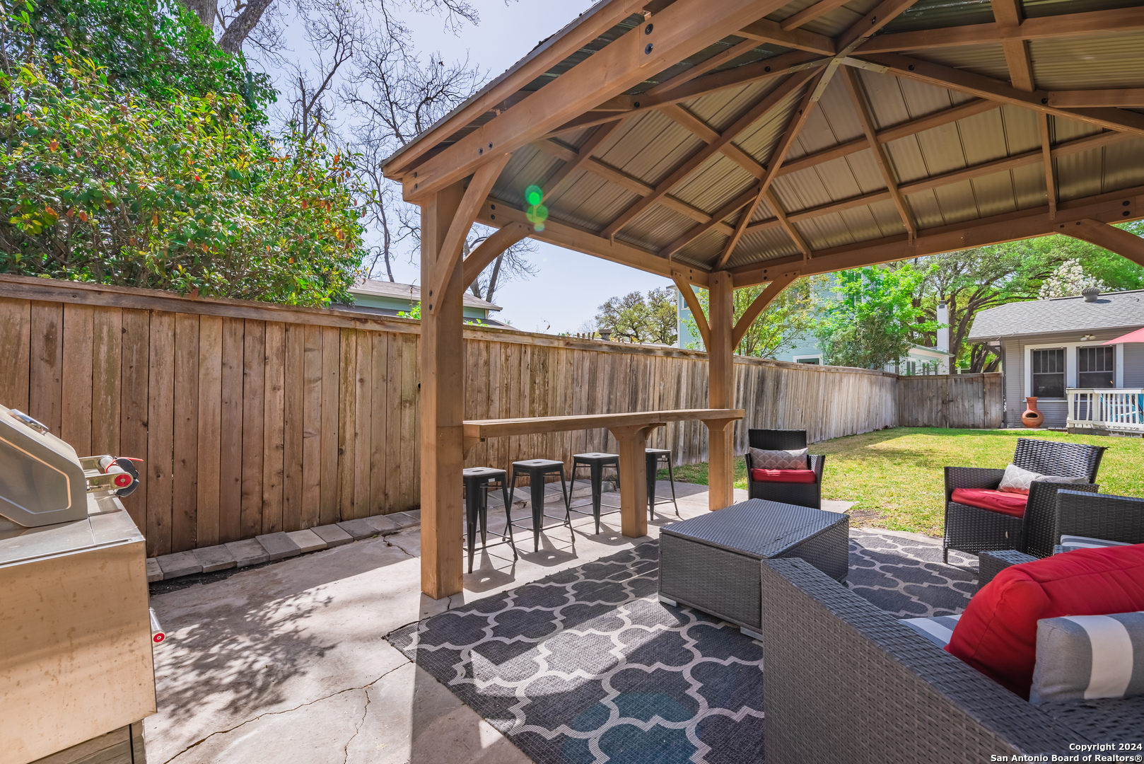 Pristine 1920's craftsman bungalow fully furnished in an amazing central location. Situated on one of the prettiest streets in Mahncke Park, this 2 bedroom, 1 bath, plus a study comes fully furnished with all the amenities. Modern kitchen with granite counters and eating area. Separate dining room. Beautiful back yard with outdoor kitchen. Washer/dryer.