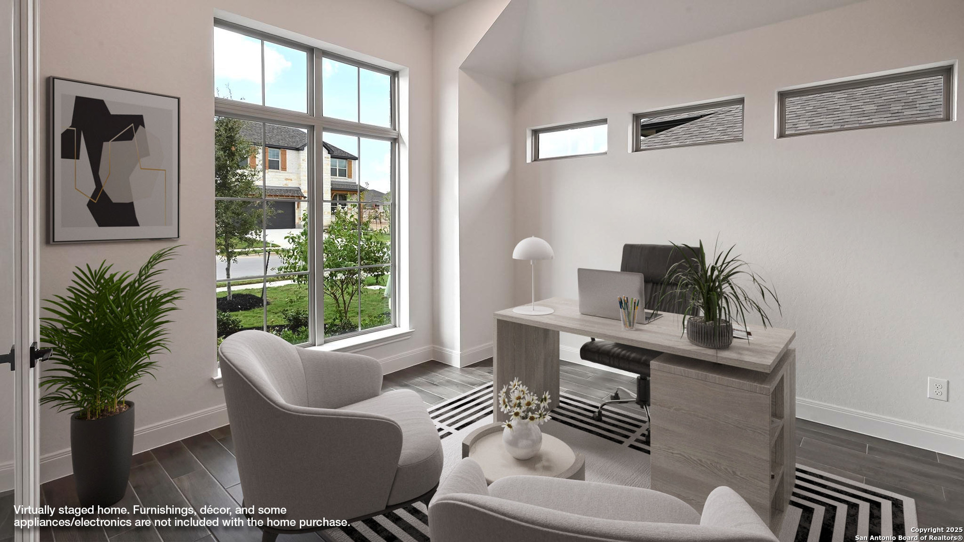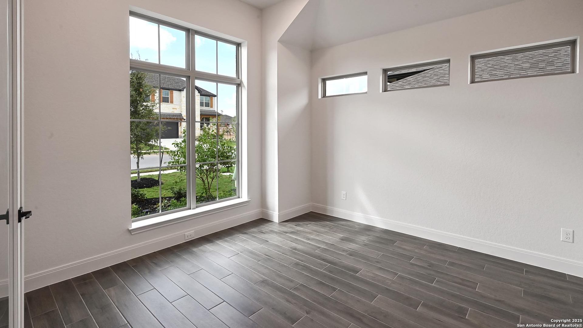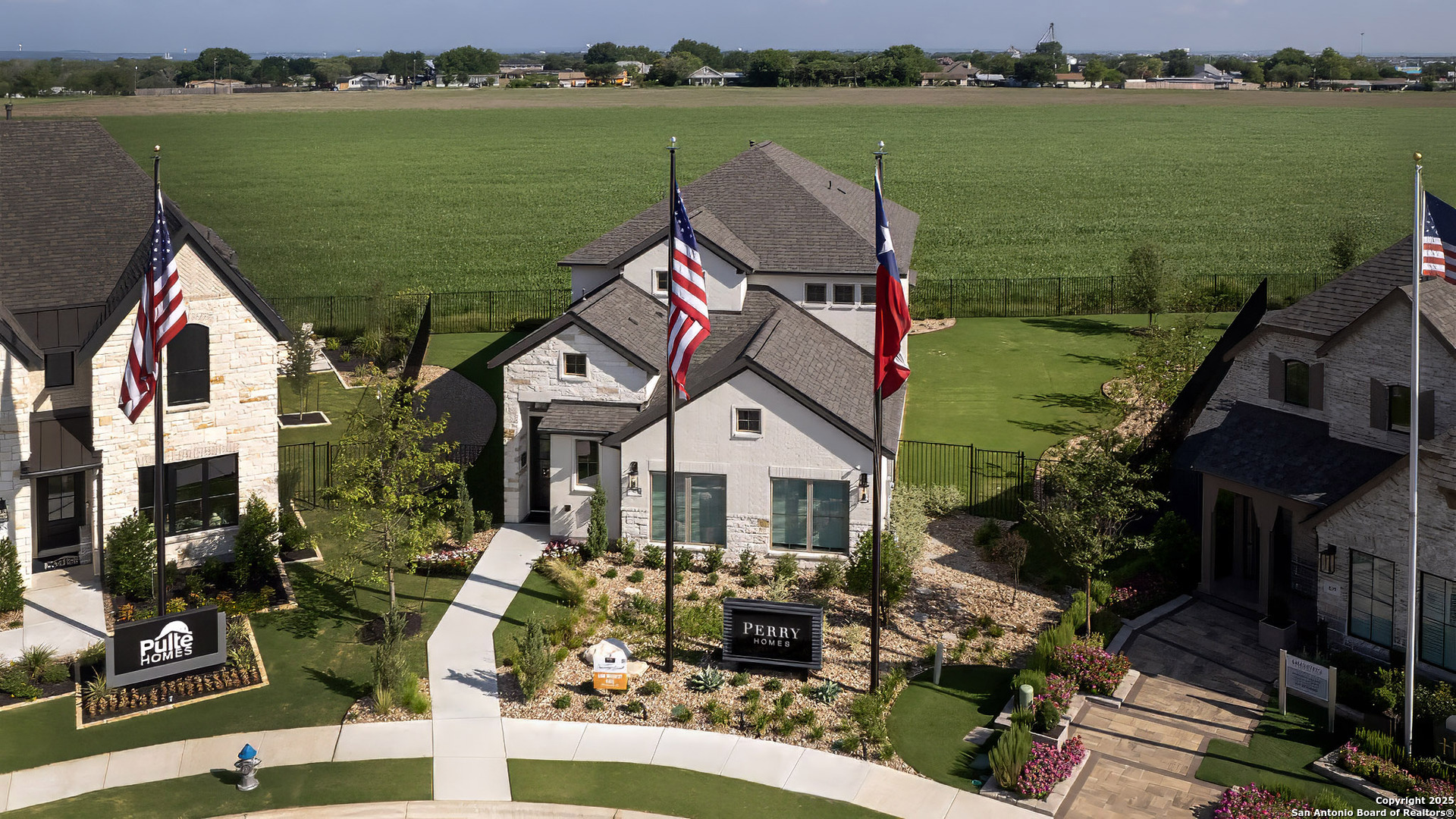 Home office with French doors set at entry with 12-foot ceiling. Open island kitchen offers generous counter space, 5-burner gas cooktop and corner walk-in pantry. Dining area flows into open family room with wall of windows. Spacious primary suite. Double doors lead to primary bath with dual vanities, large glass-enclosed shower and large walk-in closet. Abundant closet space and natural light throughout. Covered backyard patio. Mud room leads to two-car garage.