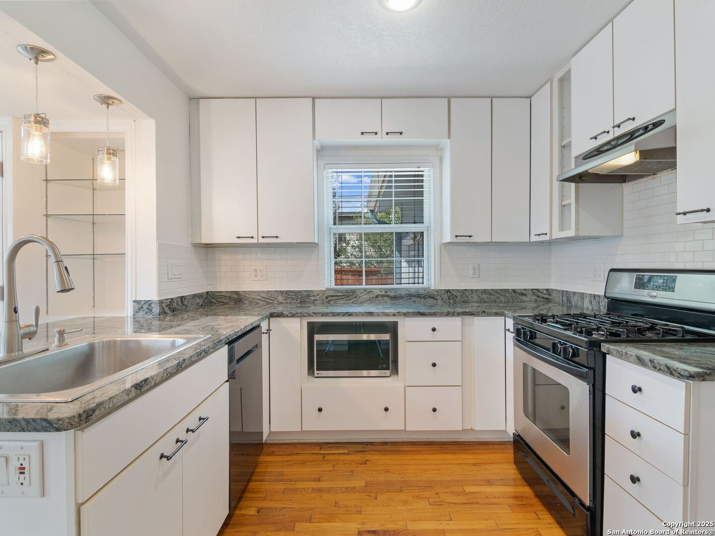 Nestled in the heart of Terrell Heights, this charming home offers a comfortable layout and classic character throughout. The kitchen features granite countertops, stainless steel appliances, and a gas range, opening nicely to the living and dining areas for easy everyday living. The primary suite includes a walk-in closet and a private bath, while each additional bedroom also features its own walk-in closet-an uncommon plus for the neighborhood. Refinished hardwood floors, recessed lighting, and double-pane windows add to the home's enduring appeal. A spacious deck overlooks the landscaped backyard, complete with a sprinkler system and extra storage building. Conveniently located near top-rated schools, local shops, and restaurants, this home captures the charm and convenience of Terrell Heights living.