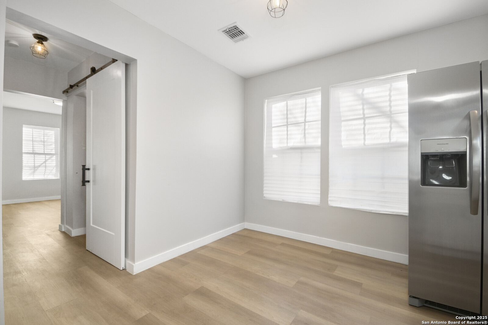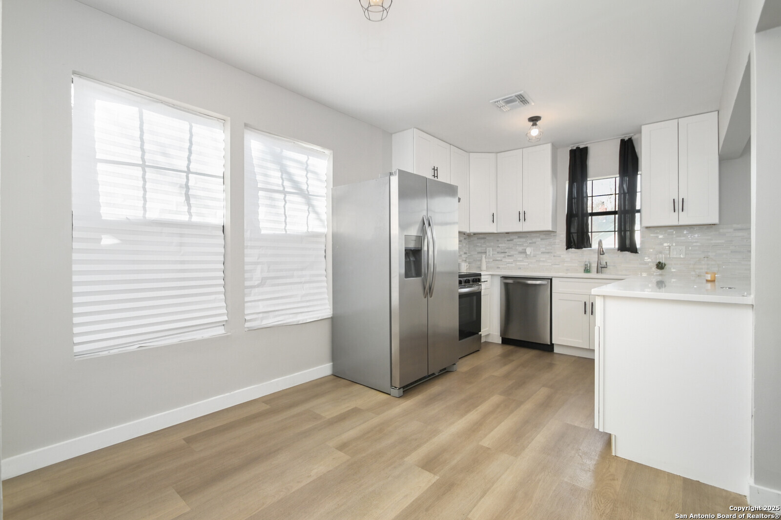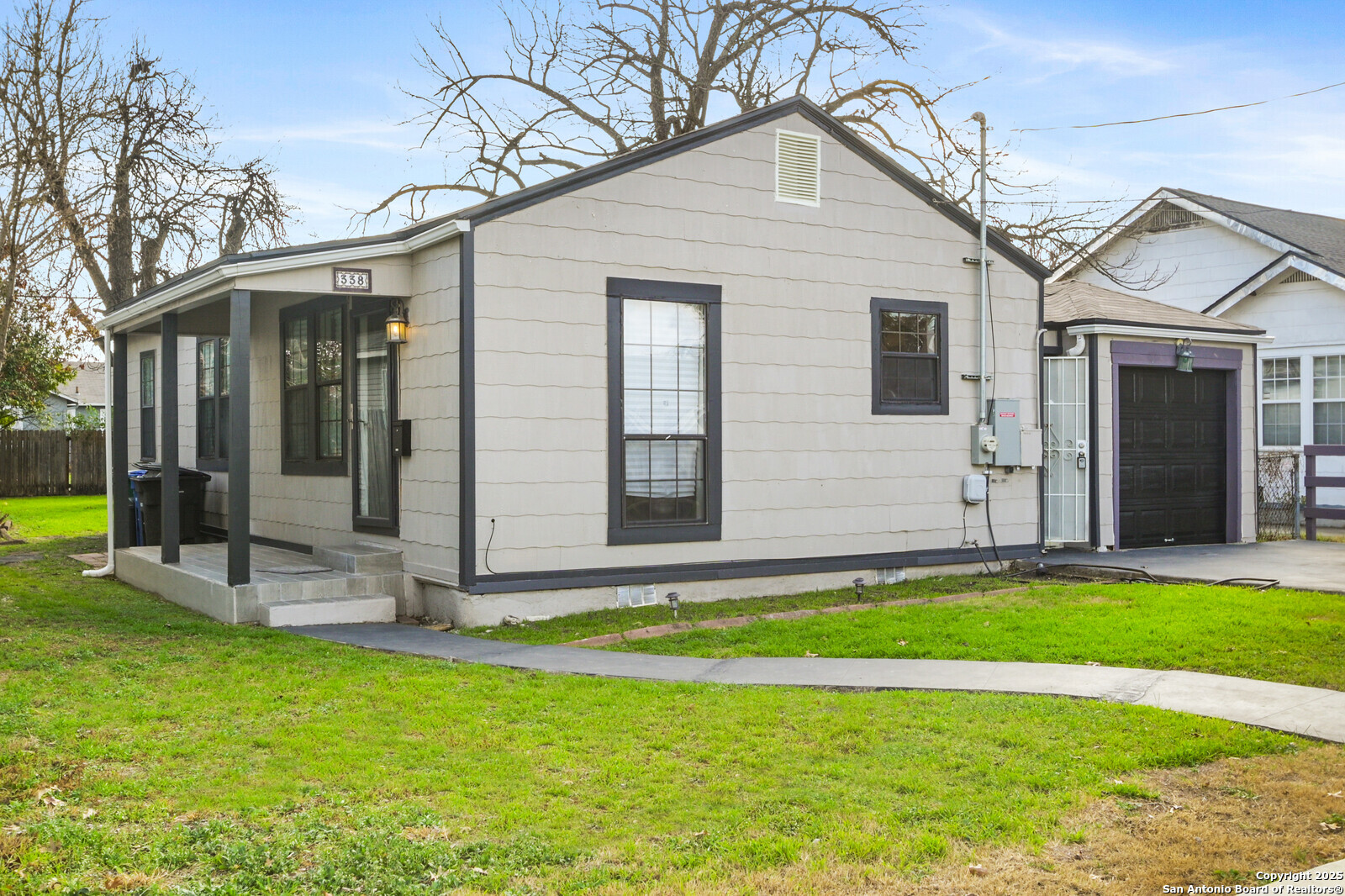 *This home is in an eligible area for Chase community lending. Which has incentivized lower interest rates* Welcome to 338 Hearne Ave, a beautifully renovated home in the charming Palm Heights neighborhood! This 2-bedroom, 1-bathroom home features a versatile third room-perfect as an additional bedroom, office, or second living area. Step inside to find new luxury water proof flooring throughout (no carpet!), fresh interior and exterior paint, and a completely updated kitchen with quartz countertops, soft-close cabinets, and brand-new stainless steel appliances-including a refrigerator! The stylishly upgraded bathroom adds to the modern appeal, while a new central AC system and tankless water heater ensure year-round comfort and efficiency. Enjoy the convenience of indoor washer and dryer hookups. Outside, the large, leveled backyard includes privacy fence, offering plenty of space for entertaining or relaxation. A detached garage provides parking and additional storage, with even more storage space behind it. Located just minutes from Southtown, King William, and the Lone Star District, this home offers easy access to downtown San Antonio's vibrant dining, art, and entertainment scene while still providing a quiet and comfortable retreat. Don't miss this move-in-ready home with top-to-bottom upgrades in an unbeatable location! Schedule your showing today!