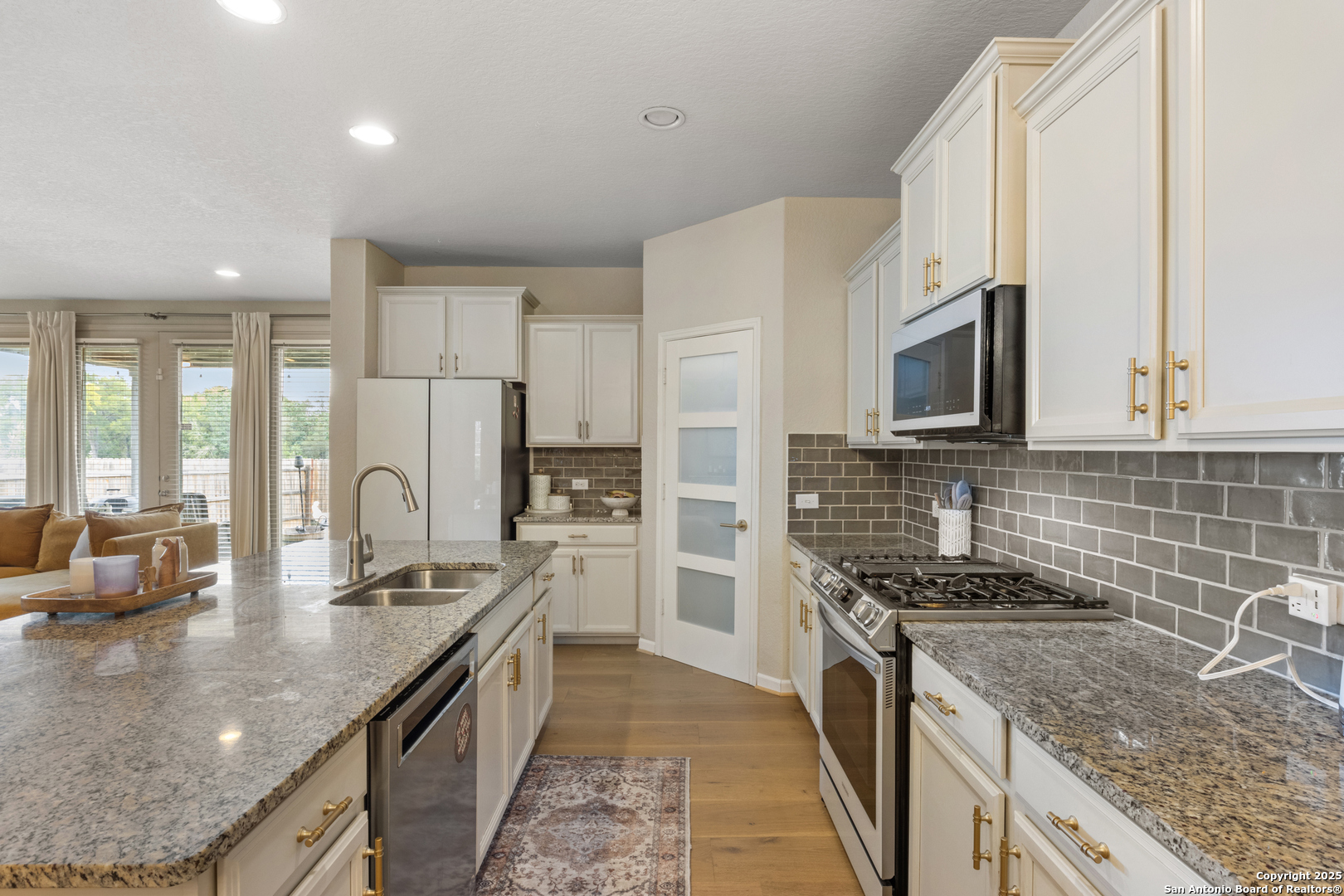 ASSUMABLE LOAN Available (Buyer must qualify). Welcome to your dream home-where luxury meets comfort in perfect harmony. This stunning 4-bedroom, 3.5-bath residence is thoughtfully designed with elegant finishes, an open-concept layout, and a touch of refined sophistication throughout. Nestled on a premium greenbelt lot, you'll enjoy peaceful, private views with no backyard neighbors-your own slice of serenity just moments from the city's conveniences. From the moment you step inside, you'll be captivated by the attention to detail: rich textures, upgraded flooring, designer lighting, and a warm, modern aesthetic that flows effortlessly from room to room. The heart of the home is the chef-inspired kitchen, which opens seamlessly into the spacious living and dining areas-ideal for hosting gatherings or enjoying cozy evenings in. The expansive primary suite serves as your personal sanctuary, featuring a spa-like ensuite bath and generous walk-in closet. Secondary bedrooms offer versatility for guest accommodations, children's rooms, or a dedicated home office. Located just minutes from HWY 35 and the vibrant, historic charm of Gruene, this home places you in one of the area's most sought-after locations with convenient access to shopping, dining, entertainment, and outdoor recreation. Luxury. Privacy. Convenience. This home has it all - Don't miss your chance to make it yours.
