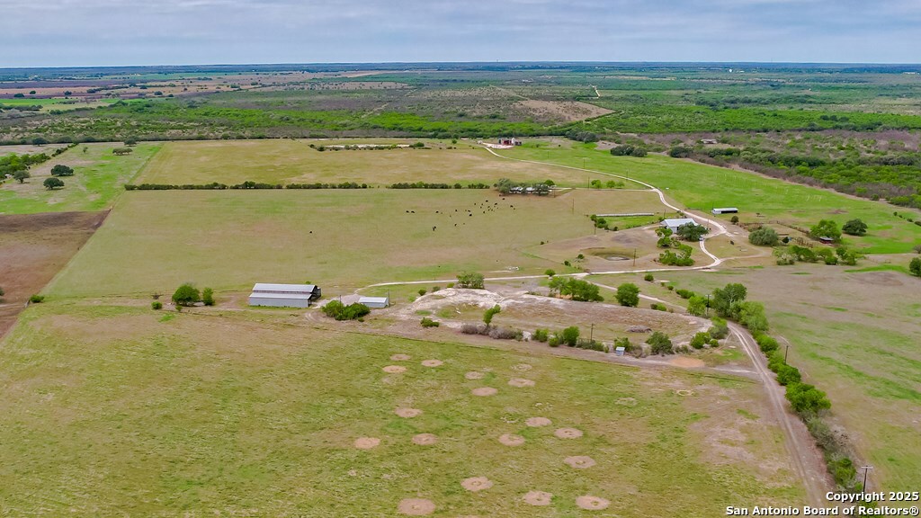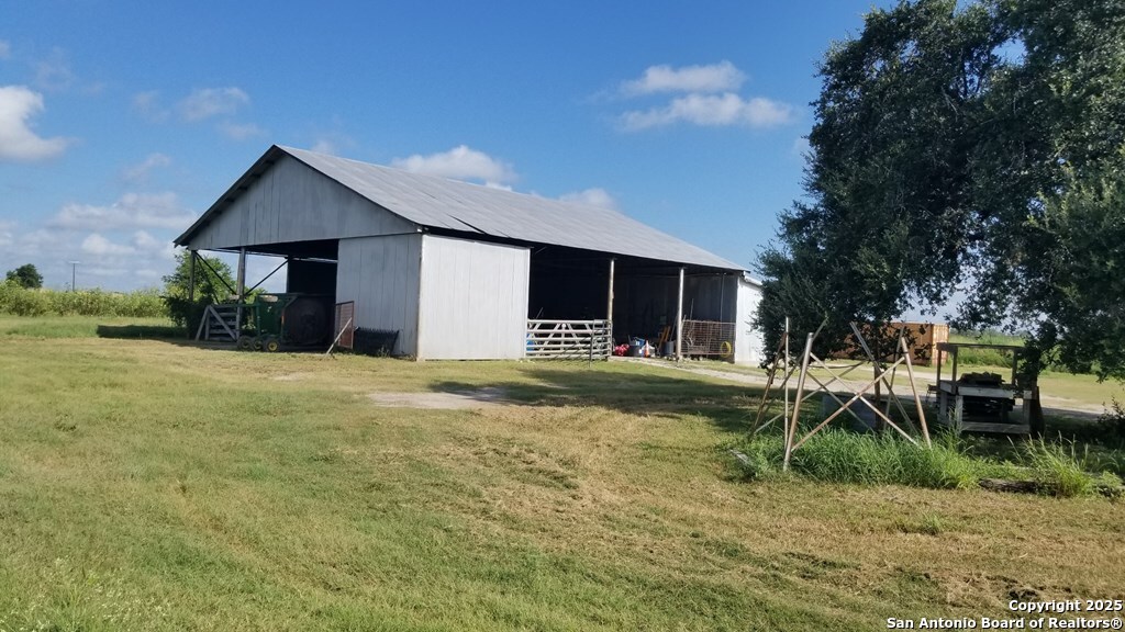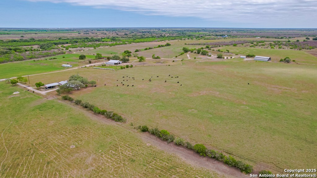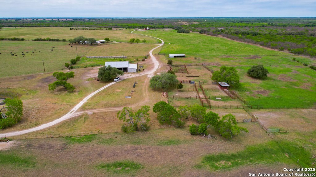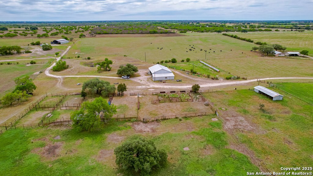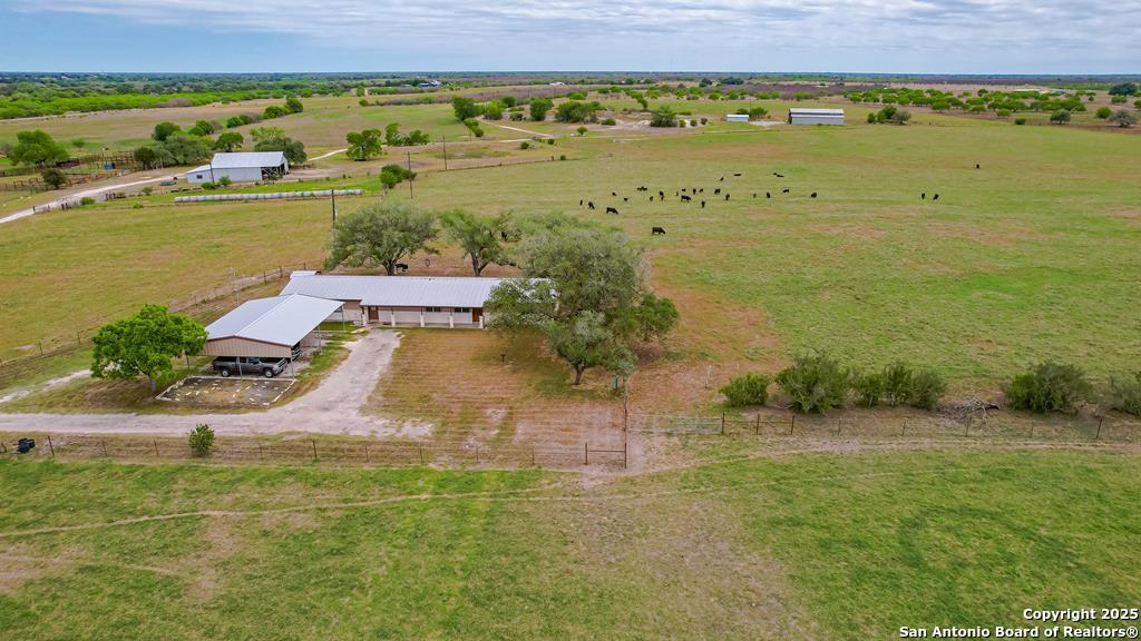 Highly improved cattle operation complete with ranch style home and casita. Selected grasses, spacious barns and equipment shed along with a horse stalling area,. There is also a nice tank that provides good dove hunting in the fall. There are some large live oak trees located around the house which is positioned back off from the road to provide privacy. A standing seam metal roof graces this 3 bedroom , 2 bath home which has a separate office, a walk-in pantry ,and oversized utility room with additional storage. This home has an open floor plan, custom kitchen cabinetry with pull out shelving and a 9' island . There are 2 water wells, 2 electric meters and the property is divided into 10 pastures/traps. The fences are constructed of net and barbed wire. Concrete or metal water troughs in each pasture. The sturdy pens are constructed mostly or 2" pipe and cattle panels. A small part of the NW corner is in a flood zone.; Original MLS#: 112004; Deed Restrictions: No; Features: Porch-Back; Gas Co: None; Home Warranty: No; Land Dimensions: 140; Land Size Apx: 140; Property Condition: Excellent; Property Exclusions: PERSONAL PROPERTY, EQUIPMENT, LIVESTOCK; Septic Size: 1000; Showing: Appointment Needed; Water District: No; Water Heater: Electric; Windows: Thermal; Zoning: Agricultural