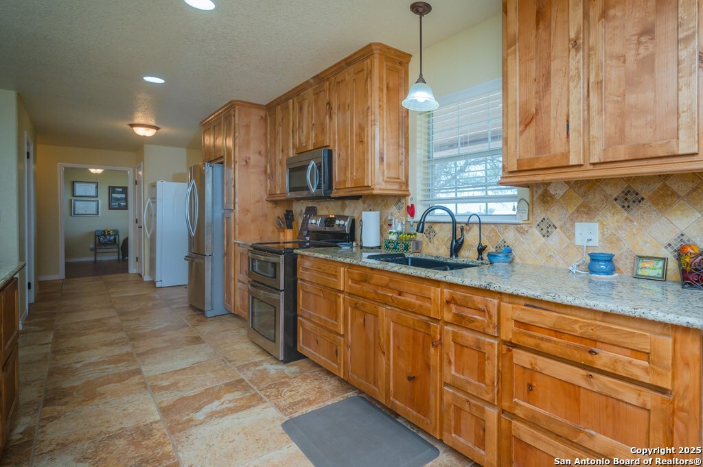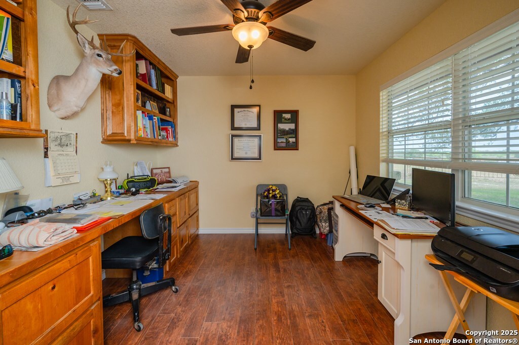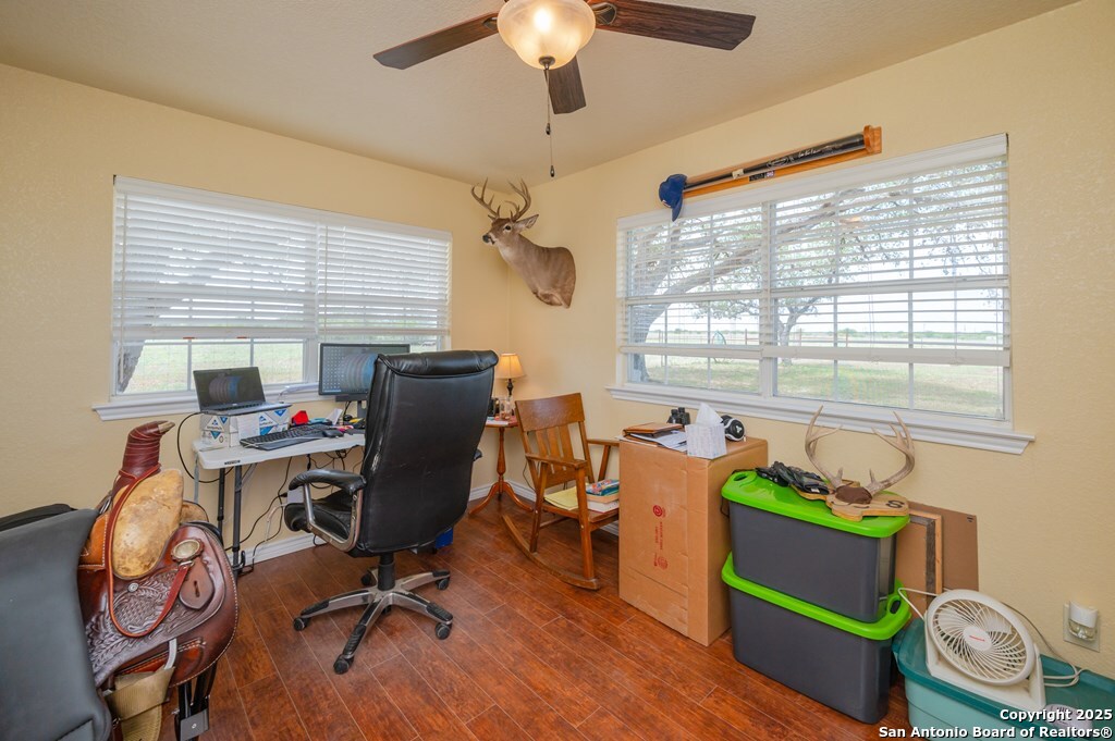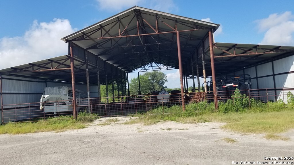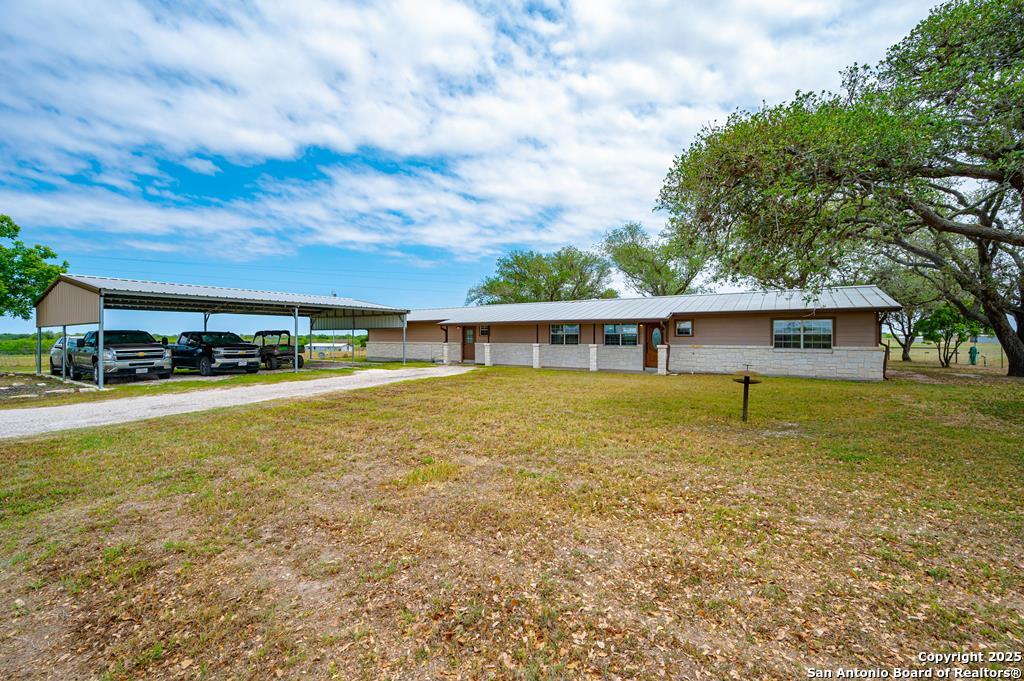 Highly improved cattle operation complete with ranch style home and casita. Selected grasses, spacious barns and equipment shed along with a horse stalling area,. There is also a nice tank that provides good dove hunting in the fall. There are some large live oak trees located around the house which is positioned back off from the road to provide privacy. A standing seam metal roof graces this 3 bedroom , 2 bath home which has a separate office, a walk-in pantry ,and oversized utility room with additional storage. This home has an open floor plan, custom kitchen cabinetry with pull out shelving and a 9' island . There are 2 water wells, 2 electric meters and the property is divided into 10 pastures/traps. The fences are constructed of net and barbed wire. Concrete or metal water troughs in each pasture. The sturdy pens are constructed mostly or 2" pipe and cattle panels. A small part of the NW corner is in a flood zone.; Original MLS#: 112004; Deed Restrictions: No; Features: Porch-Back; Gas Co: None; Home Warranty: No; Land Dimensions: 140; Land Size Apx: 140; Property Condition: Excellent; Property Exclusions: PERSONAL PROPERTY, EQUIPMENT, LIVESTOCK; Septic Size: 1000; Showing: Appointment Needed; Water District: No; Water Heater: Electric; Windows: Thermal; Zoning: Agricultural