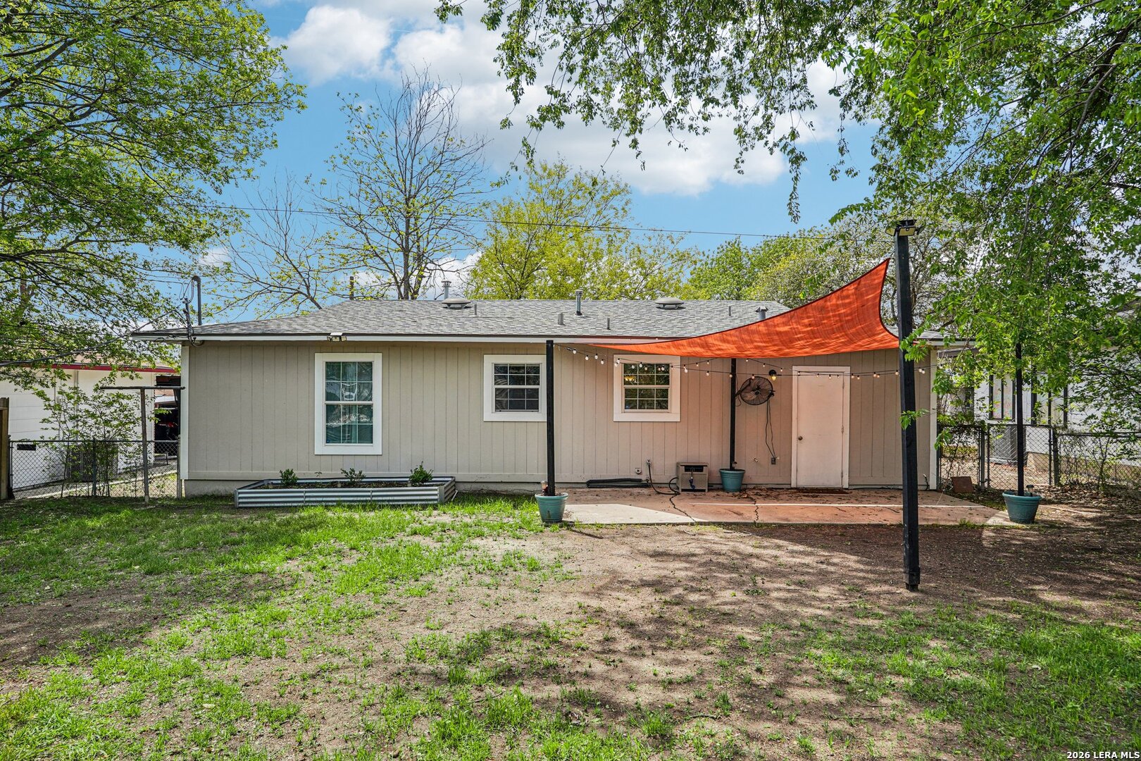 Charming Dell View home with flexible living space, recent system updates, and a large backyard with endless potential. This 3-bedroom, 2-bath property features marble-look tile flooring throughout, a spacious living area, and a private primary suite with en suite bath and standing shower. Separate office offers ideal space for working from home, hobbies, or guest use. Recent upgrades include a new HVAC system and added insulation for improved efficiency. Large backyard includes planters, alley access, covered patio area, and an air-conditioned shed perfect for a workshop, gym, studio, or storage. Washer, dryer, and kitchen hutch convey. Convenient central San Antonio location near shopping, dining, schools, and major highways makes this a great fit for first-time buyers, investors, or anyone looking for a home with value-add potential.