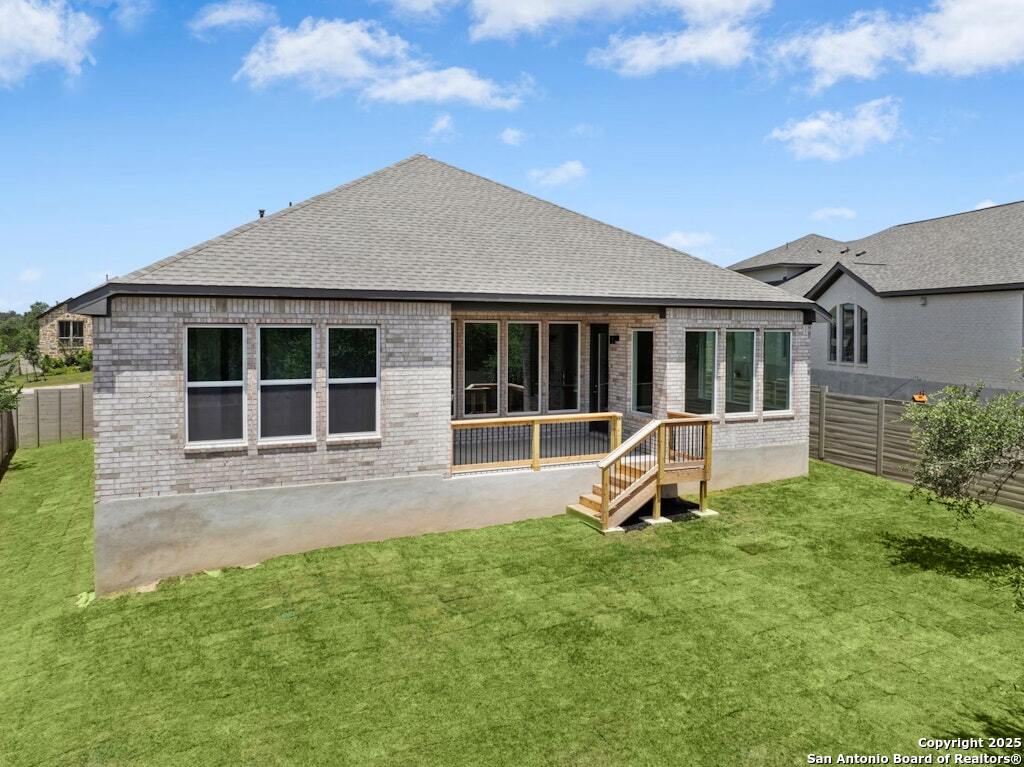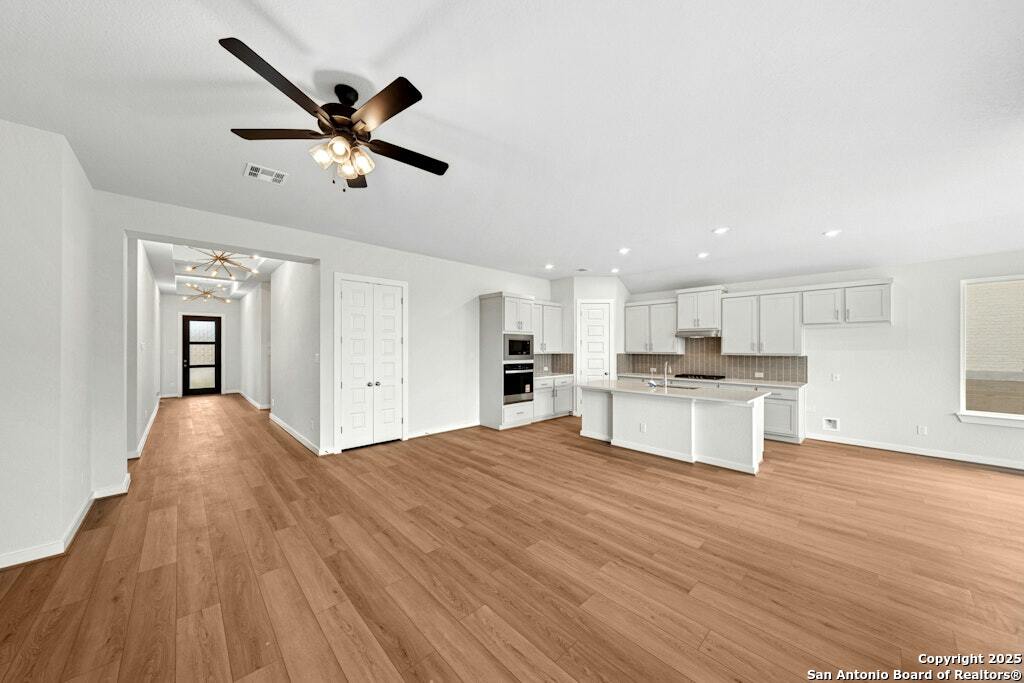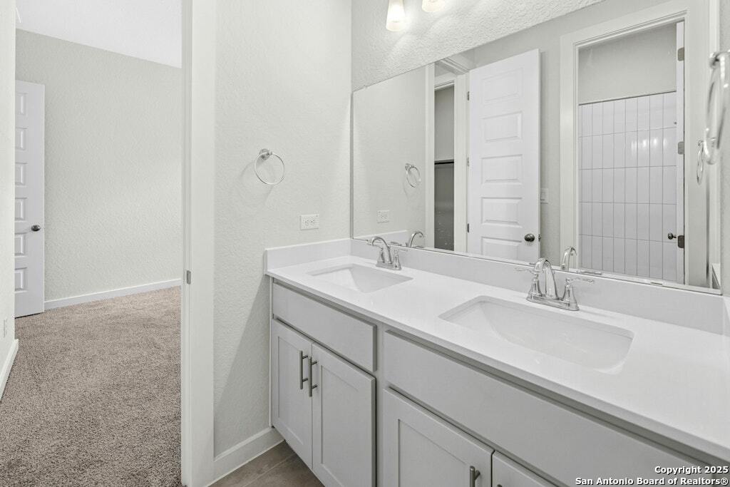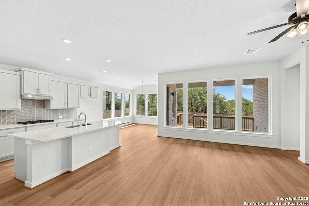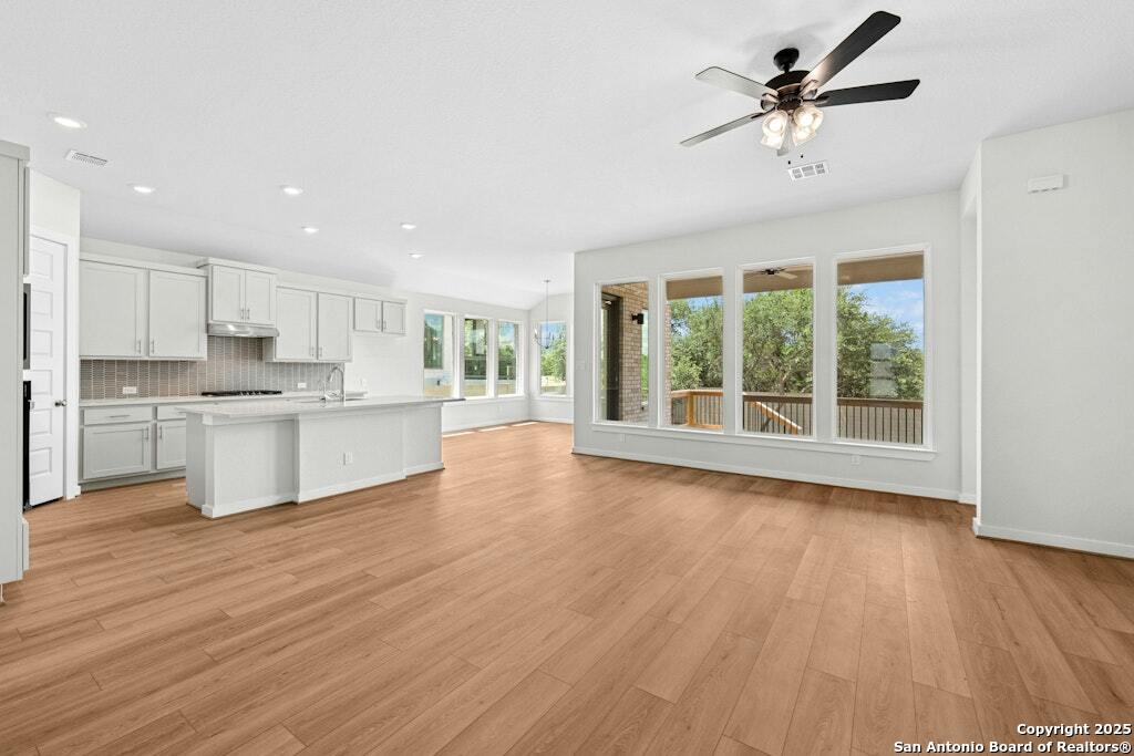 ** MOVE IN READY! ** Discover refined living at 339 Sugarcane in the sought-after New Braunfels area. This impressive 2,284 square foot residence offers the perfect balance of comfort and style with its thoughtfully designed floor plan featuring 4 bedrooms and 3 bathrooms. Step inside and be welcomed by the gallery entrance adorned with a modern chandelier fixture that sets the tone for the contemporary aesthetic throughout. The home showcases premium Vinyl Plank flooring in the sophisticated Barkley shade, unifying the main living spaces with warmth and durability. The heart of this home is undoubtedly the kitchen, where culinary enthusiasts will appreciate the sleek white cabinetry paired with elegant quartz countertops. A professional-grade 30-inch gas cooktop provides the perfect platform for creating memorable meals, while the deep stainless steel sink adds both functionality and style. The dining area, illuminated by another eye-catching modern chandelier, creates an inviting space for family gatherings and entertaining guests. The thoughtful continuation of white cabinetry and quartz countertops throughout the home maintains a cohesive design that feels both fresh and timeless. Whether you're hosting friends or enjoying quiet family evenings, this New Braunfels home delivers the perfect setting for creating lasting memories. With its blend of contemporary finishes and practical layout, 339 Sugarcane represents an exceptional opportunity to embrace the Texas Hill Country lifestyle with modern sophistication.