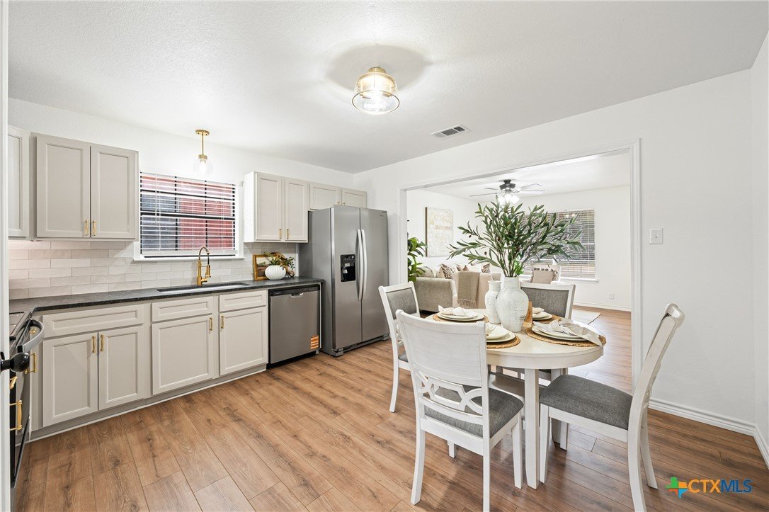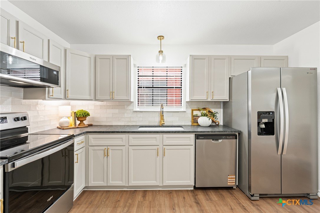 Welcome to the most adorable home in Morgan's Point! This 4 side brick home features 3 bedrooms, 2 bathrooms, and an open concept kitchen/living/dining setup you'll love. Freshly updated are brand new floors throughout, new lighting and fans, updated cabinets, new granite countertops, all new primary bathroom, fresh paint inside and out, and a brand new HVAC system. As an added bonus, this home comes with a detached metal building shop/garage at just under 600sqft with 2 large roll up bay doors, a window unit AC, TV, and plenty of electrical outlets! Park your vehicle, install your preferred hobby setup, or add a pool table and big screen for the perfect hangout spot. All of this sits on a quiet loop on the back side of Morgan's Point Resort just minutes from Lake Belton, and in Belton ISD (Lake Belton High School). Go check it out!