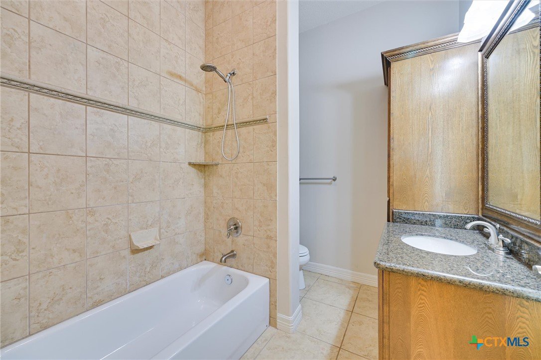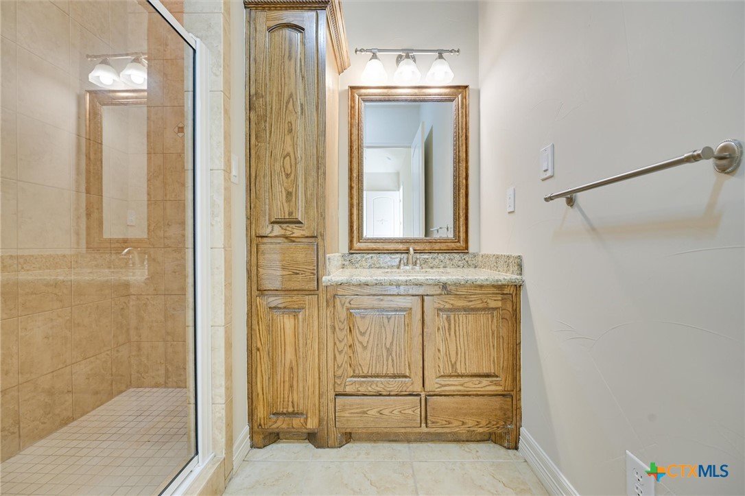 Set in a private and serene setting, this home welcomes you with a beautiful oak tree–covered front yard, inviting patio, and a covered back porch overlooking a seasonal creek and grotto. A fenced back yard area adds to the charm and functionality of this Hill Country retreat. Inside, the open-concept living and dining area flows seamlessly into the kitchen, which features granite countertops, stainless steel appliances, and a spacious walk-in pantry. A striking rock fireplace anchors the living room, while fresh interior paint (2024) brightens the entire space. This thoughtfully designed home offers three large bedrooms, each with its own ensuite bath, plus a convenient half bath for guests. The primary suite enjoys peaceful views of the backyard and includes dual walk-in closets, a double vanity, a jetted tub, and a separate shower. Other highlights include high ceilings, abundant natural light from large windows throughout, and a two-car attached garage. Recent upgrades: Roof (2025), grinder pump (2025), and disposal (2025). If you’re searching for your Hill Country dream home in the heart of the Wimberley Valley, this beautifully built residence is one you won’t want to miss!