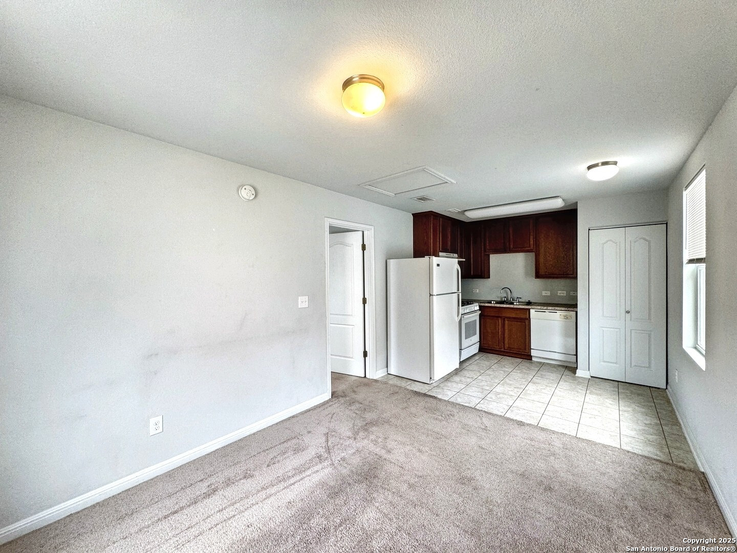 Welcome to 340 Perry Street Garage Apartment PRE-LEASING FOR AUGUST 13TH, 2025 MOVE-IN! in San Marcos, TX 78666-a charming one-story residence perfectly situated just moments from the heart of downtown. This well-designed unit features a comfortable layout with one bedroom and one full bathroom, ideal for those seeking a private and low-maintenance living space. Inside, you'll find a mix of soft carpet and easy-to-clean tile flooring, adding both comfort and practicality. The kitchen comes fully equipped and showcases dark brown wood cabinets that offer a touch of warmth and elegance. This home blends accessibility with style in a location that keeps you close to the vibrant culture, restaurants, and energy of downtown San Marcos. ***Please note the main home is leased separately, the garage parking is reserved for main homes, not for use by apartment tenants.