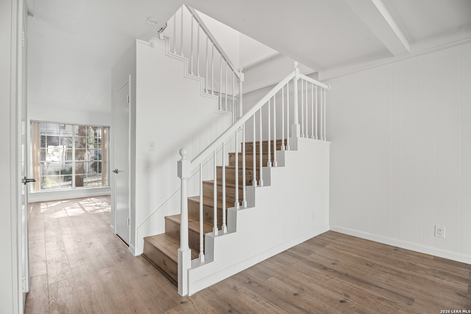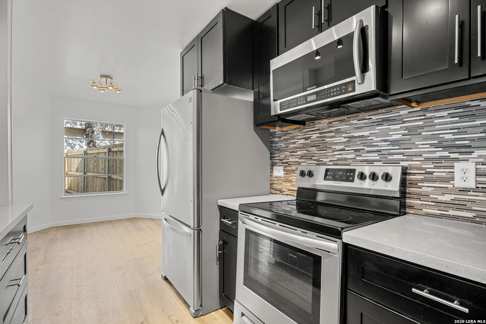 Beautifully renovated garden-style condo in the heart of San Antonio! This two-level townhome offers a functional layout with space to live, work, and unwind comfortably. The main floor features multiple living and dining areas, and a seamless flow into the updated kitchen complete with modern cabinetry and granite countertops, plus a dedicated breakfast nook. Fresh interior paint throughout gives the home a crisp, move-in-ready feel. A stylish new vanity enhances the downstairs half bath, while upstairs you'll find wood laminate flooring, generously sized bedrooms, oversized closets, and abundant storage. The primary bathroom vanity has been updated, and the guest bathroom has been fully renovated for a clean, modern finish. Enjoy your own private courtyard patio - a perfect tucked-away outdoor retreat - along with the flexibility of a detached two-car garage, a rare find in condo living. The oversized utility room adds even more everyday convenience.The HOA maintains exterior upkeep, landscaping, pool, clubhouse, and even covers the water bill, making for truly low-maintenance living. *INCENTIVES* $3,500 toward buyer closing costs or interest rate buy-down. The preferred lender is also offering up to 1% toward closing costs or rate buy-down for qualified buyers.