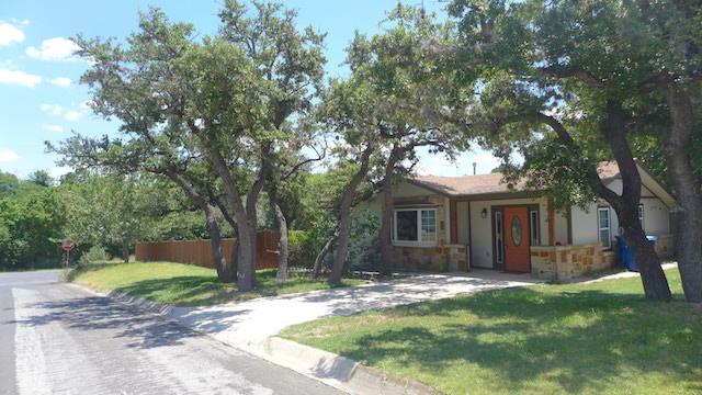 Very private with VIEWS of hills from bedrooms and outdoors. Adorable and updated 2/1 on 2 city lots at the corner of Town Creek & Bluebonnet. Mature trees, rock veneer, massive outdoor deck (over 1200sf) overlooking oversized yard. Major renovation in 2015-16 and more updates in 2019. Open floor plan, gas stove, beautiful wood floors, walk in closet, workshop, 4 year old roof. Plenty of room to stretch out and enjoy the outdoors. Broker is sole manager of selling entity.