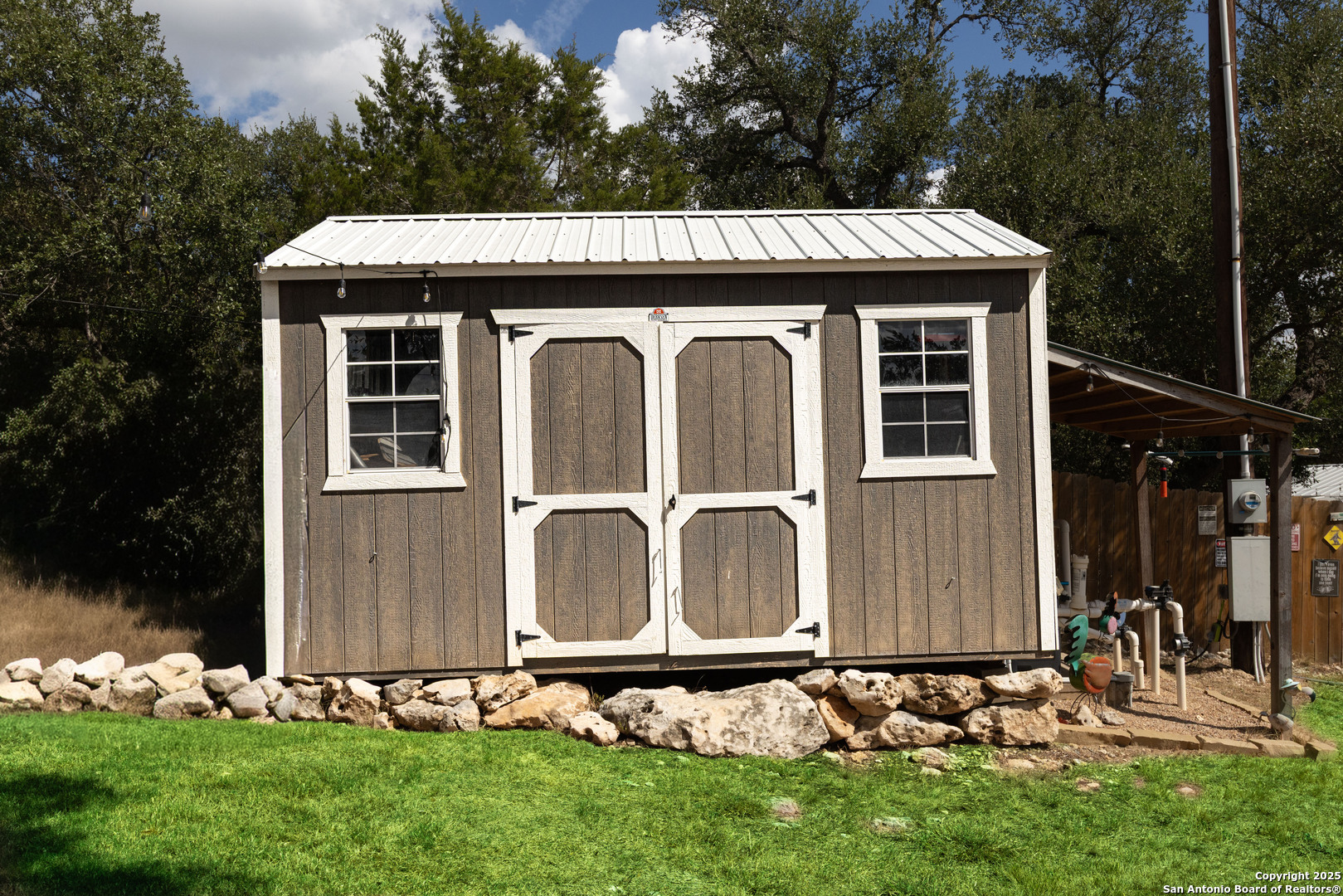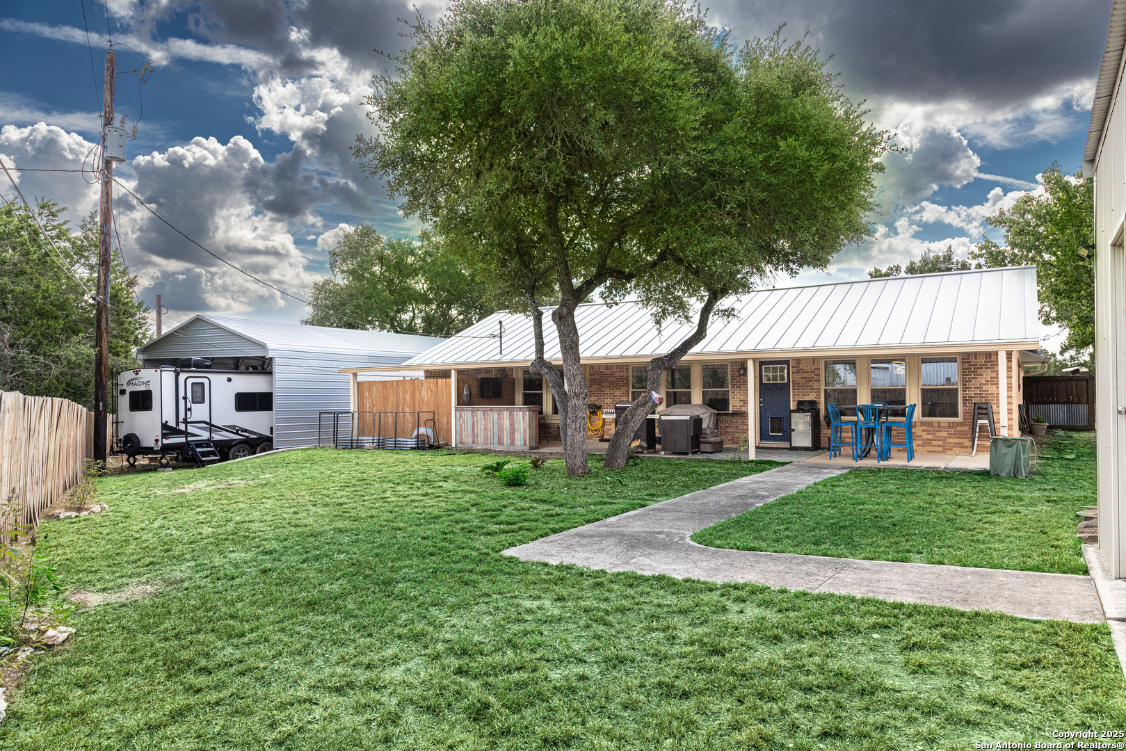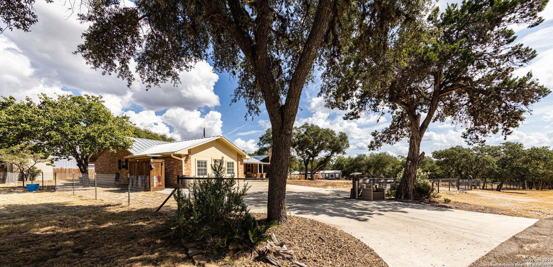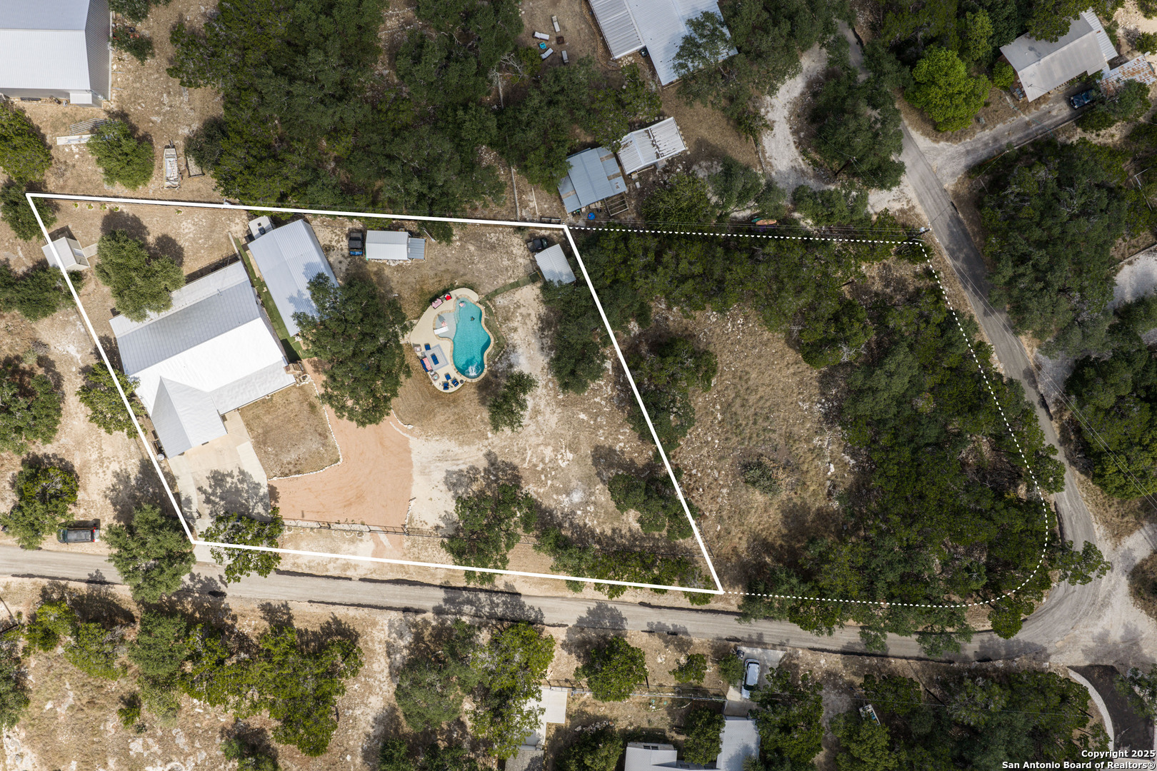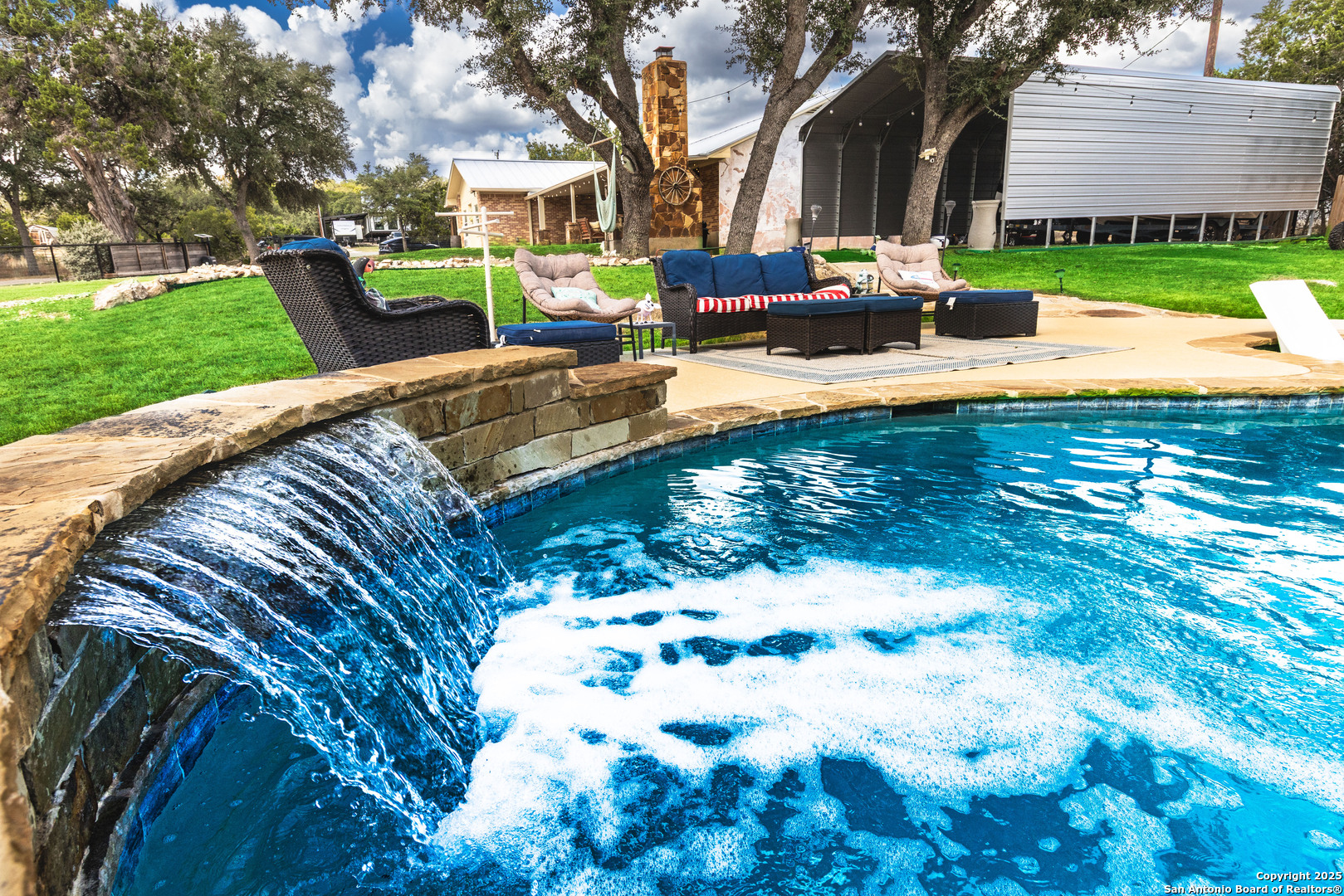 This stunning home truly has it all! Featuring 3 bedrooms and 2 bathrooms, measuring at 2020 sqft. It also boasts an office space that can easily serve as a 4th bedroom, complete with thoughtfully designed shelving. Step inside to find an inviting open concept layout that includes a high-end kitchen, equipped with modern stainless steel appliances and a spacious kitchen island featuring an induction stove. Recently remodeled just over four years ago, this home exudes contemporary charm. The master bedroom is a true retreat, offering a luxurious bathroom complete with a soaking tub and a full steam shower. All plumbing has been upgraded to Pex, and Ethernet drops are strategically placed throughout the home for added convenience. Cozy up by one of the two fireplaces, with an electric one inside and a wood-burning option on the patio. Outdoor living is elevated with two expansive covered patios, leading to a spectacular inground pool. The property also includes a large RV carport with its own near by electric meter and cleanout, perfect for accommodating your vehicles and recreational toys. Canyon Lake Boat Ramp 23 is just 5 min away. Don't overlook the three spacious storage buildings, one of which houses the private well. The entire property is completely fenced, featuring two automatic gates, and there are no HOA or ACC restrictions to contend with. All new windows and metal roof added in 2024. As an added option, the adjacent lot is also available for purchase by another owner, presenting an exciting opportunity to expand this already enchanting oasis.