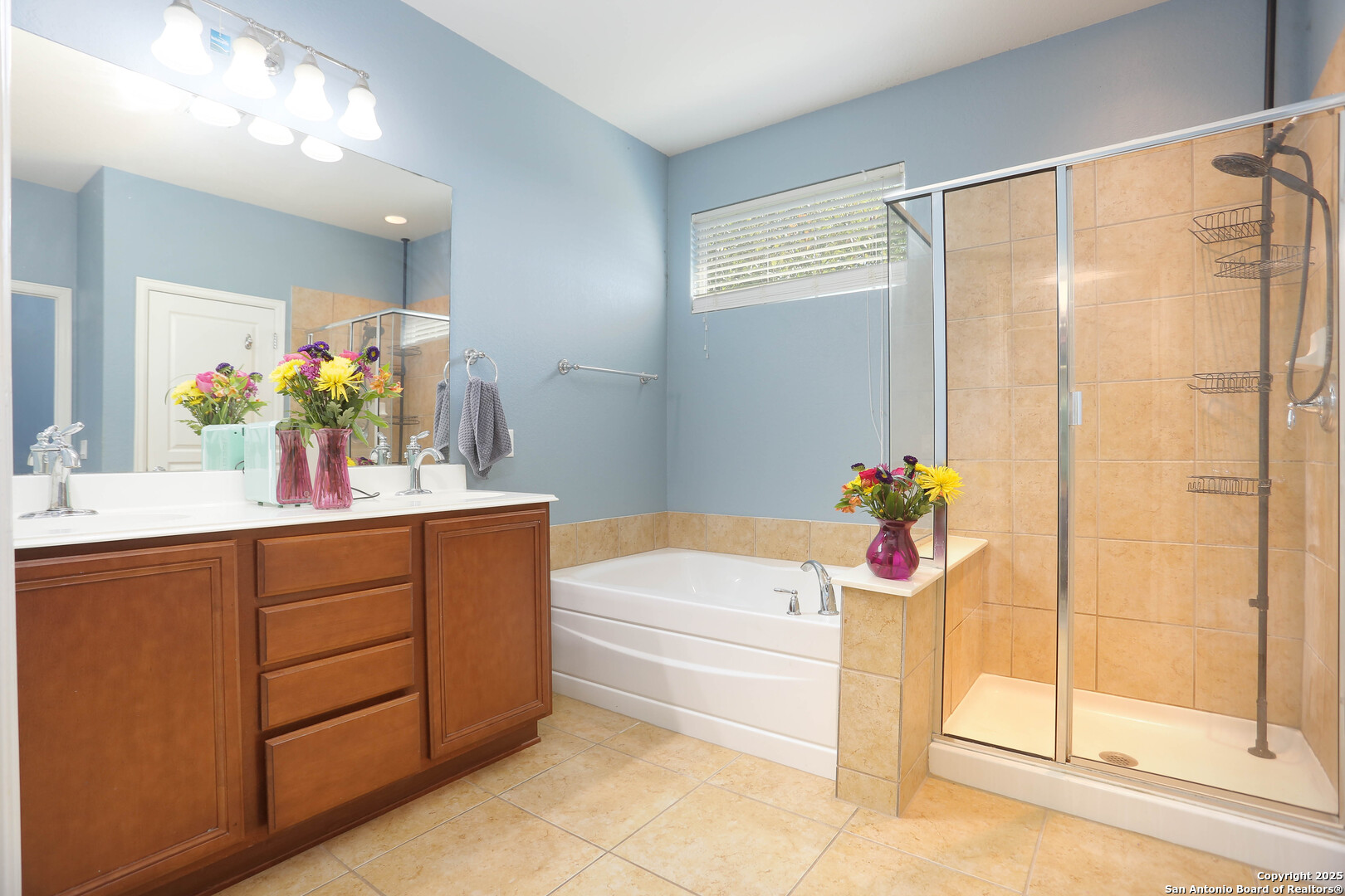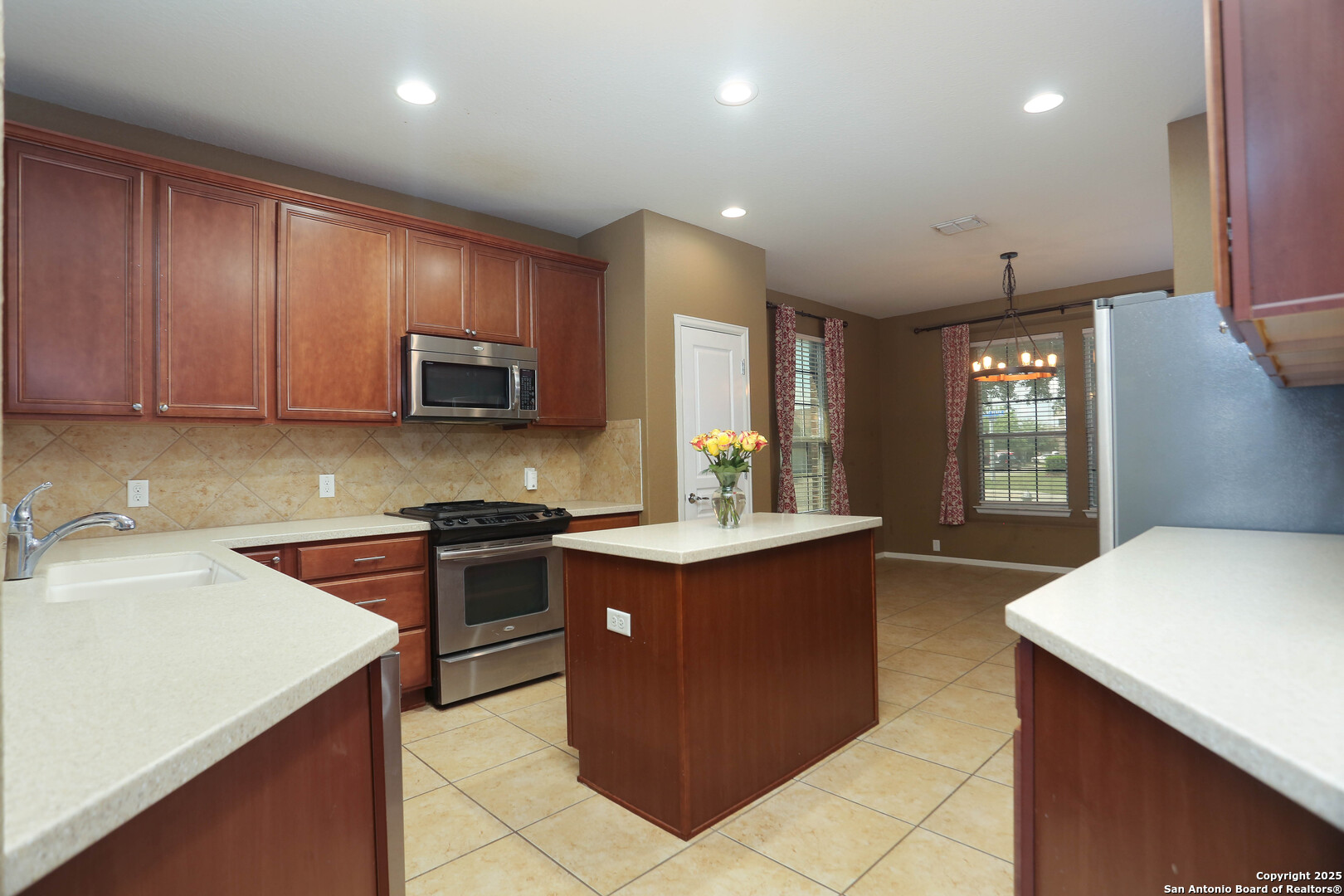 Welcome to your dream home in the highly sought-after Alamo Ranch community! This beautifully maintained single-story home sits on a serene greenbelt and features a charming brick exterior, offering both curb appeal and privacy. Boasting 4 spacious bedrooms and 2 full bathrooms, this home is designed for comfort and convenience. Step inside to an inviting layout perfect for everyday living and entertaining. The kitchen and living areas flow seamlessly, with plenty of natural light throughout. Enjoy peaceful evenings in your private backyard or take advantage of the incredible neighborhood amenities-including a sparkling community pool, playground, basketball court, and soccer field. Conveniently located near Lackland AFB, SeaWorld, H-E-B, Costco, shopping, dining, and top-rated schools-this location truly has it all. Whether you're looking for your first home or forever home, this property checks all the boxes. Don't miss your opportunity to live in one of San Antonio's most desirable neighborhoods-schedule your private tour today!