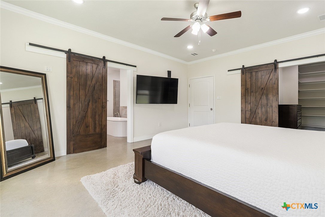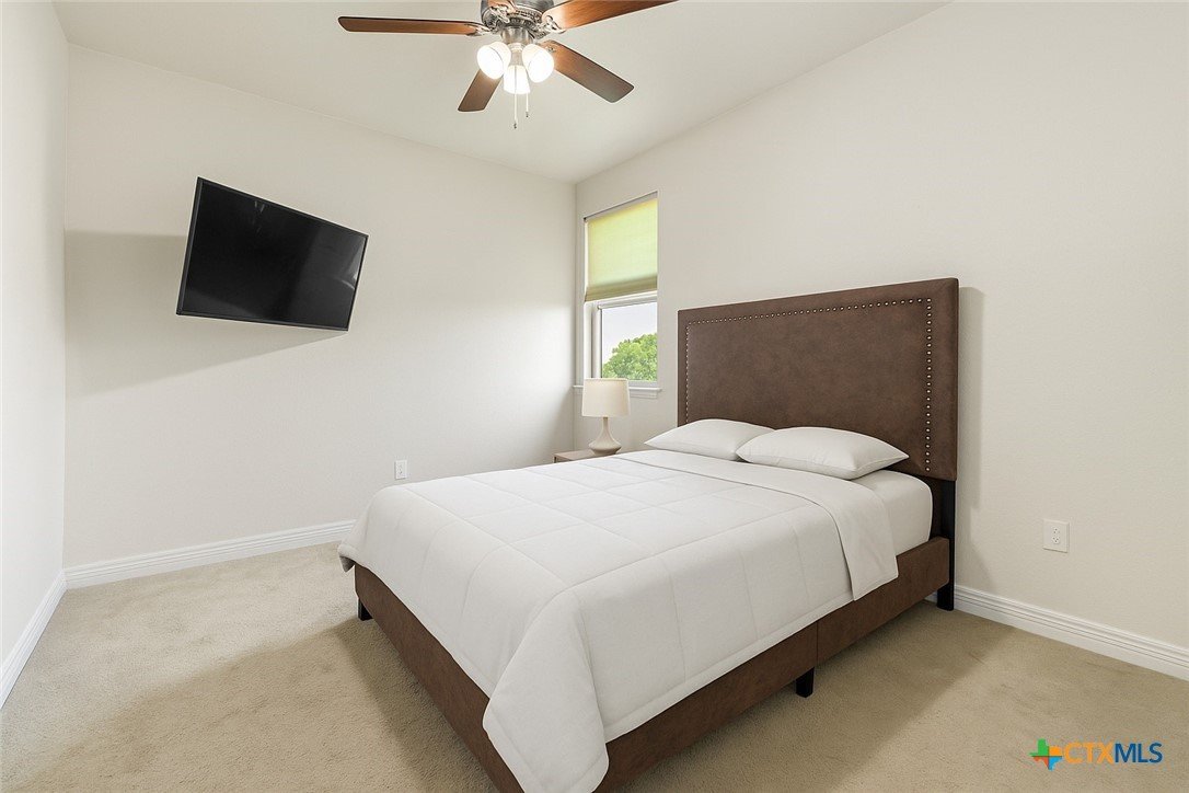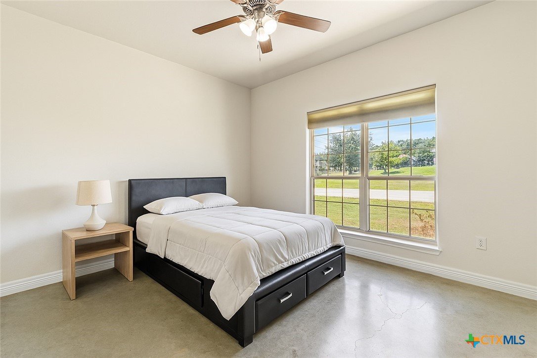 This stunning 4-bedroom, 3-bathroom home offers the perfect blend of modern design and natural beauty, with a breathtaking lake view visible from the upstairs balcony. Step inside to discover an open-concept living space illuminated by natural light, showcasing sleek finishes and concrete floors throughout. The kitchen boasts stainless steel appliances, quartz countertops, and a spacious island, ideal for culinary creations and entertaining guests. Relax in the primary suite featuring a spa-like ensuite bathroom complete with two separate vanities, a soaking tub, and a separate walk-through shower. Three additional bedrooms provide space for family or guests, each designed with comfort and style in mind. Whether you're hosting a barbecue or simply soaking in the serene surroundings, this space offers unparalleled relaxation. Solar panels will be paid off at closing! Located moments from Dana Peak Park's hiking trails and Stillhouse Lake's recreational activities, this home presents an unparalleled opportunity to embrace both tranquility and adventure. Don't miss your chance to experience lakeside living at its finest – schedule your showing today and make this modern masterpiece your own. Assumable VA loan available, solar panels will be paid off at closing and Sellers are offering up to $10k for closing.