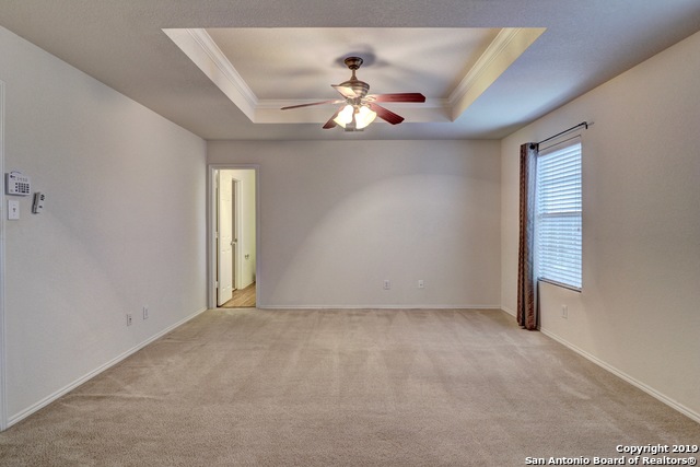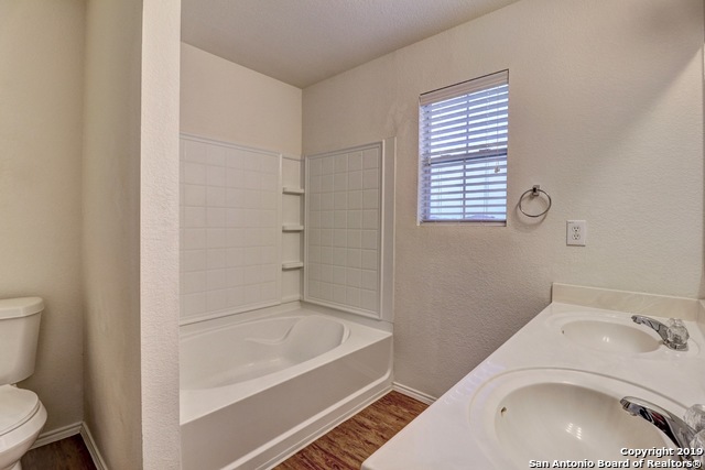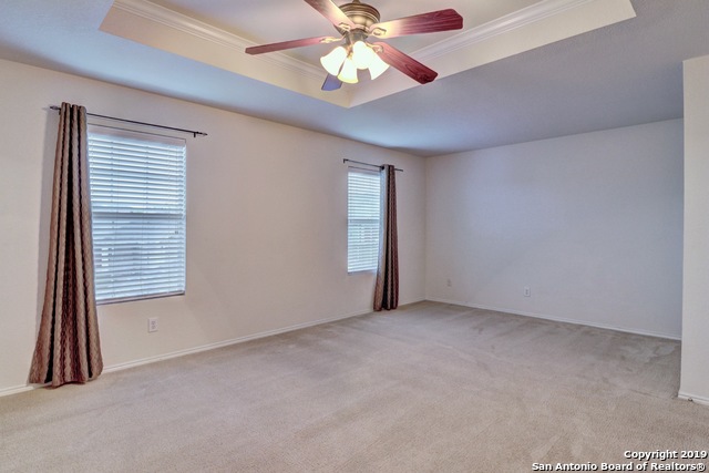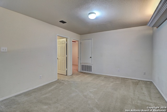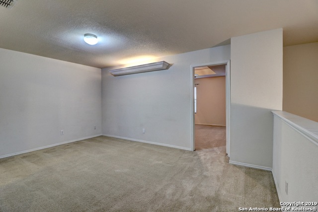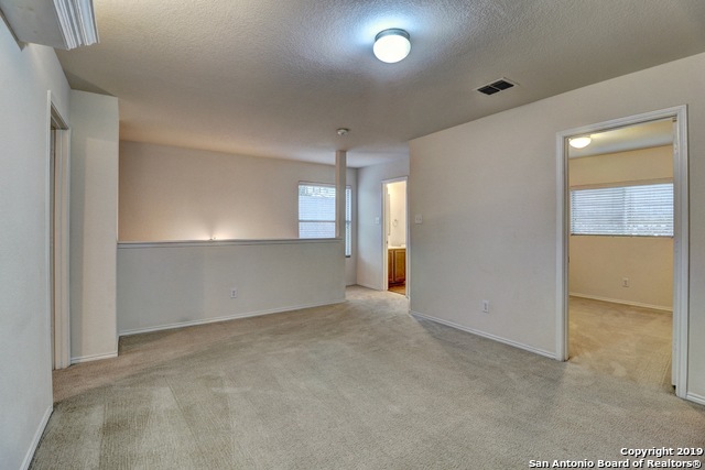Cozy 2 story in highly desired Bulverde Village! Home Features - Open layout, Upstairs Game Room, Formal Dining Room, New Carpet, Fresh Paint, Laminate Floors at Living, Vinyl Floors at all Wet Areas, New Commodes, New Privacy Fence, Sprinkler System, Large Master Bedroom with Tray Ceiling and Crown Molding, Dual Vanity Sinks at Master Bath with Garden Tub, Large Walk in Closet at Master Bedroom, 2" Faux Blinds & Rock retaining wall in the backyard that provides privacy as you relax on the rear covered patio! Fridge stays and students will attend award winning Northeast Schools!
