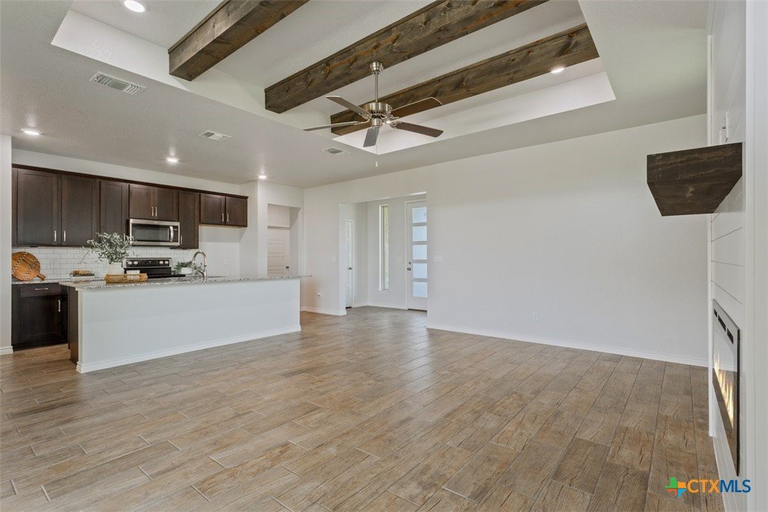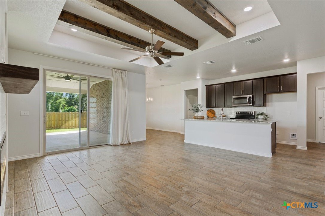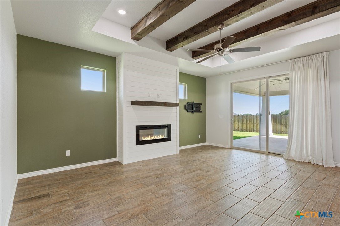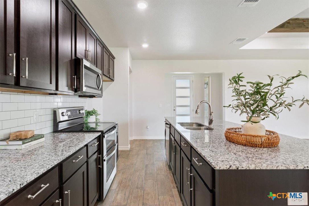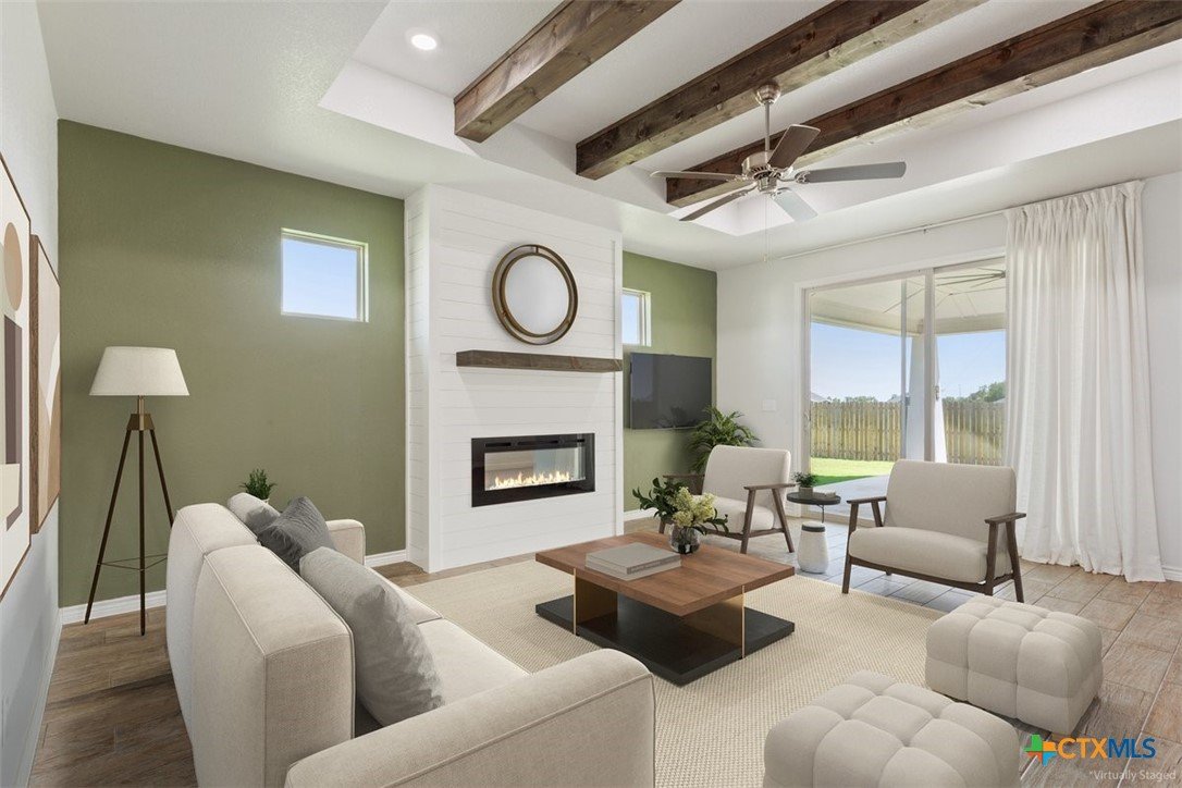 Swing by and see this well-kept, Flintrock home, built in 2022. With 4 bedrooms and 2 full baths, this home would be a great spot for your family! Located on the curve of a cul-de-sac with no back neighbors, avoid neighborhood through-traffic and enjoy a large wrap-around backyard w/ covered porch and irrigation system installed. Even better, this property is within walking distance to the community pool. Back inside, you'll find an open concept layout with a cozy electric fireplace and a beamed, tray ceiling in the living room. Kitchen boasts a large island, granite countertops, stainless steel appliances and large walk-in pantry with plenty of shelving. Tile flooring is found throughout, with carpets in the bedrooms. In the primary suite you can take advantage of a spacious primary bathroom and large walk-in closet. Property is located right off S 31st St, just minutes from Baylor Scott & White Hospital and tons of local amenities. Quick access to I-35 via HW93. Under 30 minutes to Ft Hood, 1 hour from Austin, 50 min from Waco. Buyer and buyer's agent to verify all details. Information deemed reliable but not guaranteed.