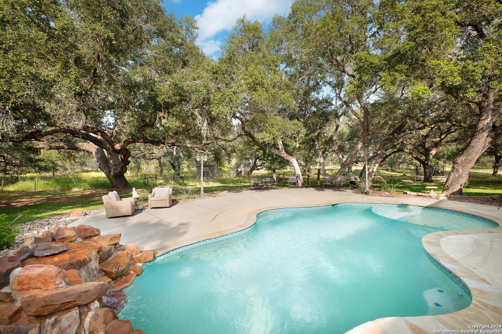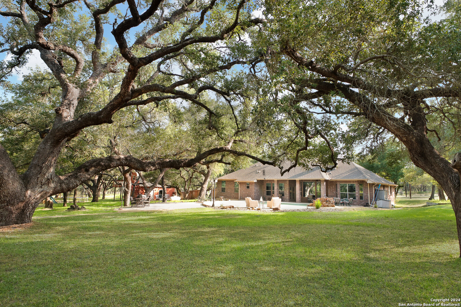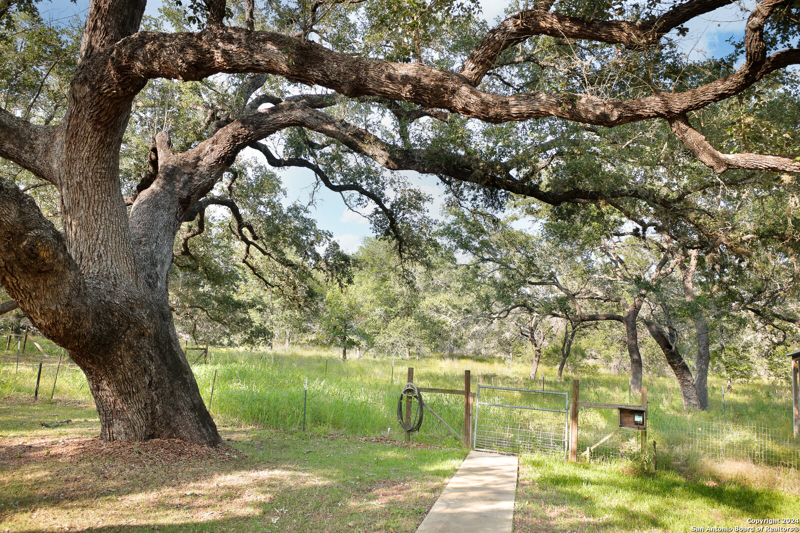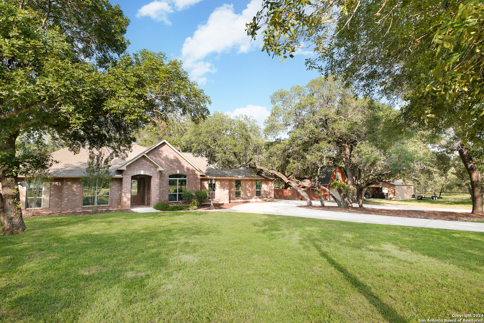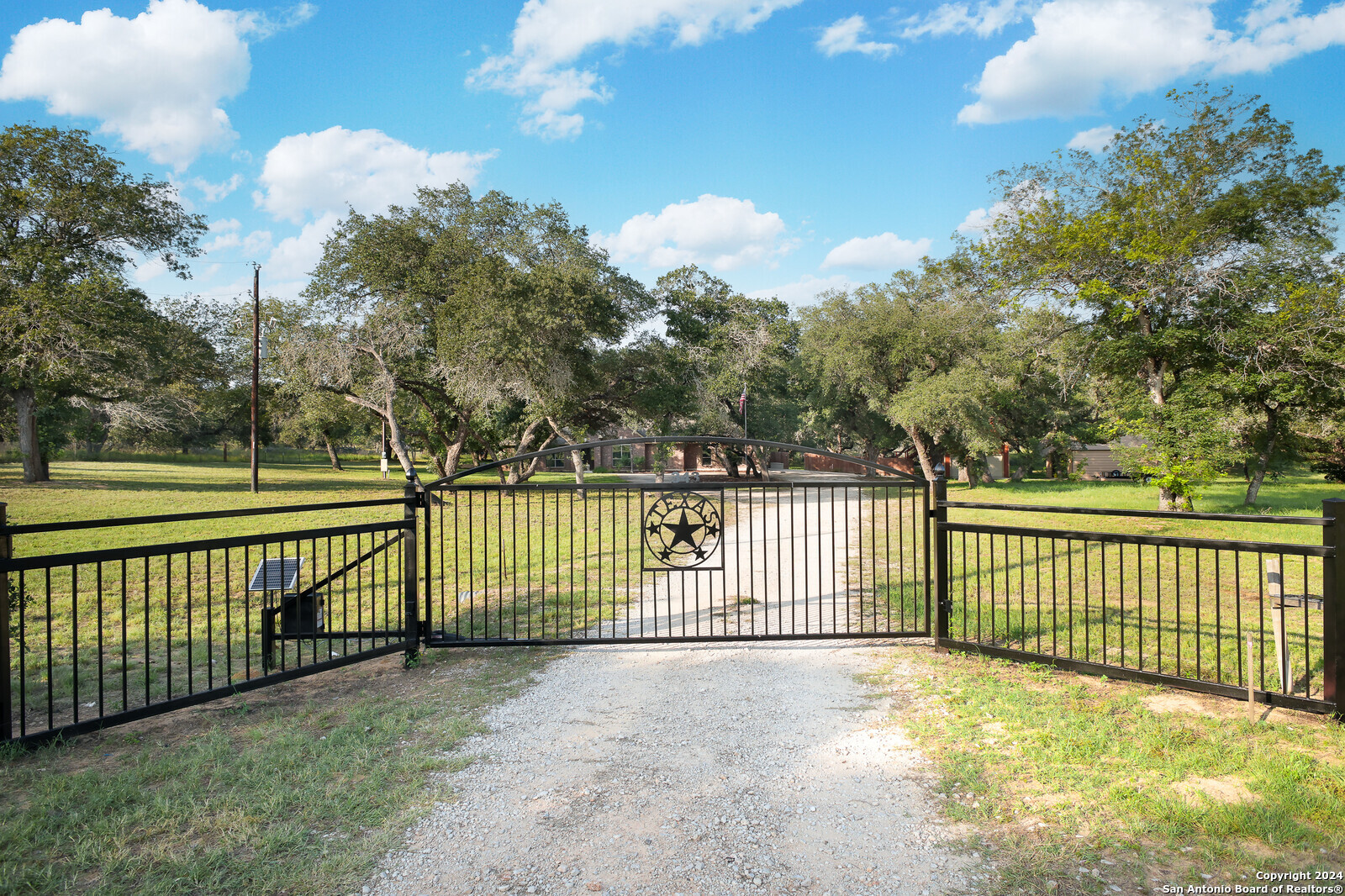 Discover luxury living on a stunning 45-acre ranch estate, perfectly located just moments from downtown Floresville. This exceptional property offers a rare wildlife exemption, making it both easy to maintain and tax-efficient. The custom-built home exudes superior craftsmanship and enduring quality. Step inside to find hand-scraped bamboo flooring, a cozy wood-burning fireplace, and an inviting layout. The gourmet kitchen is a chef's dream, featuring granite countertops, gas cooking, and a spacious walk-i