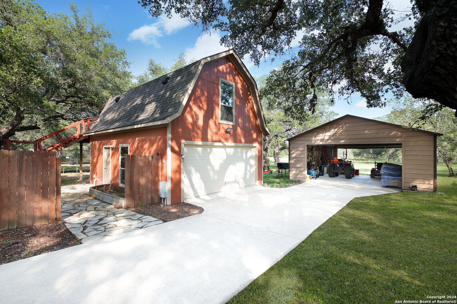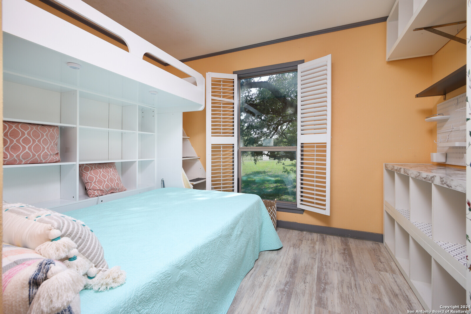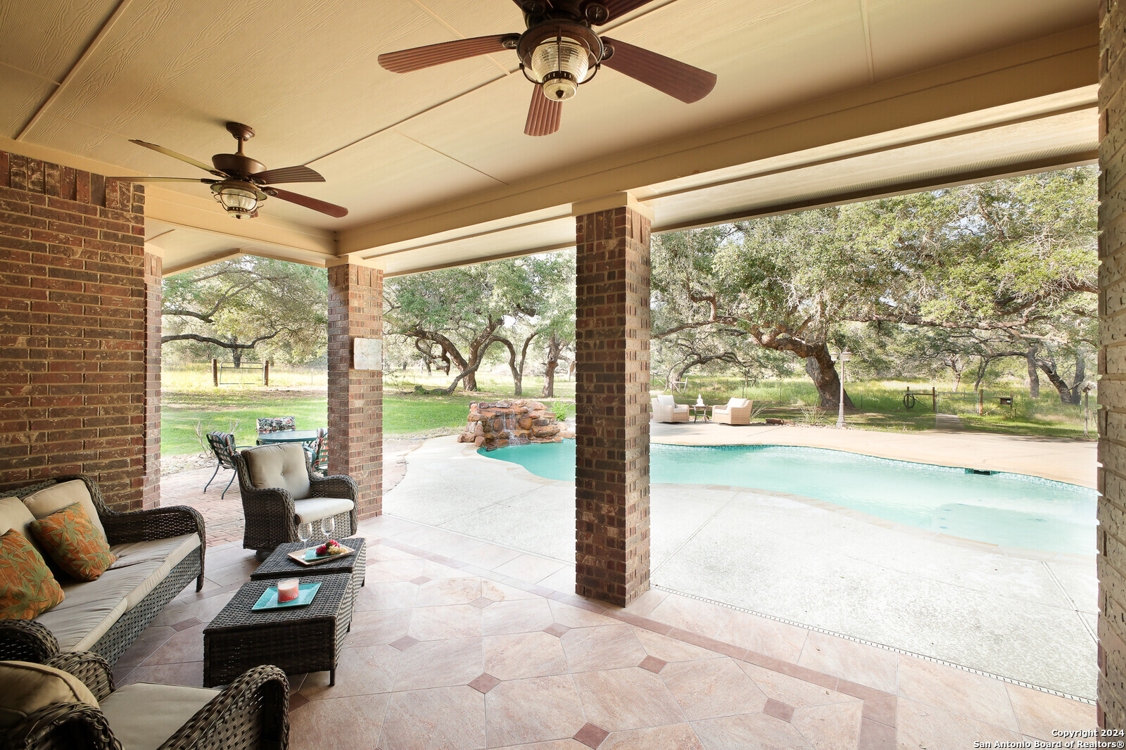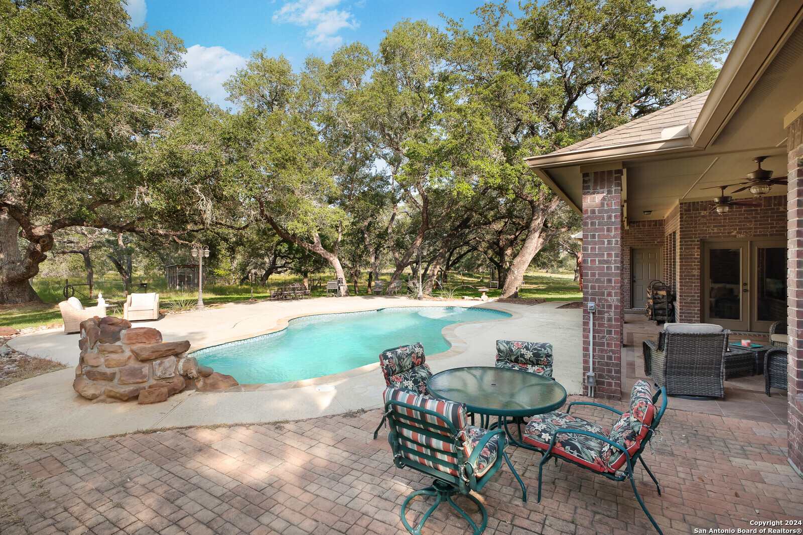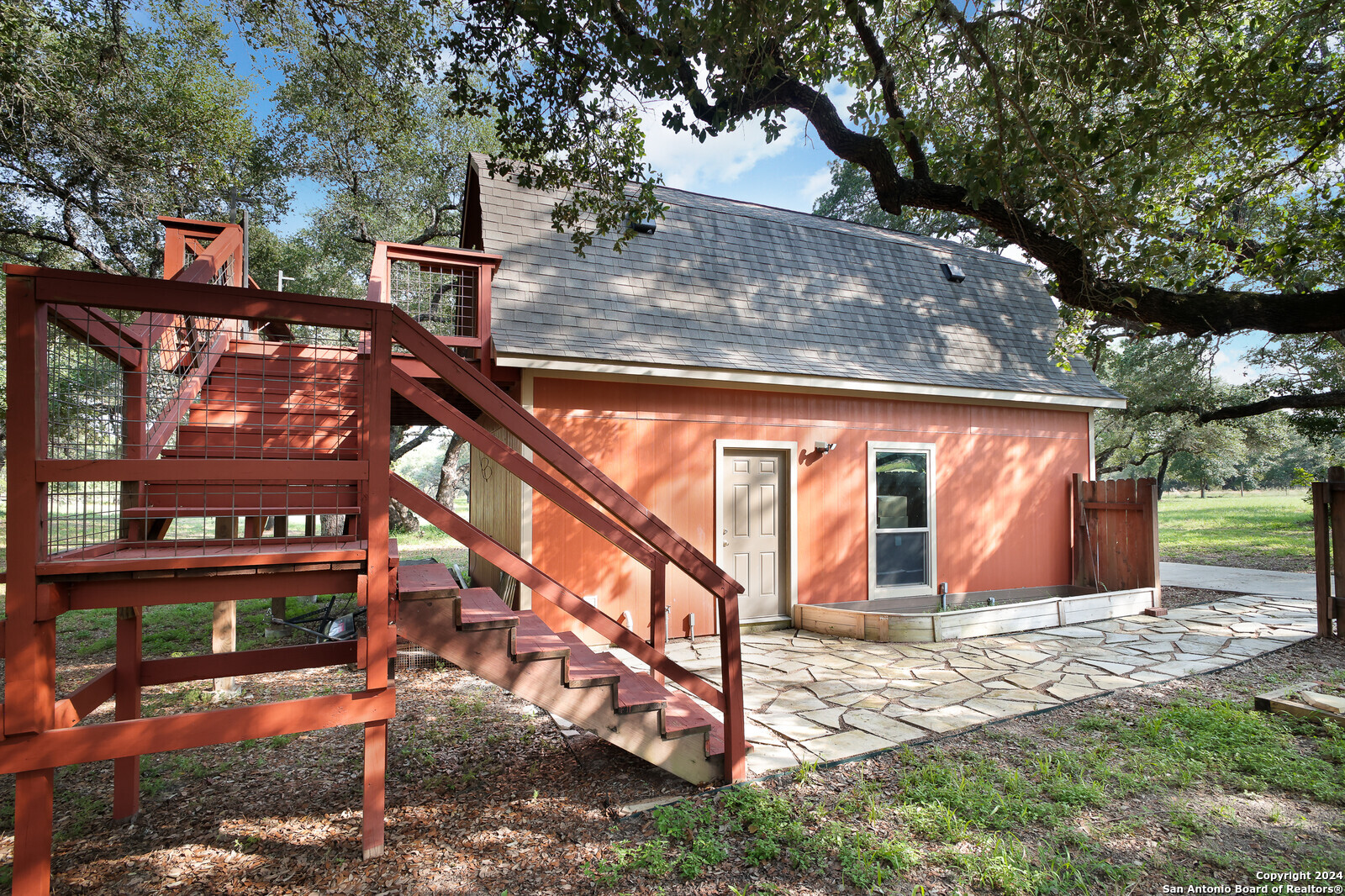 Discover luxury living on a stunning 45-acre ranch estate, perfectly located just moments from downtown Floresville. This exceptional property offers a rare wildlife exemption, making it both easy to maintain and tax-efficient. The custom-built home exudes superior craftsmanship and enduring quality. Step inside to find hand-scraped bamboo flooring, a cozy wood-burning fireplace, and an inviting layout. The gourmet kitchen is a chef's dream, featuring granite countertops, gas cooking, and a spacious walk-i