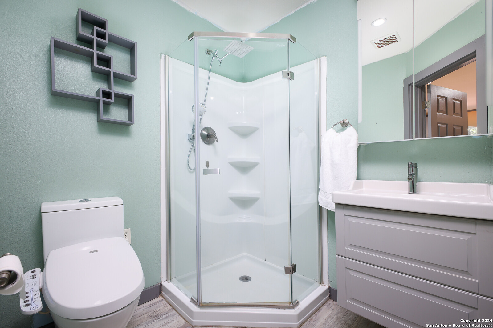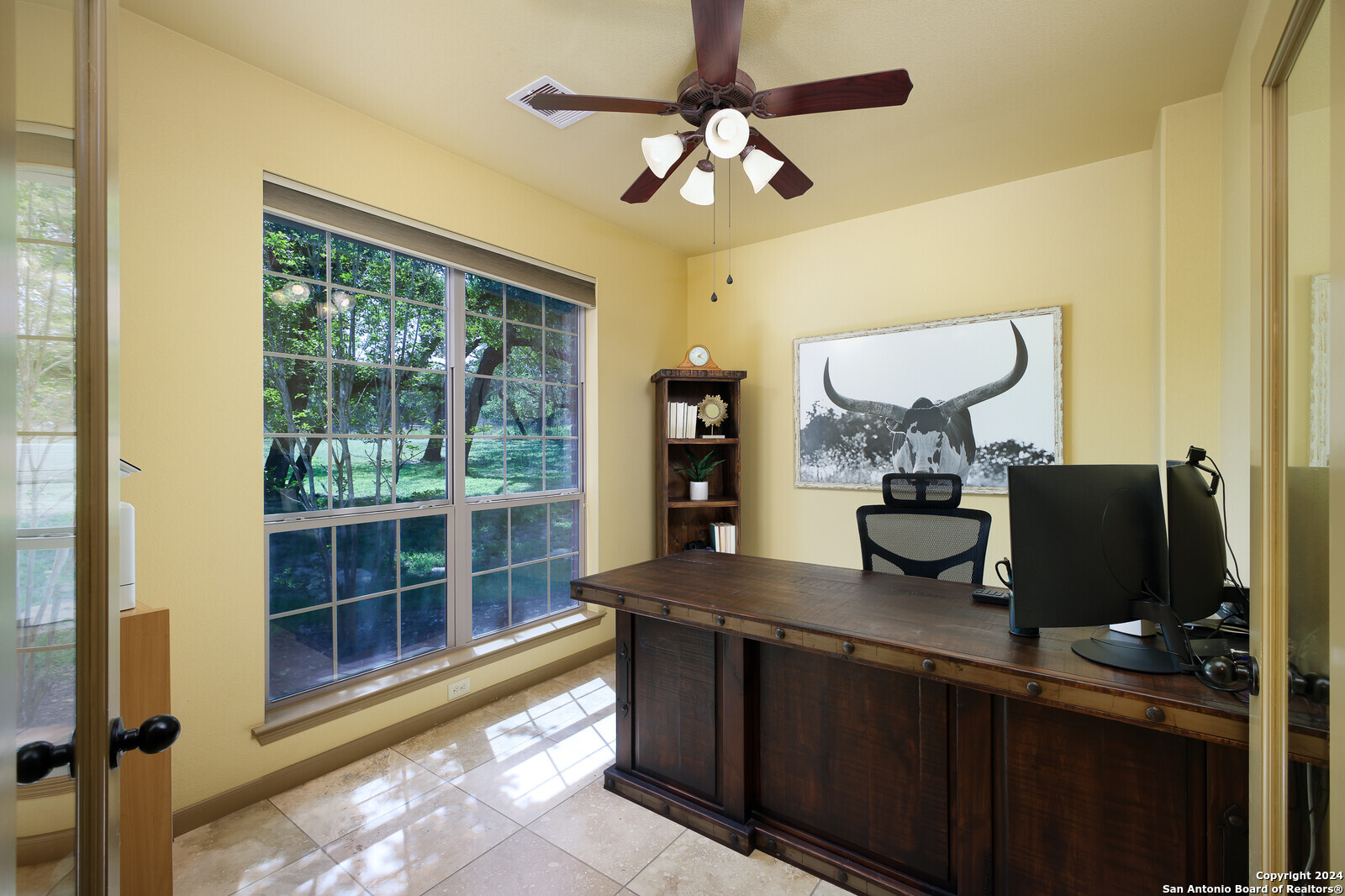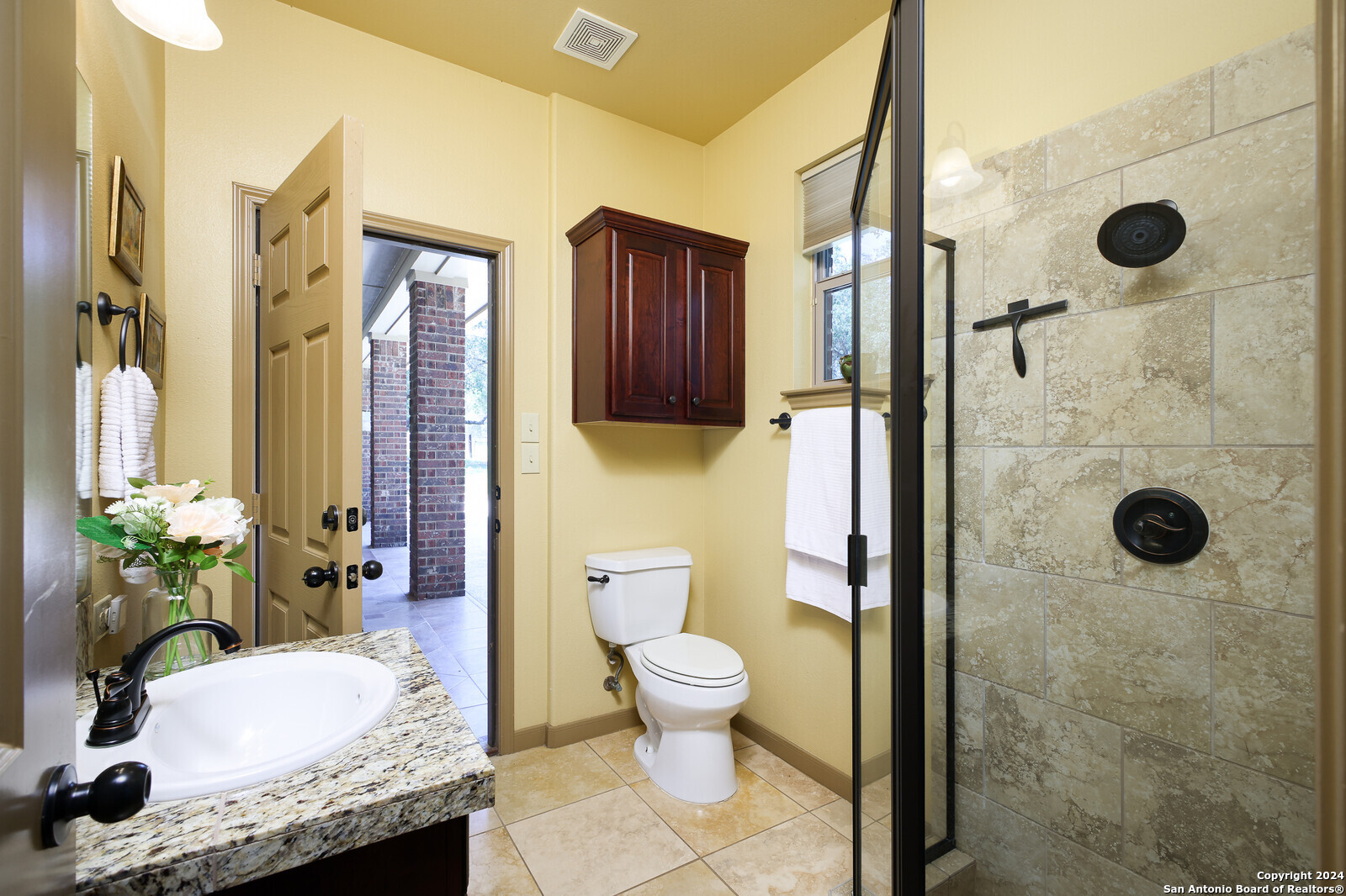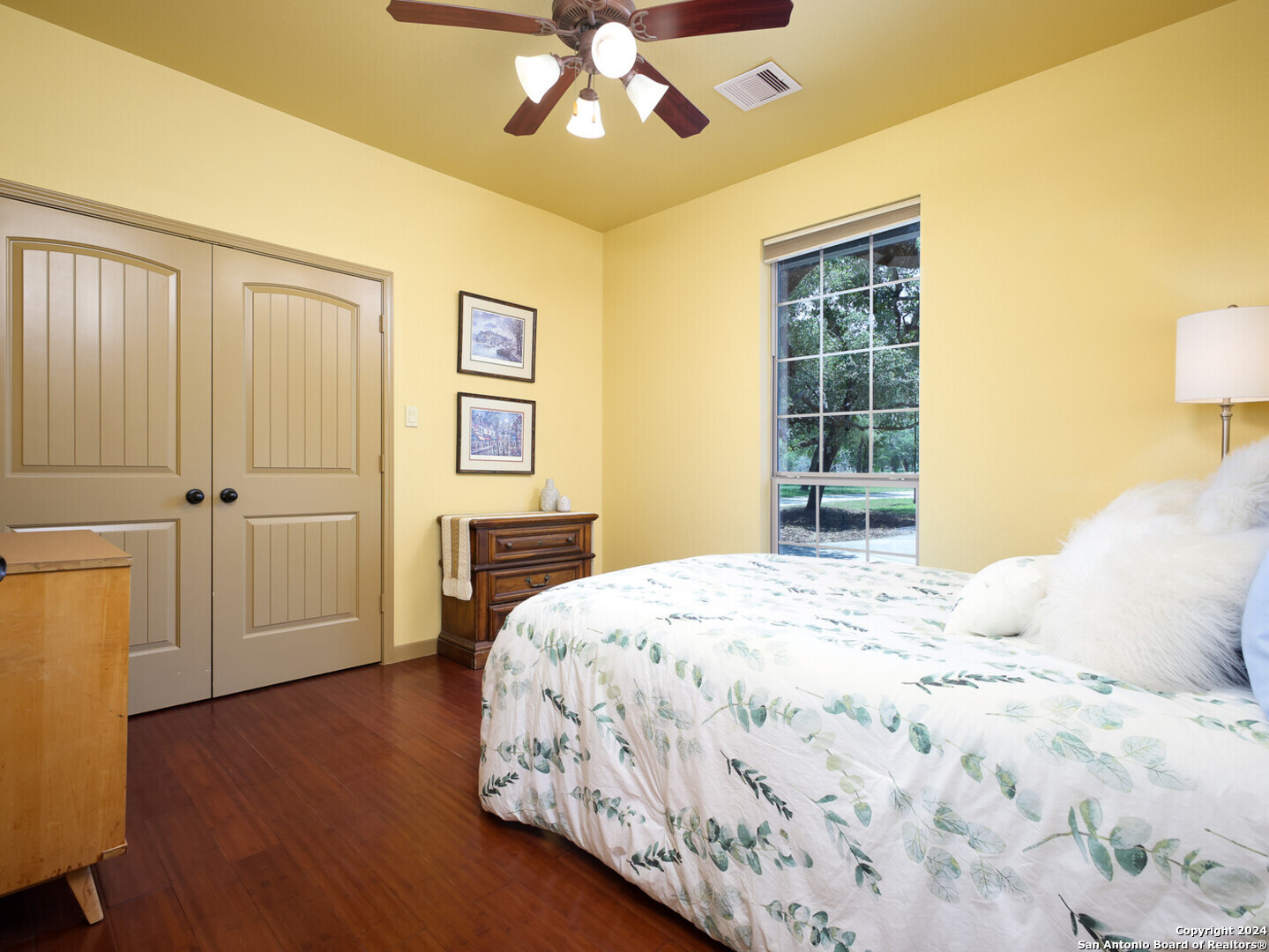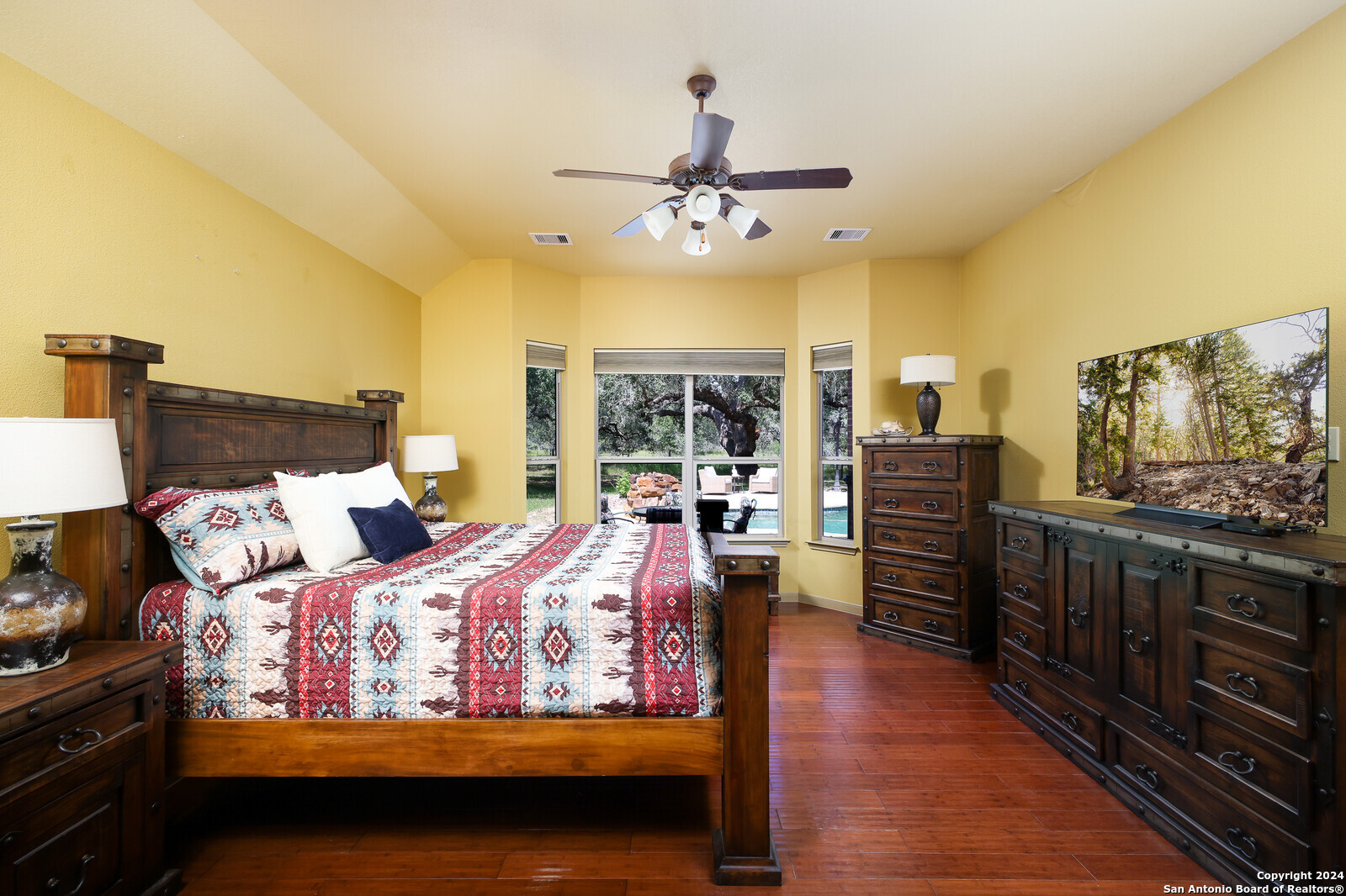 Discover luxury living on a stunning 45-acre ranch estate, perfectly located just moments from downtown Floresville. This exceptional property offers a rare wildlife exemption, making it both easy to maintain and tax-efficient. The custom-built home exudes superior craftsmanship and enduring quality. Step inside to find hand-scraped bamboo flooring, a cozy wood-burning fireplace, and an inviting layout. The gourmet kitchen is a chef's dream, featuring granite countertops, gas cooking, and a spacious walk-i