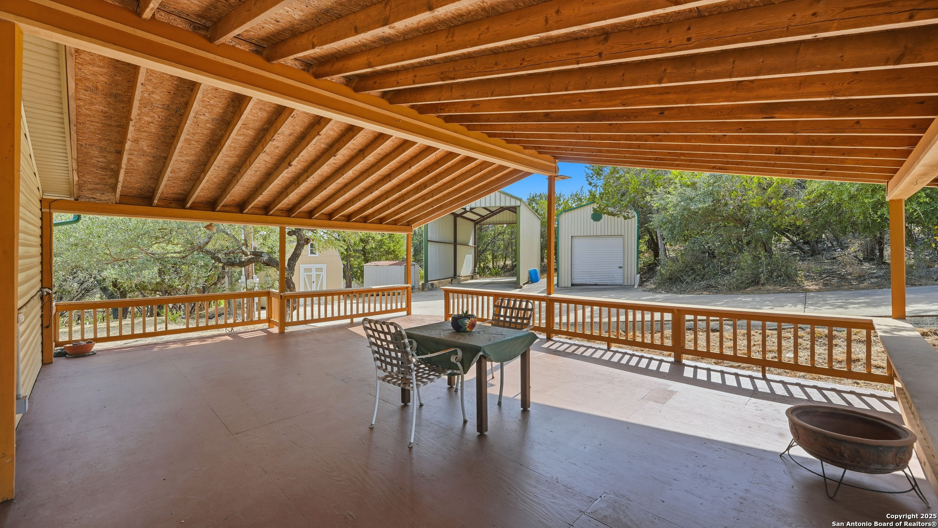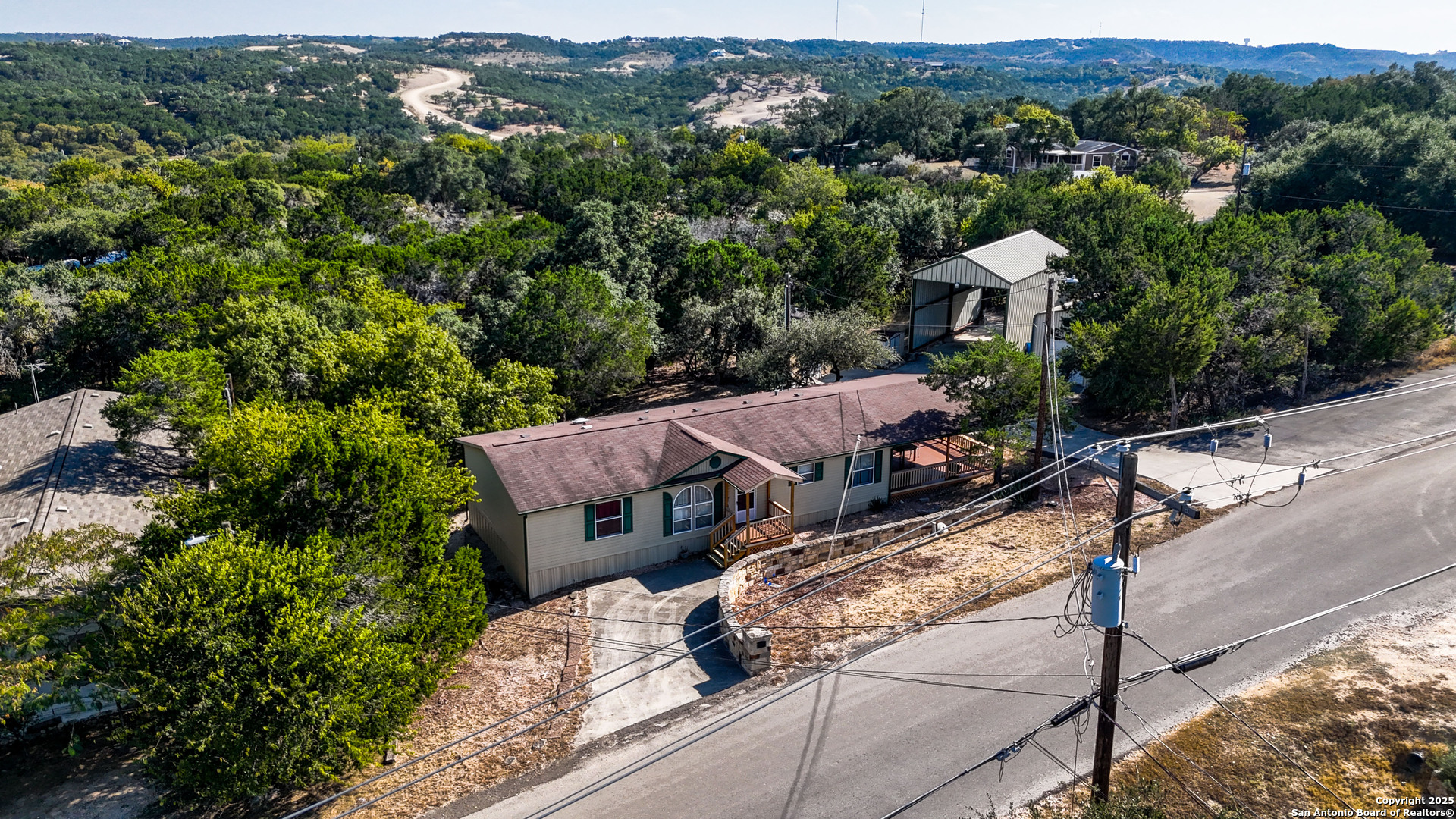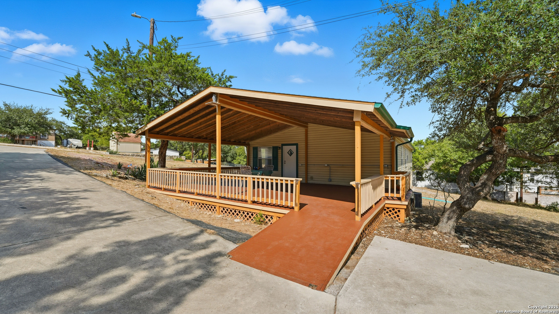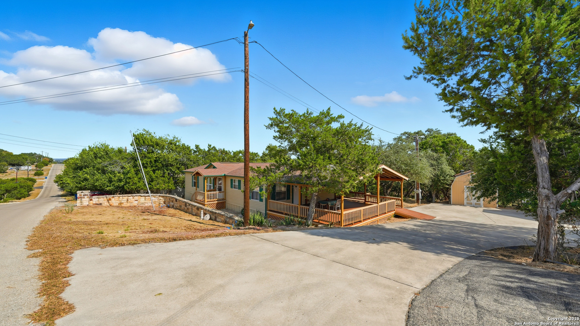 Enjoy Hill Country living in this lovely 3-bedroom, 2-bath home on a LARGE ONE-ACRE LOT, WITH NO HOA and NO RESTRICTIONS. This unique property also includes FOUR OUTBUILDINGS: RV Carport (20' x 40'), Detached Metal Garage (12' x 22'), Wooden Shed (11' x 15') and Metal Shed (7' x 10'). You'll have all of the space you need for recreational equipment, hobbies and storage. And, a spacious 600 sq ft covered deck provides the perfect place for family gatherings or a relaxing cup of coffee each morning. IDEAL FOR FULL-TIME LIVING, A VACATION RETREAT, OR AN AMAZING INVESTMENT PROPERTY. There are TWO SEPTIC SYSTEMS-one for the home and one located at the RV Carport, and TWO, 220-AMP SERVICE ELECTRIC METERS-one for the home and wooden shed and one for the RV carport, detached metal garage and the street-accessible asphalt parking pad. The washer, dryer and two refrigerators convey. Don't miss this opportunity for peaceful country living, just minutes from beautiful Canyon Lake and a short drive to shopping and restaurants.