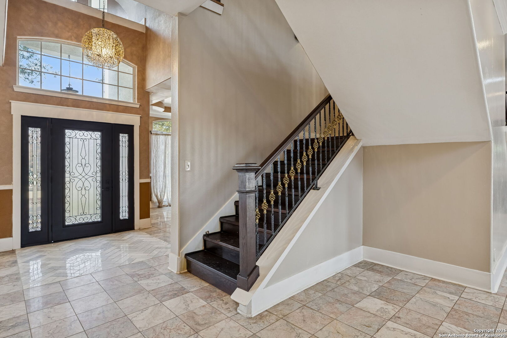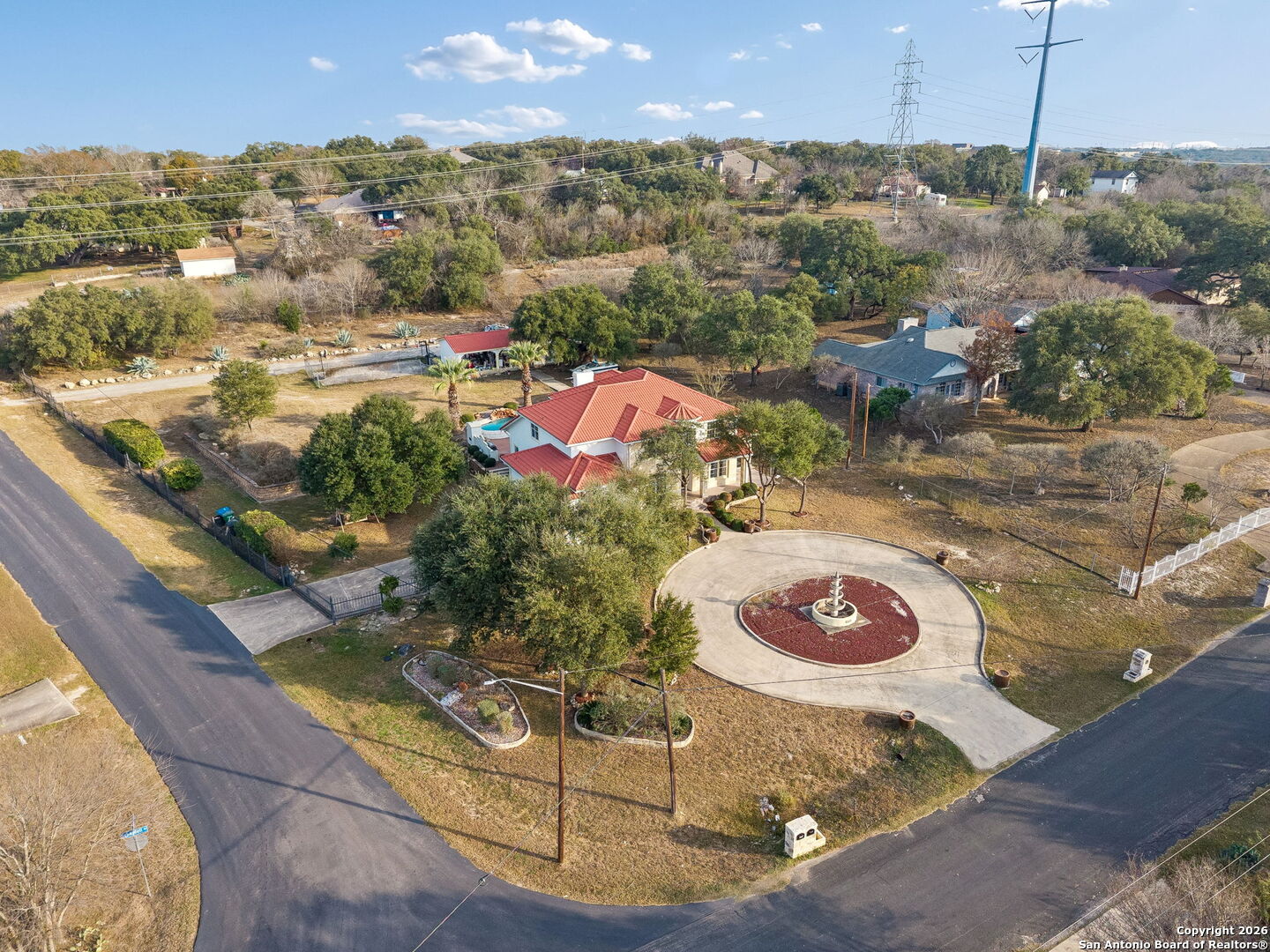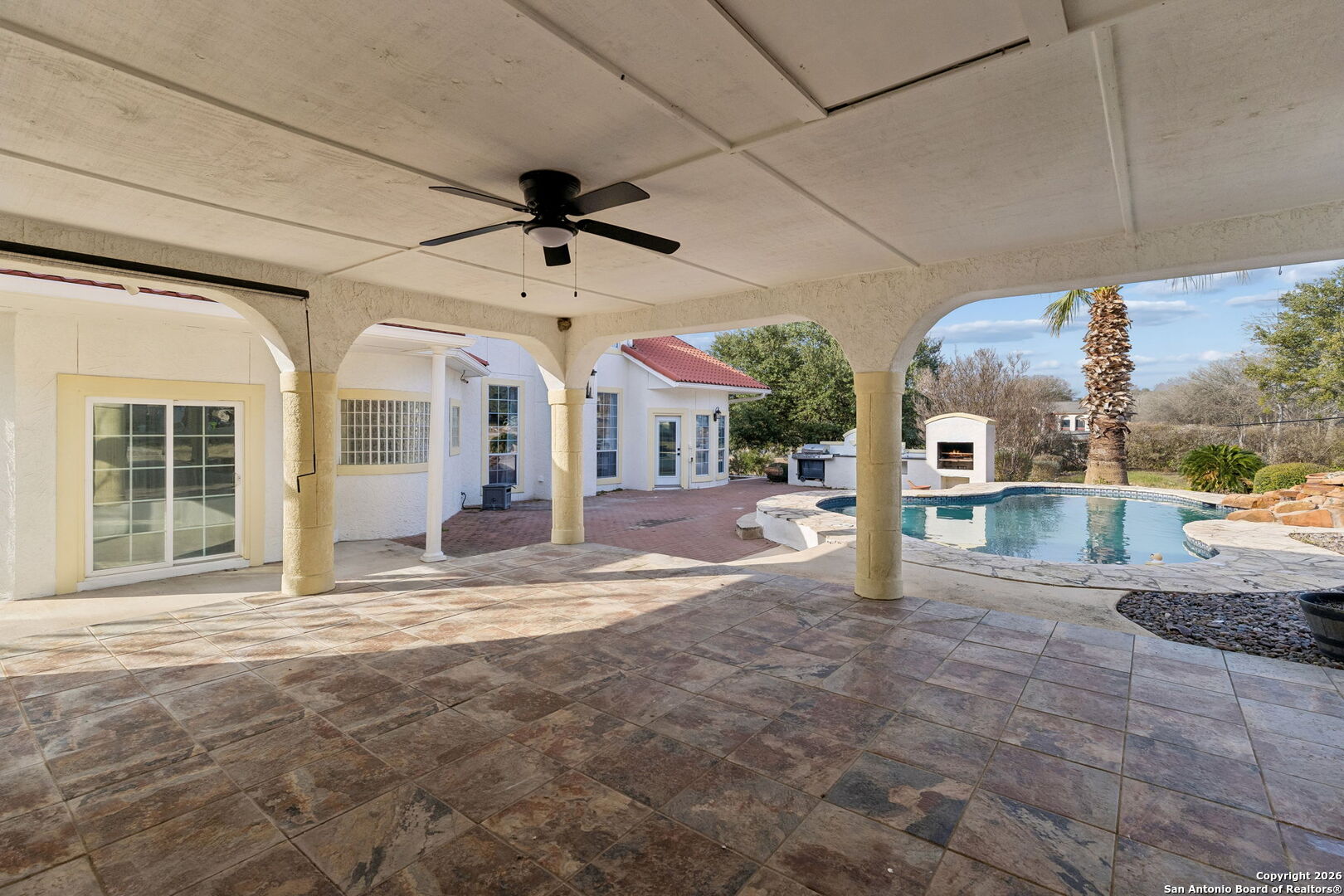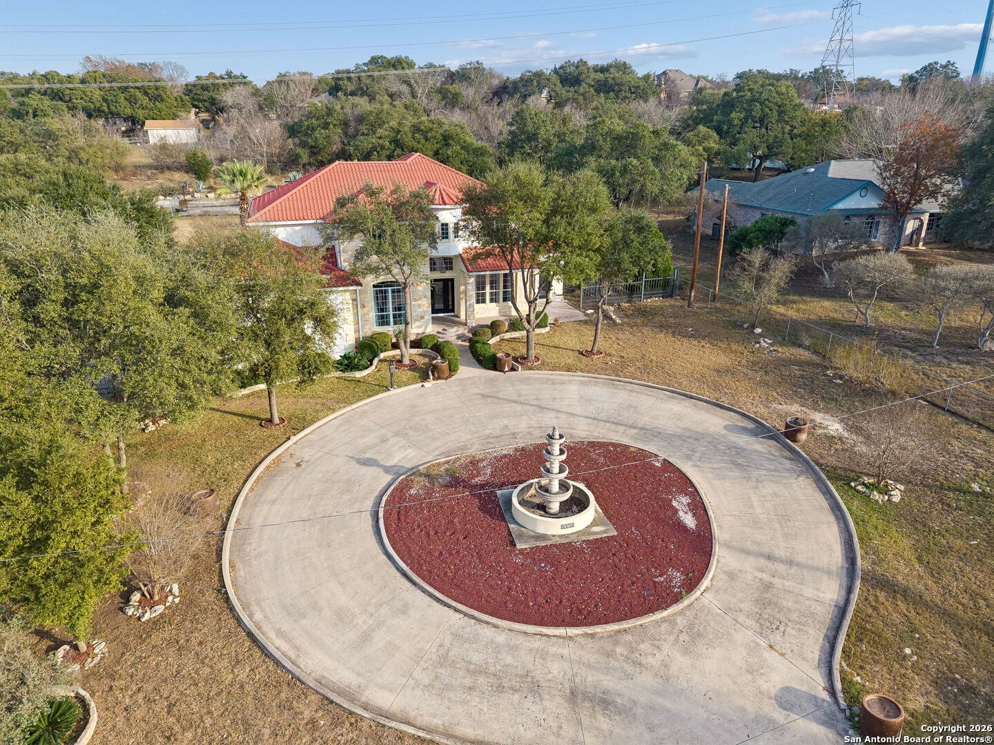 Welcome to 3438 Sunnydell Dr, an elegantly refreshed two-story estate set on a private 1.20-acre corner lot with a circular driveway and multiple points of entry. This exceptional property offers a peaceful, country-like atmosphere while remaining conveniently located within the city, with no HOA and easy access to Loop 1604 and Highway 151. The home has been thoughtfully updated with fresh interior and exterior paint, all new lighting, ceiling fans, faucets, toilets, shower fixtures, door hardware, baseboards, and a striking iron front door. Tall ceilings enhance the open feel, while walk-in closets, a beautiful fireplace, and a wet bar provide both comfort and functionality. The layout includes a private study and a spacious primary suite located on the first floor. A durable metal Spanish-style roof adds architectural character and long-term value. Designed for both everyday living and entertaining, the outdoor space features an underground pool, basketball court, gazebo, and a built-in outdoor kitchen with BBQ and sink, along with an irrigation system, water softener, and mature palm trees that create a resort-style backyard. The property offers five bedrooms total, a two-car garage, and a separate back building that can be used as a guest suite, workshop, or flexible space. Conveniently located near shopping, grocery stores, restaurants, hospitals, and entertainment such as Casa Blanca Theatre and The Shops at Alamo Ranch, this home delivers the rare combination of accessibility and privacy-offering a true country living experience without sacrificing city conveniences. This unique property blends luxury, space, and versatility in a truly rare setting.
