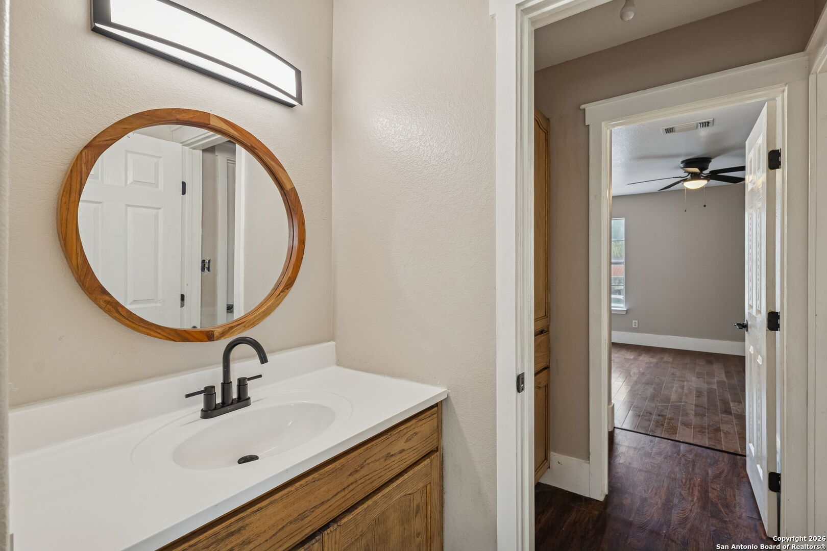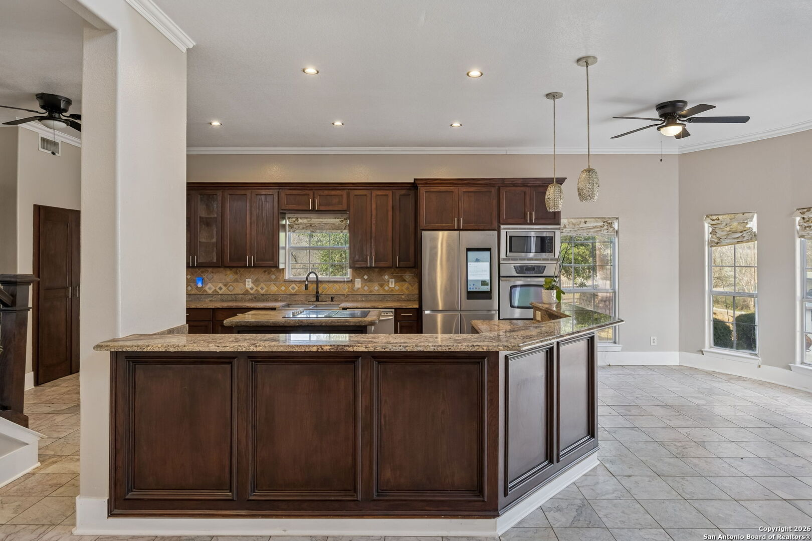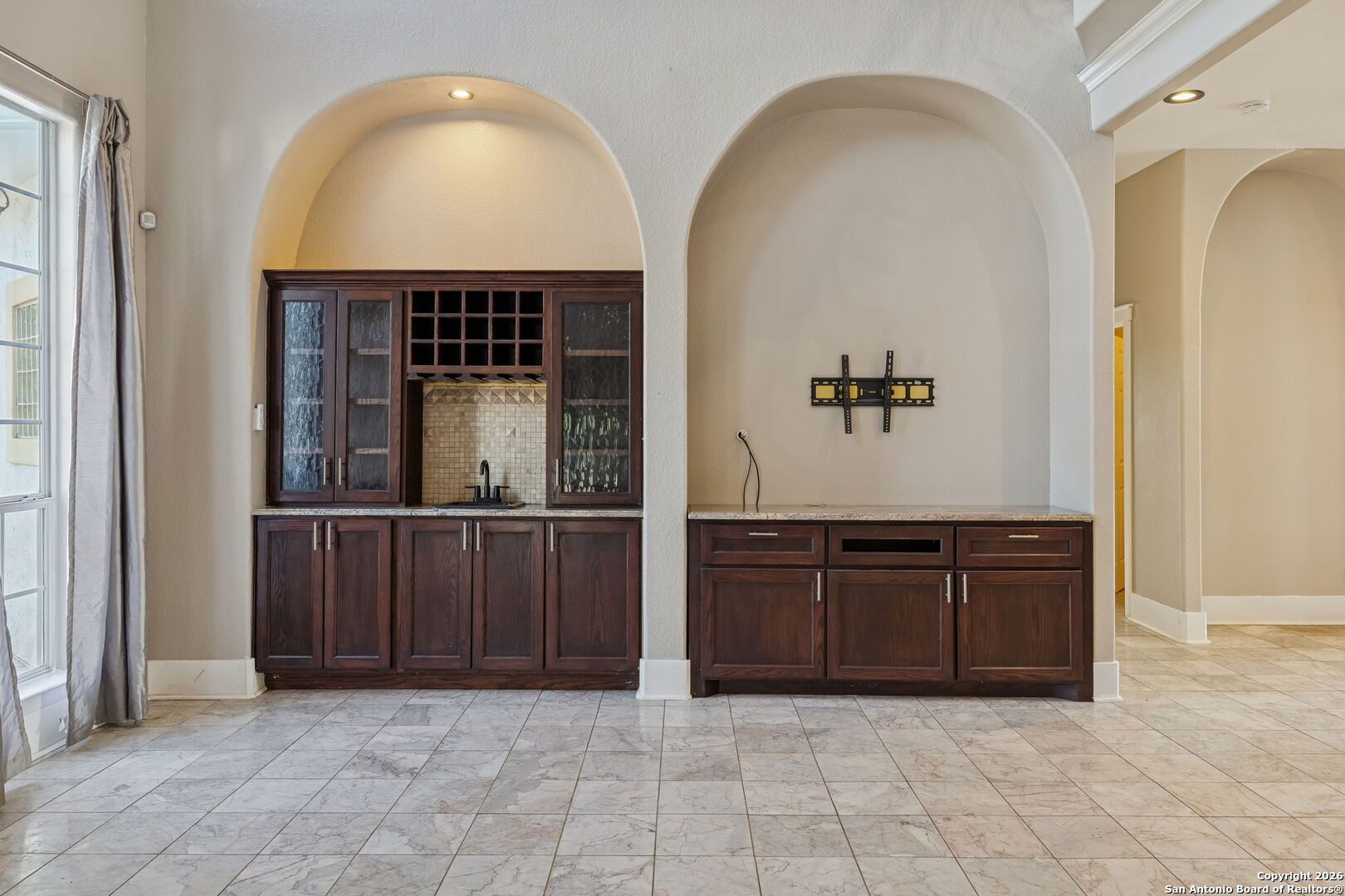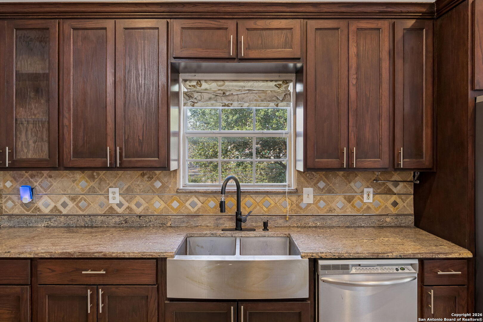 Welcome to 3438 Sunnydell Dr, an elegantly refreshed two-story estate set on a private 1.20-acre corner lot with a circular driveway and multiple points of entry. This exceptional property offers a peaceful, country-like atmosphere while remaining conveniently located within the city, with no HOA and easy access to Loop 1604 and Highway 151. The home has been thoughtfully updated with fresh interior and exterior paint, all new lighting, ceiling fans, faucets, toilets, shower fixtures, door hardware, baseboards, and a striking iron front door. Tall ceilings enhance the open feel, while walk-in closets, a beautiful fireplace, and a wet bar provide both comfort and functionality. The layout includes a private study and a spacious primary suite located on the first floor. A durable metal Spanish-style roof adds architectural character and long-term value. Designed for both everyday living and entertaining, the outdoor space features an underground pool, basketball court, gazebo, and a built-in outdoor kitchen with BBQ and sink, along with an irrigation system, water softener, and mature palm trees that create a resort-style backyard. The property offers five bedrooms total, a two-car garage, and a separate back building that can be used as a guest suite, workshop, or flexible space. Conveniently located near shopping, grocery stores, restaurants, hospitals, and entertainment such as Casa Blanca Theatre and The Shops at Alamo Ranch, this home delivers the rare combination of accessibility and privacy-offering a true country living experience without sacrificing city conveniences. This unique property blends luxury, space, and versatility in a truly rare setting.