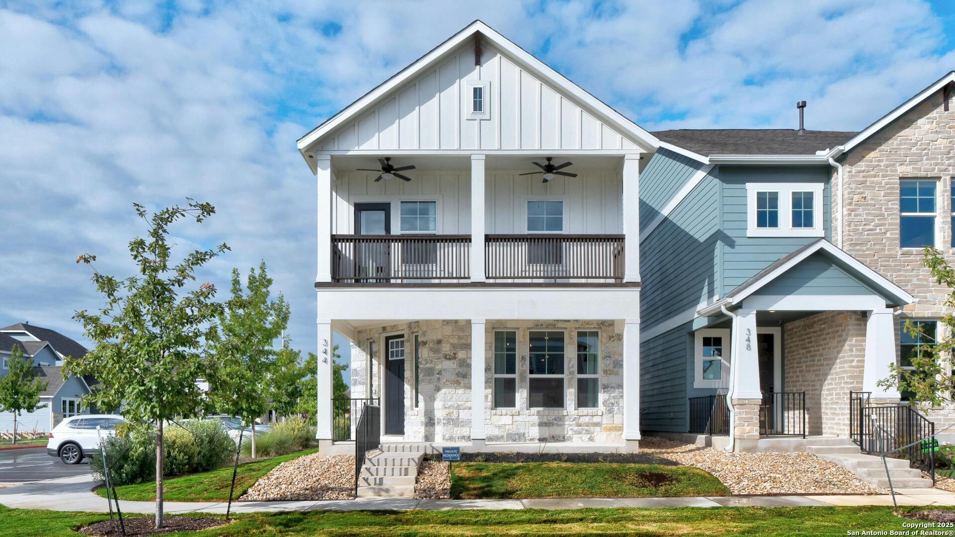 **ASSUMABLE VA LOAN AT 4.25%** Like NEW, but better and so many upgrades in The Retreat at Hero Way! Beautiful inside and out, this 3-bed/2.5 bath charmer with 2-car detached garage shows like a model and features a rare full lower porch/upper balcony elevation that displays itself elegantly on a corner lot. Inside you'll find a welcoming floorplan bathed in an abundance of natural light and a host of tasteful appointments. In addition to an exhaustive list of builder upgrades, aftermarket features include: soft water system, backyard landscape and irrigation, whole home security system, custom lighting, custom cabinet hardware, and refrigerator/washer/dryer! The Retreat at Hero Way is a quaint 83-unit gated community with park, playground and walking trails. Located in the acclaimed Leander ISD and quick access to both US183A and Leander Station for a convenient commute. Pictures do not do this one justice, it is truly a MUST SEE! Welcome Home!