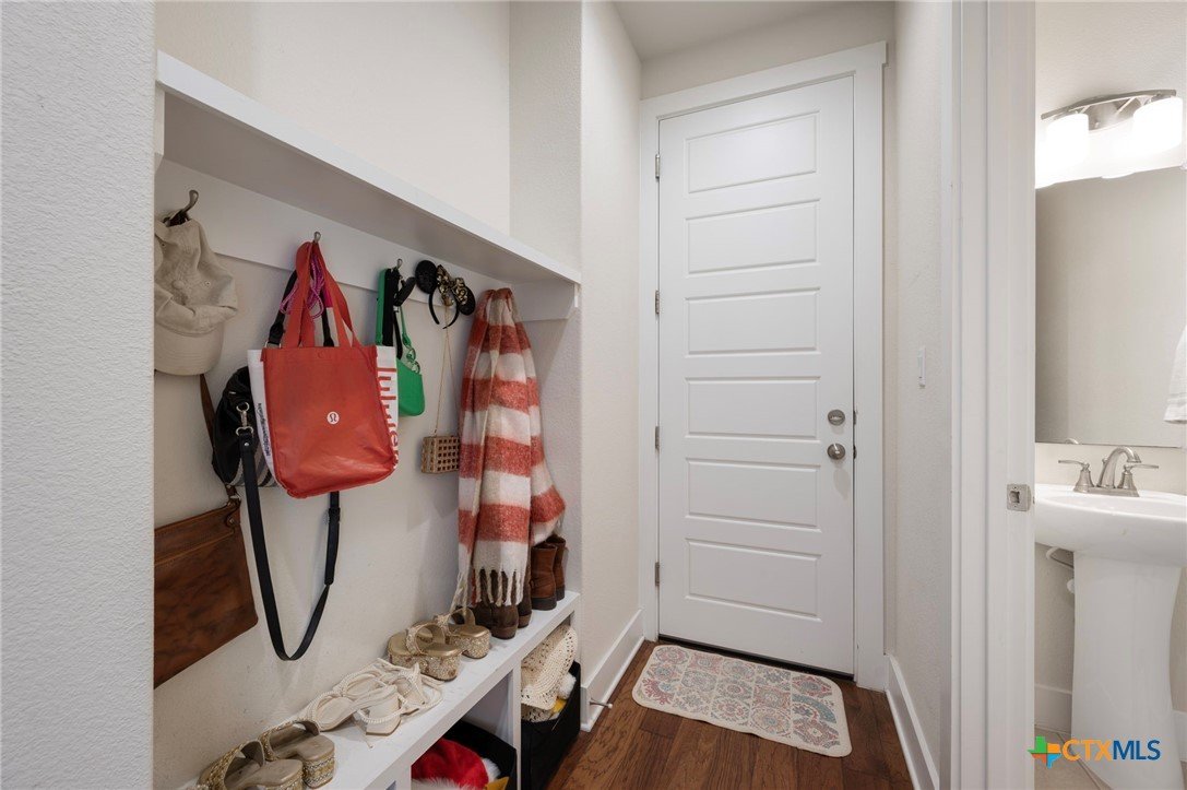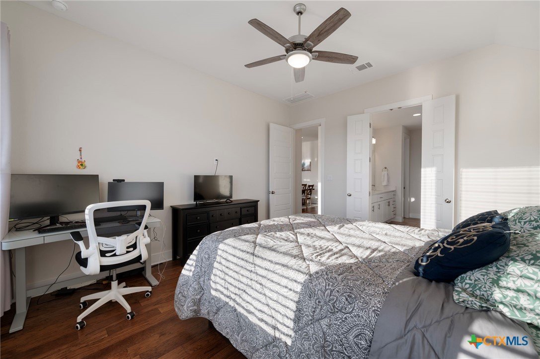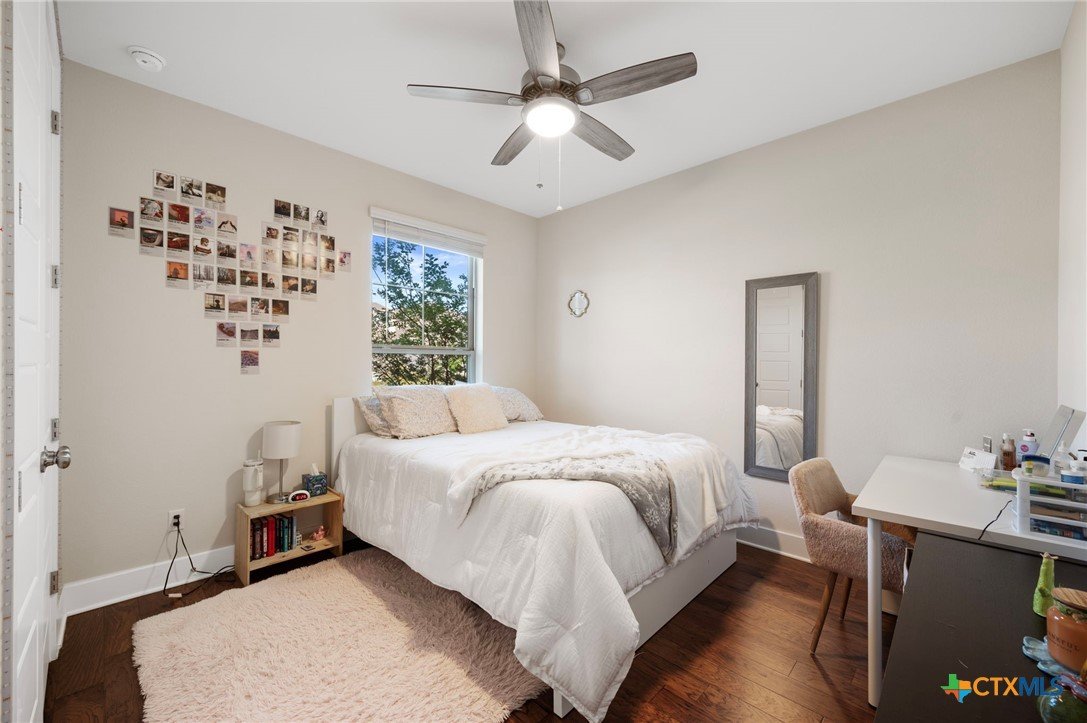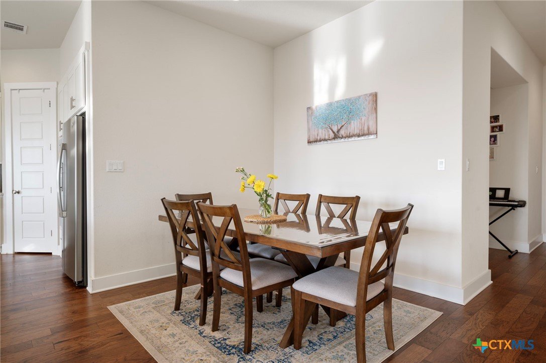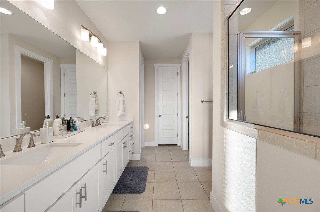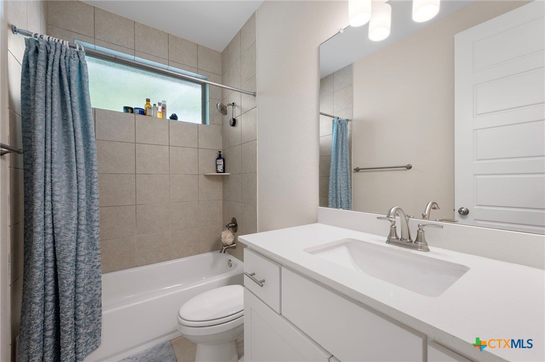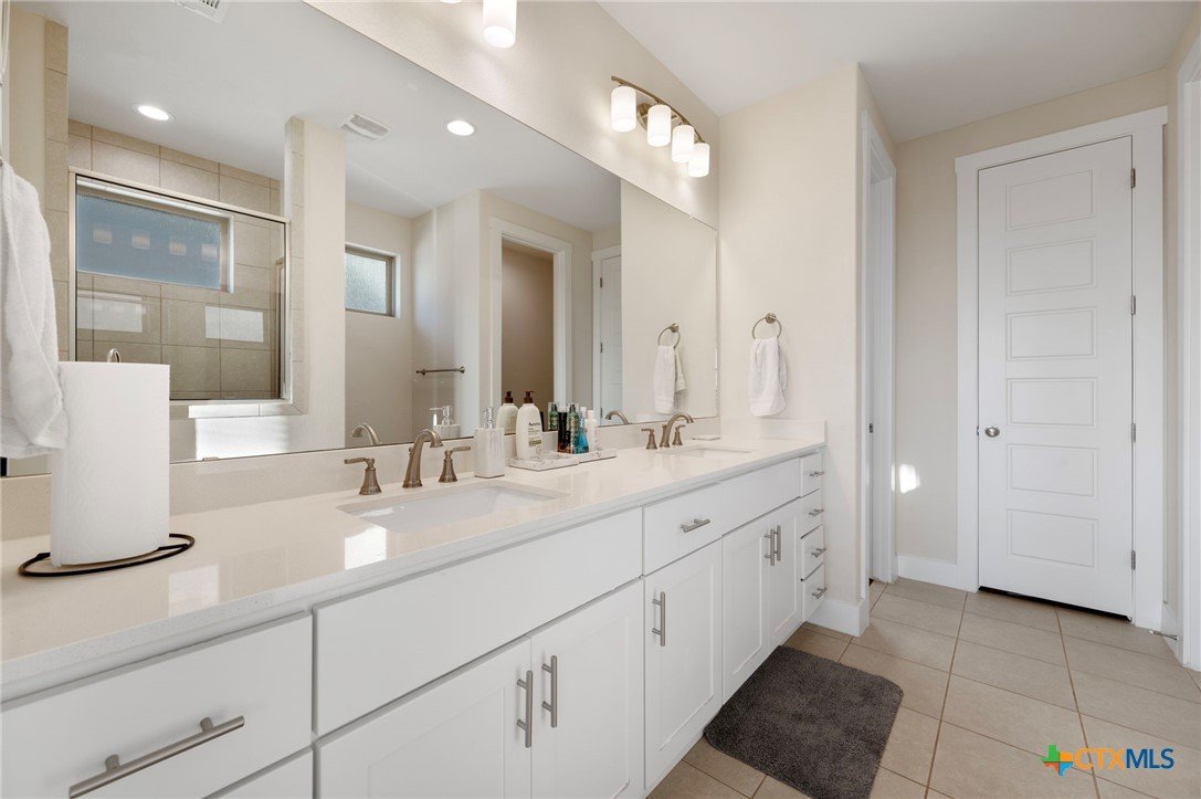 This beautifully maintained single-story home features 3 bedrooms, 2.5 baths, and a dedicated office, all set against a stunning backdrop of Hill Country and sunset views. An open floor plan with soaring ceilings and large windows fills the home with natural light, creating an inviting and airy atmosphere throughout. The gourmet kitchen boasts upgraded white cabinetry, sleek quartz countertops, and flows seamlessly into the living and breakfast areas, where you can enjoy breathtaking views from nearly every angle. Gorgeous wood flooring extends through the entire home, including all bedrooms and closets, adding warmth and elegance. The spacious primary suite offers a serene retreat, while the additional bedrooms and office provide flexibility and comfort. Step outside to a large backyard with no rear neighbors and take in the unobstructed views or explore the nearby scenic walking trails. Additional highlights include a 2.5-car garage with metallic epoxy flooring, a whole-house water softener and reverse osmosis system, and a separate, roomy laundry area. This home is a rare find combining privacy, upgrades, and natural beauty in a highly desirable community.