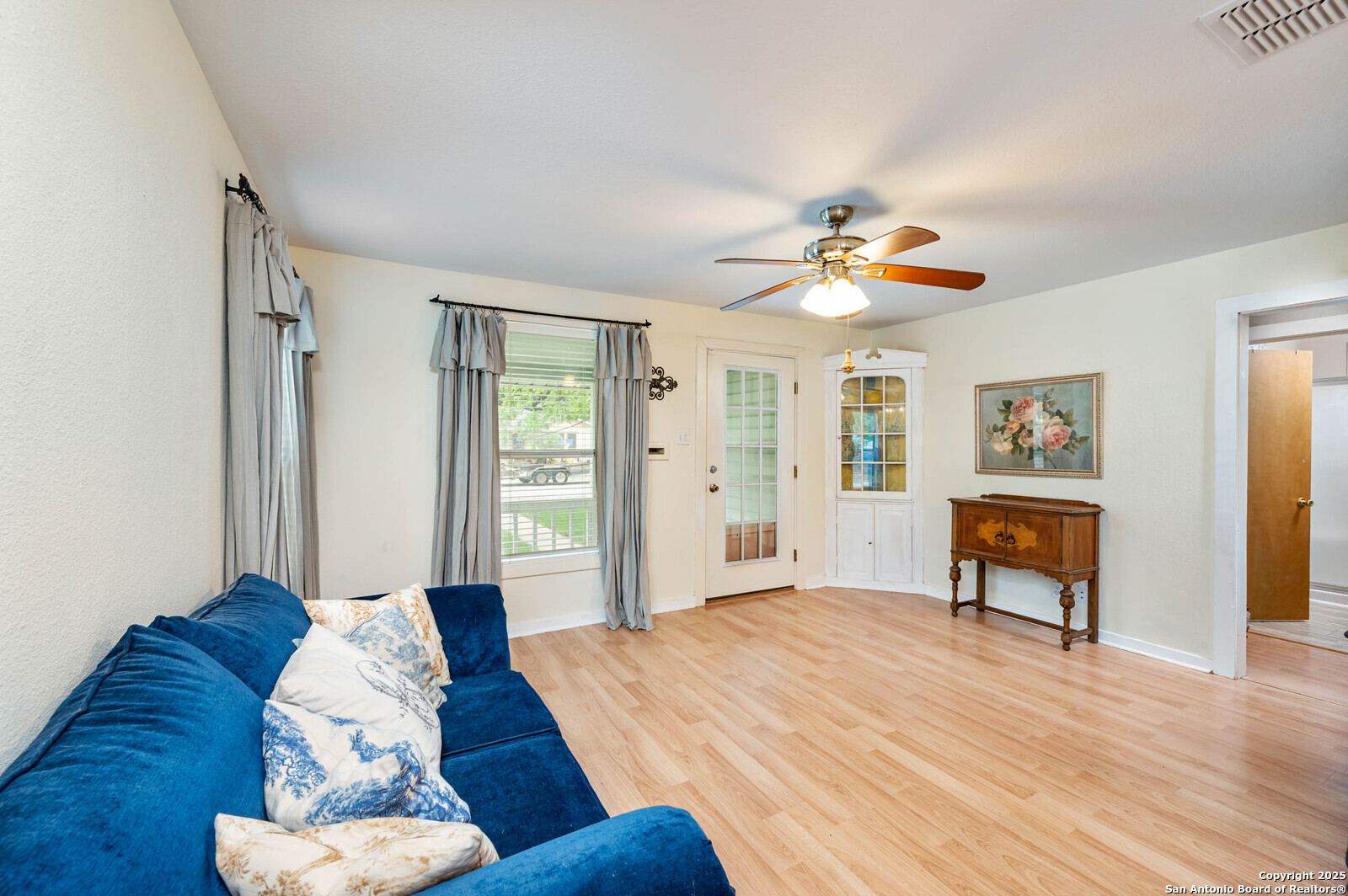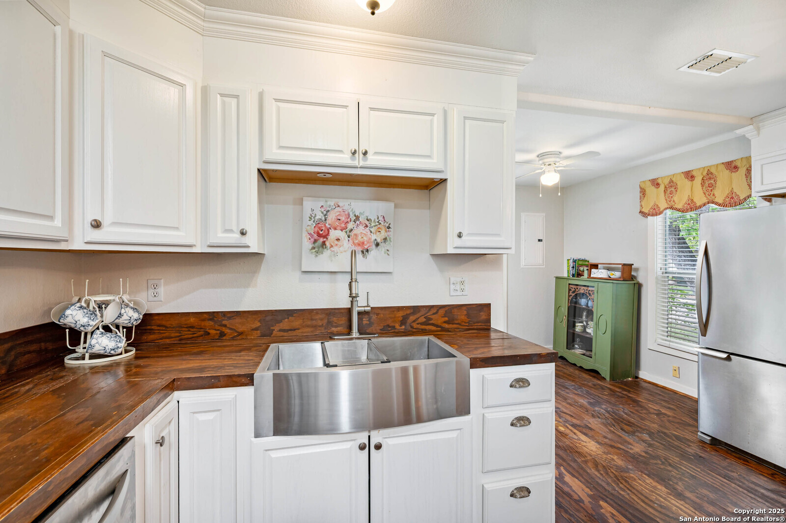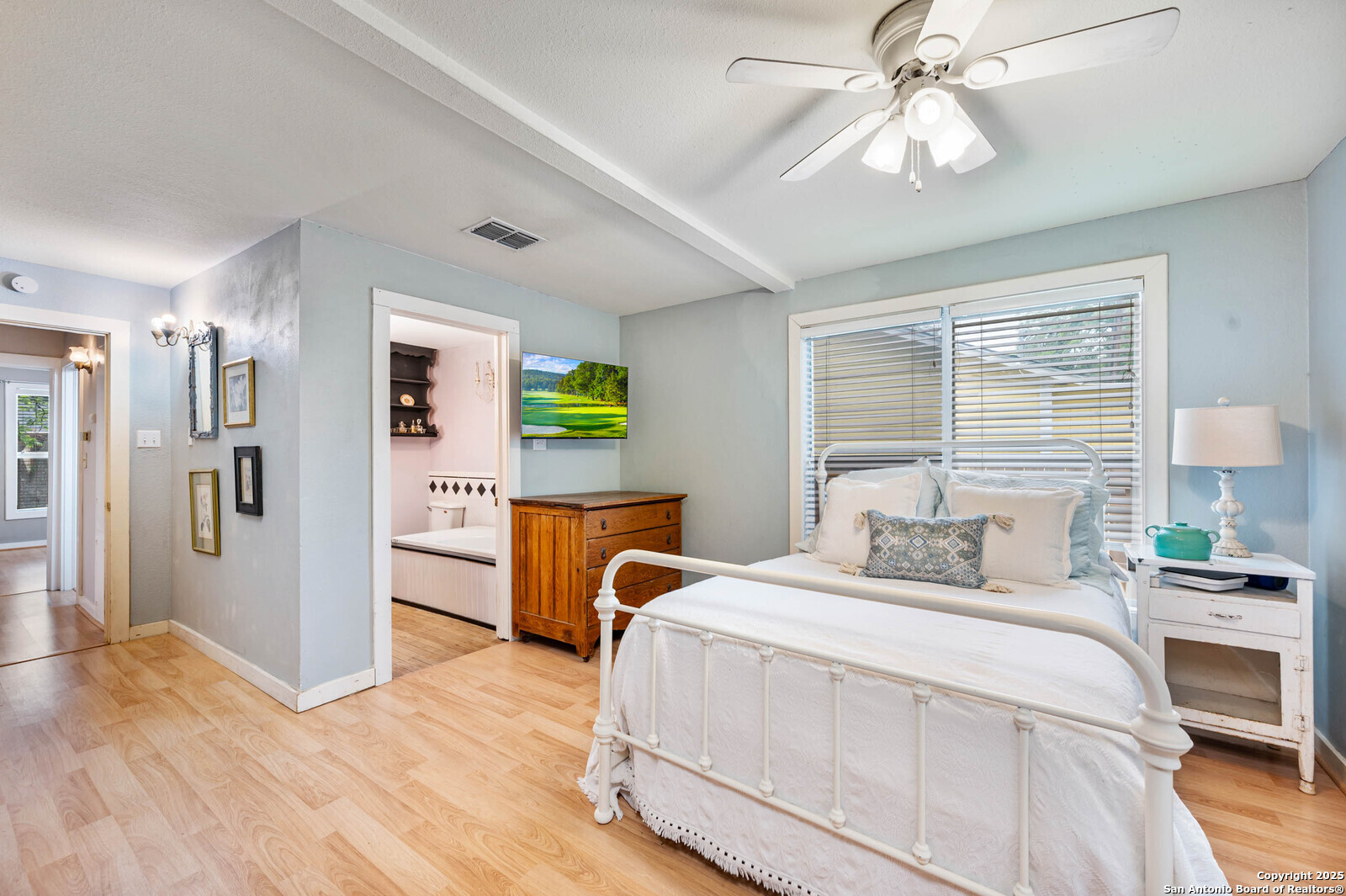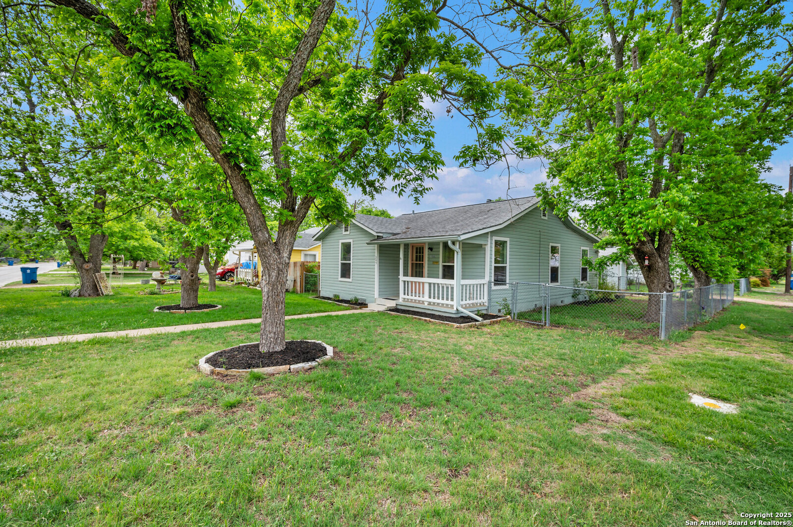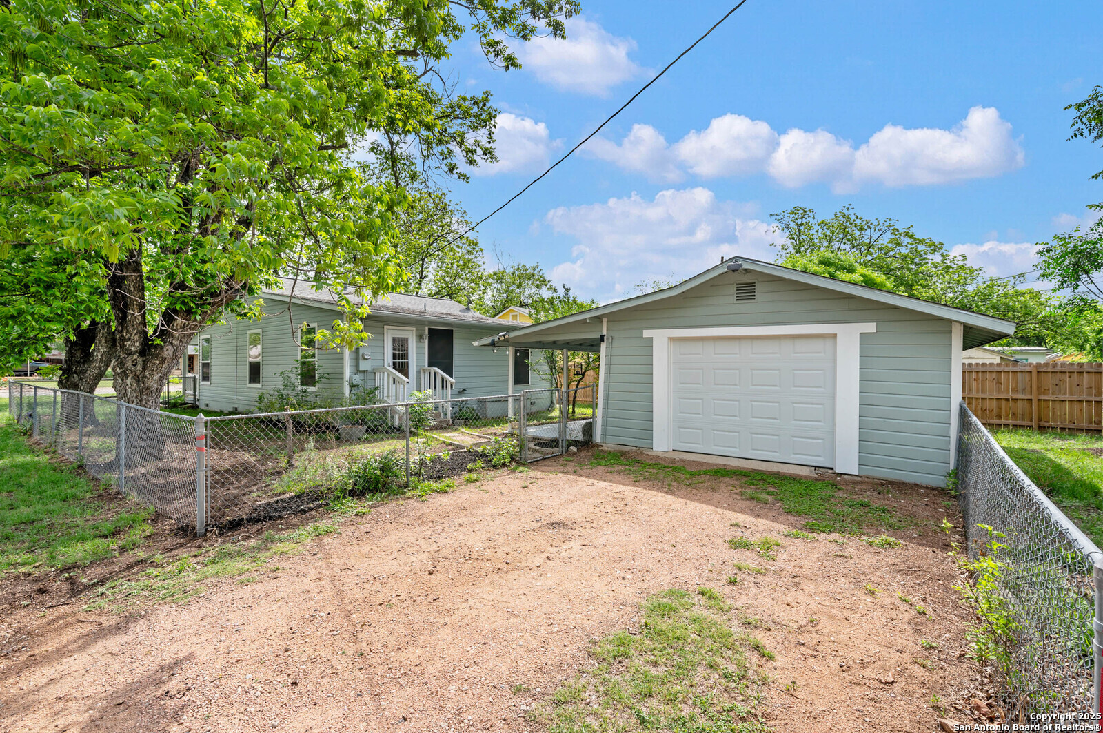 This beautifully updated two-bedroom, two-bath cottage in Kerrville offers charm, comfort, and convenience. Inside, you'll find a thoughtfully upgraded kitchen featuring a farmhouse-style sink, modern countertops, and stainless steel appliances, plus a luxurious soaking tub in the primary bath. Situated on an oversized corner lot with pecan and peach trees, a fully fenced backyard, and a detached garage, this home is ideal for relaxing or entertaining. Washer, dryer, and refrigerator can convey! Enjoy peaceful country living just minutes from Kerrville's vibrant shops, restaurants, parks, and scenic river access-making this cottage the perfect blend of tranquility and lifestyle.**Multiple offers received-submit best and final offer by Monday 05/05 3pm.