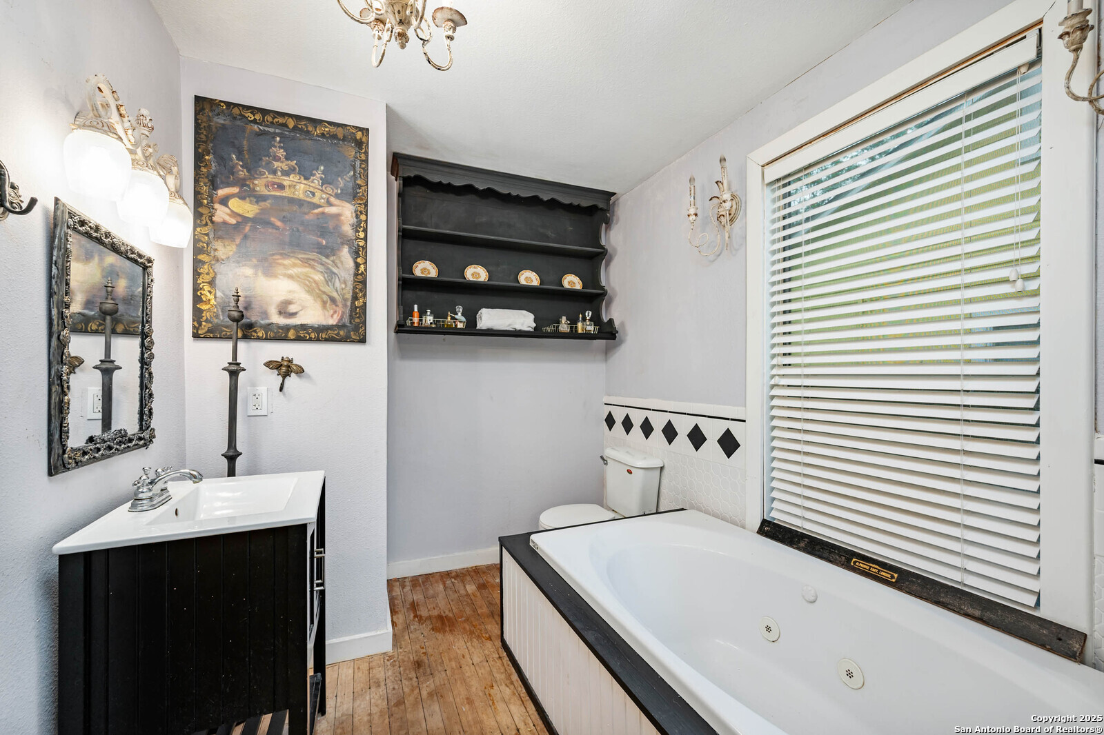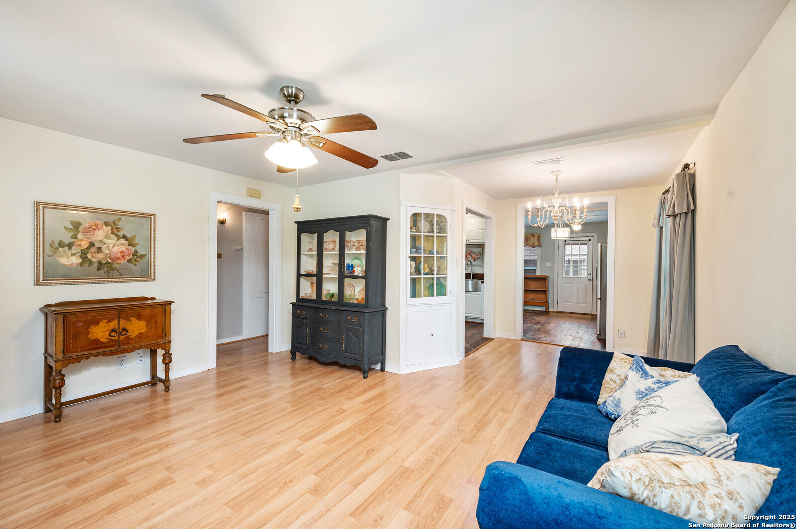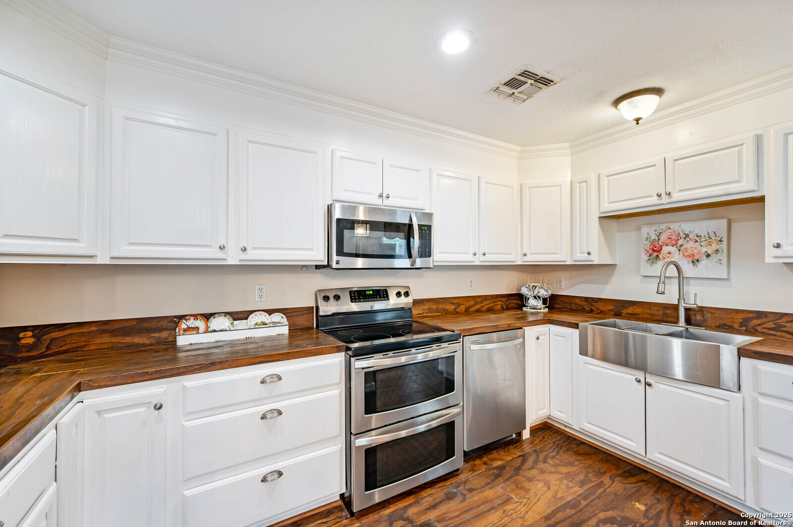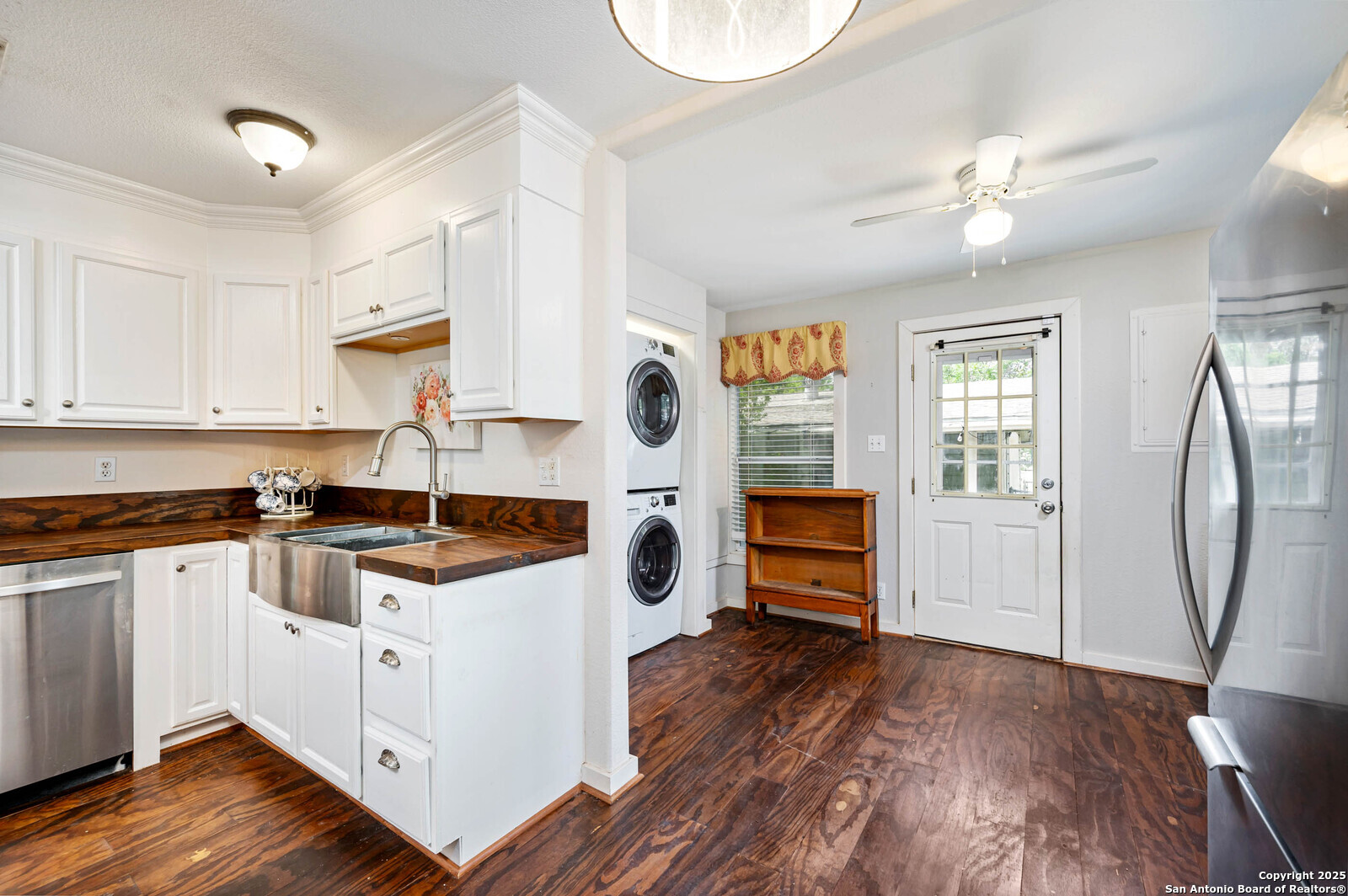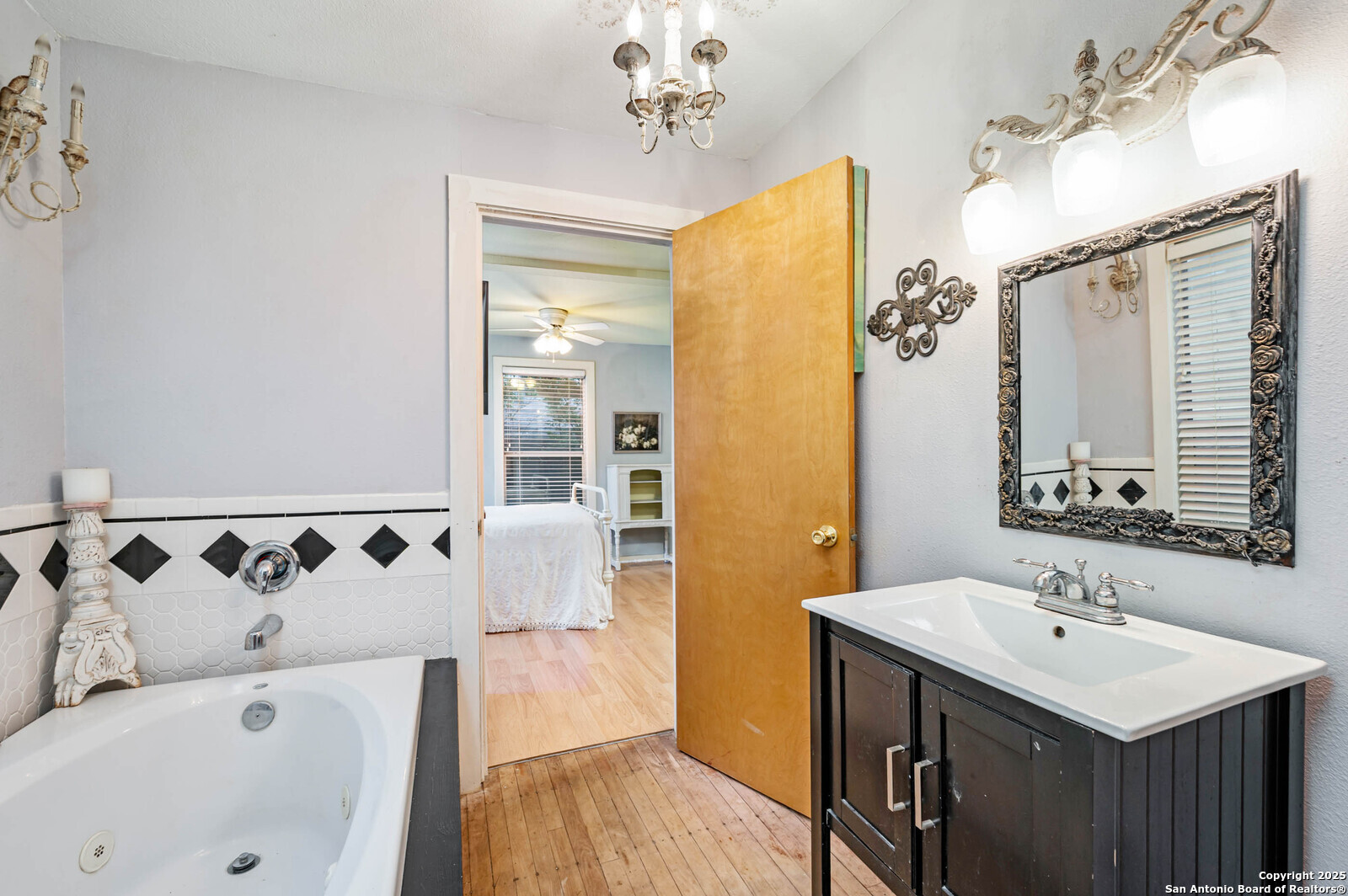 This beautifully updated two-bedroom, two-bath cottage in Kerrville offers charm, comfort, and convenience. Inside, you'll find a thoughtfully upgraded kitchen featuring a farmhouse-style sink, modern countertops, and stainless steel appliances, plus a luxurious soaking tub in the primary bath. Situated on an oversized corner lot with pecan and peach trees, a fully fenced backyard, and a detached garage, this home is ideal for relaxing or entertaining. Washer, dryer, and refrigerator can convey! Enjoy peaceful country living just minutes from Kerrville's vibrant shops, restaurants, parks, and scenic river access-making this cottage the perfect blend of tranquility and lifestyle.**Multiple offers received-submit best and final offer by Monday 05/05 3pm.