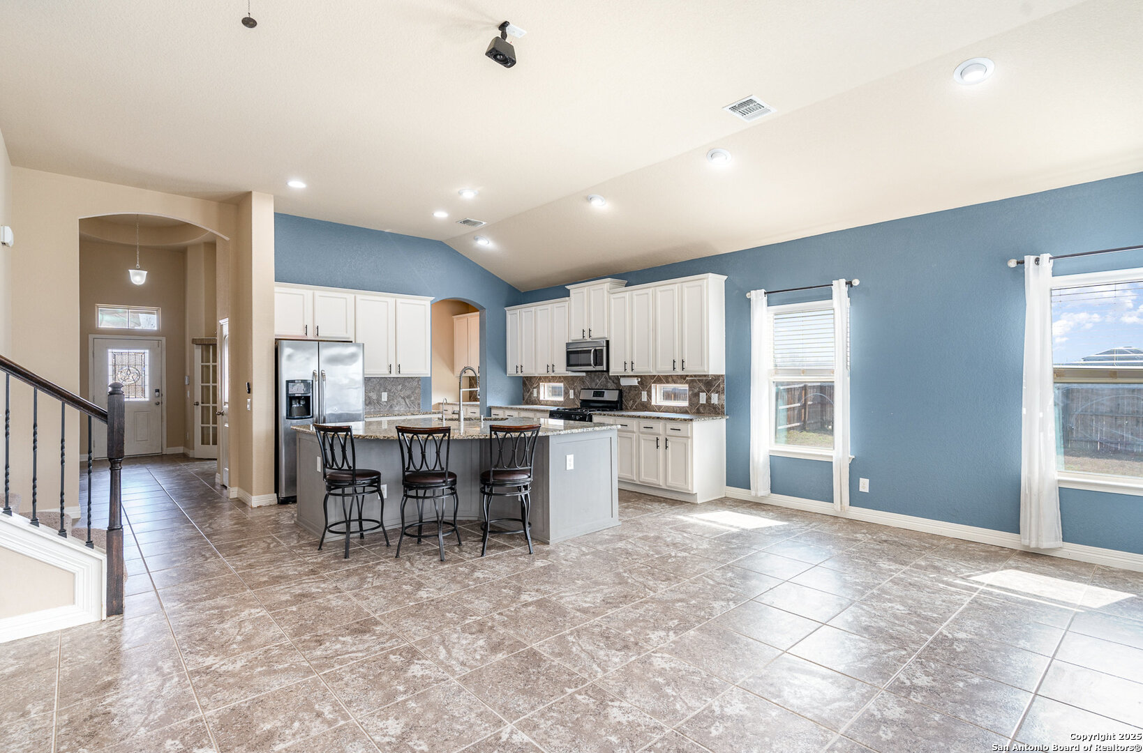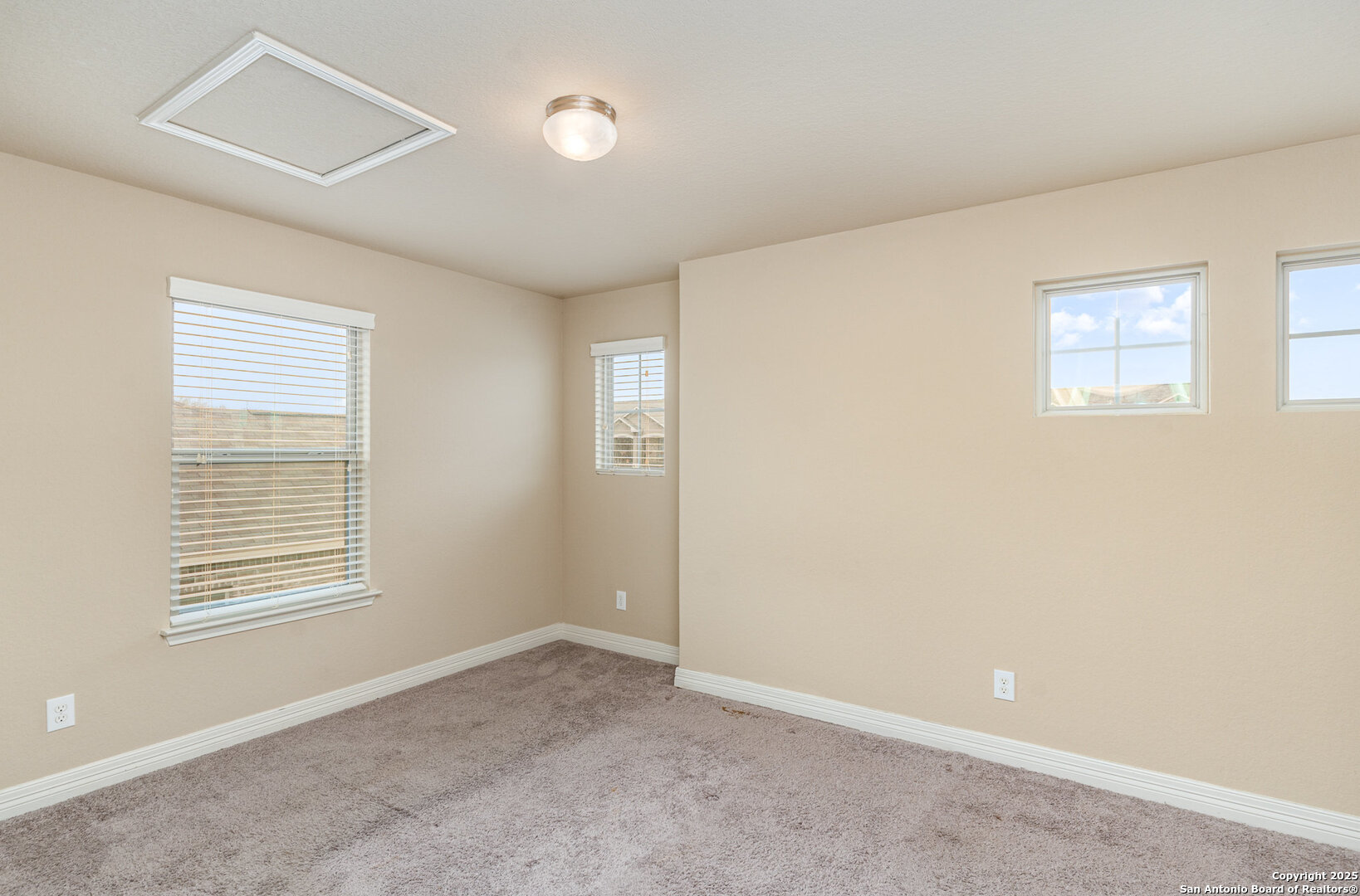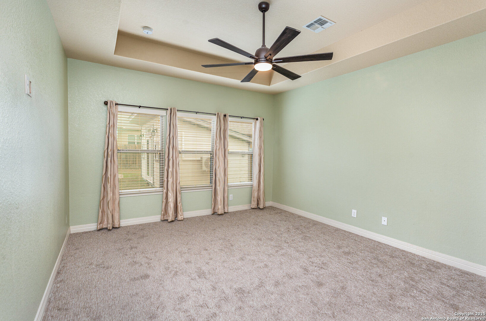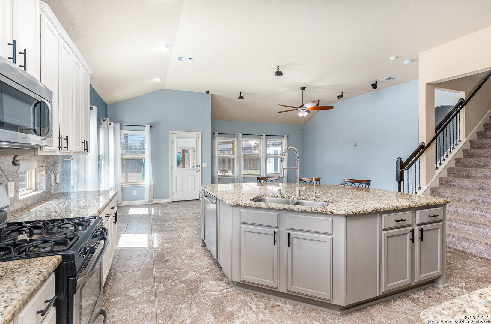 CORNER LOT WITH airconditioned SHE-SHED/outdoor office space on an ENORMOUS BACKYARD! This stunning 1.5-story home nestled in the charming community of Mockingbird Heights in New Braunfels, just a short drive from San Antonio. This home combines modern comfort with timeless appeal, designed to blend seamlessly into its tranquil surroundings while offering an open, inviting atmosphere inside. As you approach, the home exudes warmth and character, featuring a welcoming front porch invites you to relax and enjoy the neighborhood's peaceful vibe. The house sits on a spacious corner lot, allowing for abundant natural light and plenty of room for outdoor activities. Upon entering, you're greeted by a spacious, open-concept living area with soaring ceilings that enhance the sense of airiness. The large open living area is the heart of the home, perfect for both intimate family gatherings and larger social events. The kitchen is a masterpiece, truly the showstopper of this home. Massive in size, it features expansive granite counter tops. A large central island serves as both a workspace and a gathering spot, ideal for cooking, entertaining, or casual meals. Whether you're hosting friends or simply preparing a quiet dinner, the kitchen makes every culinary endeavor a delight. Adjacent to the kitchen is a breakfast/dining area, with ample space for a large table, and panoramic windows that flood the space with natural light. The flow from the kitchen to the living room and dining area creates an inviting open-plan layout, perfect for both daily living and entertaining. On the main floor, you'll also find the spacious master suite, offering a serene retreat at the end of the day. The room is generously sized, with large windows looking out onto the backyard and allowing for plenty of natural light. The en-suite bathroom features a spa-like atmosphere, complete with dual vanities, a soaking tub, a separate walk-in shower, and a walk-in closet that's as large as a room itself. The other bedrooms are conveniently located away from the master for additional privacy. Upstairs, you'll find the guest bedroom and bathroom, perfect for hosting visitors or creating a private space for family members with a sitting area. The bedroom is cozy yet spacious, with large windows offering views of the surrounding area. One of the unique features of this home is the charming she-shed tucked away in the backyard. Located on the corner lot, the she-shed is a perfect sanctuary for hobbies, creative projects, or a peaceful reading nook. With its own electricity, it can be transformed into whatever you desire-a craft room, home office, or private retreat. It offers a sense of tranquility and seclusion, yet is still conveniently close to the house. The backyard is an extension of the home's beauty and function. A covered patio provides the perfect space for outdoor dining and relaxation, while the large lawn offers plenty of room for outdoor activities. Whether you're enjoying a quiet morning coffee, hosting a barbecue, or simply relaxing under the Texas sky, this backyard serves as a private oasis. Other added features include: finished air conditioned garage with plenty of shelving, water softener with reverse osmosis, and solar panels, and new carpet. Make your appointment today to make this house a place you call home!