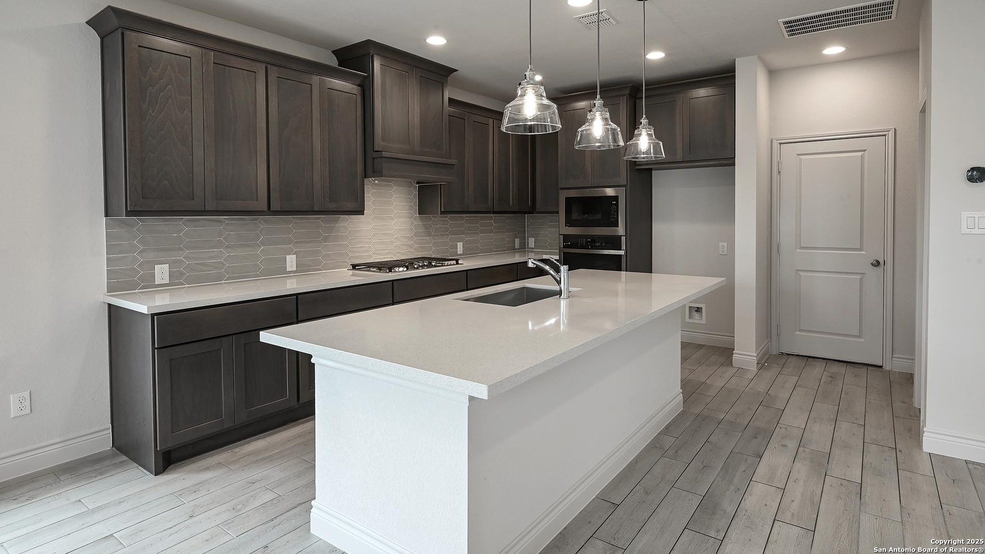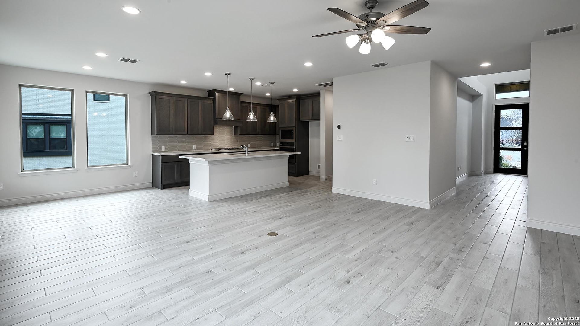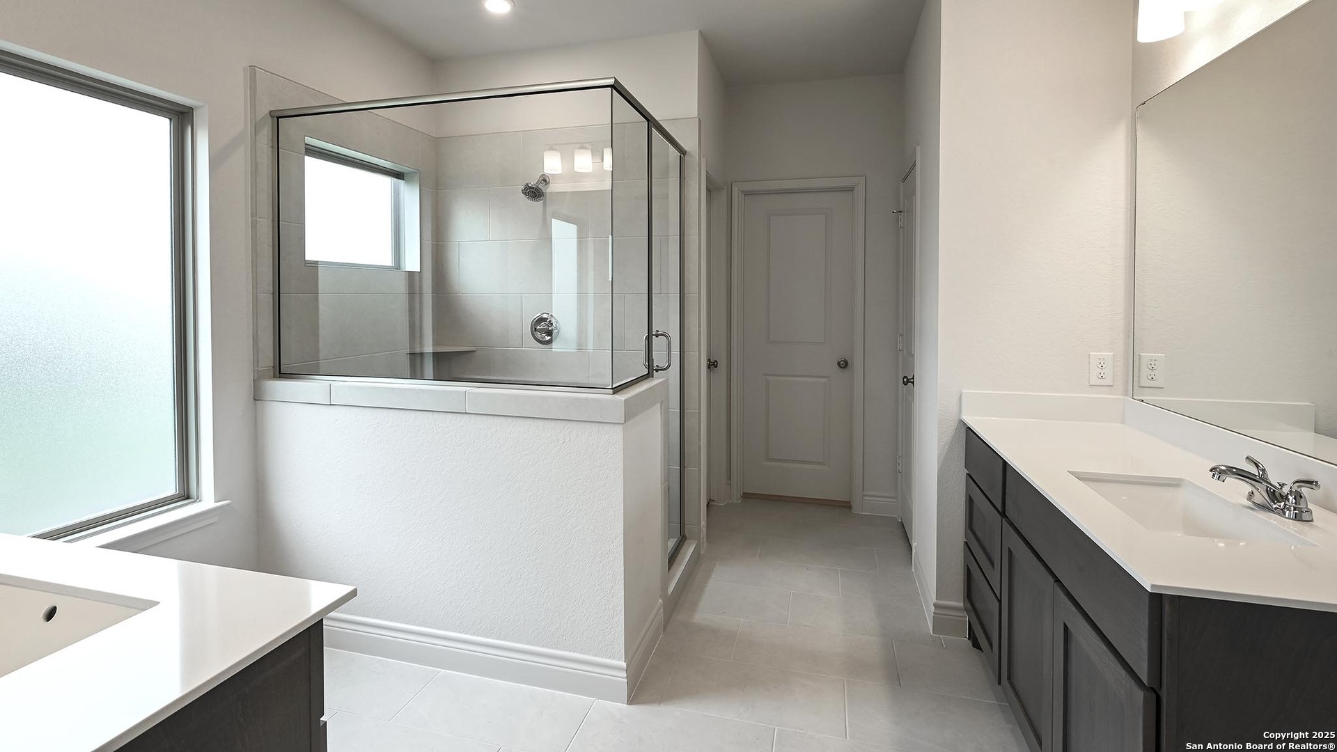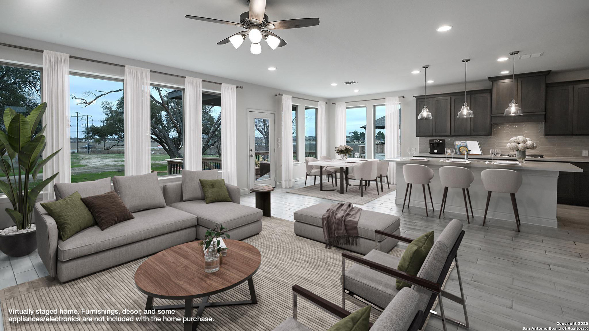 MOVE IN READY! Two-story entry leads to open family room, dining area and kitchen. Family room features wall of windows. Kitchen features large corner walk-in pantry and generous island with built-in seating space. A half bath and walk-in closet complete downstairs. Second-floor primary suite. Double doors lead to primary bath with dual vanities, separate glass-enclosed shower and two walk-in closets. Two secondary bedrooms and a full bath complete upstairs. Abundant closet space and natural light throughout. Covered backyard patio. Two-car garage.