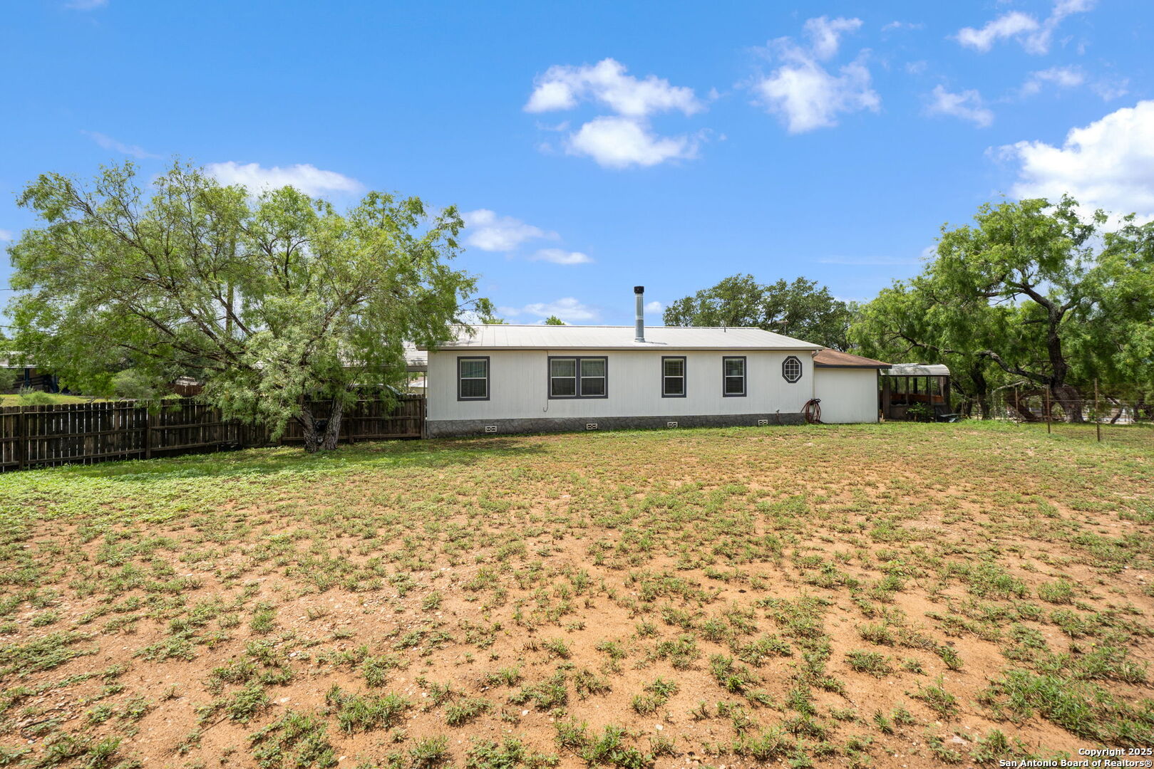 Explore this well-maintained double wide house in the Creek Wood community, part of the Medina Valley Independent School District (MVISD). Open Floor Plan: The living room, dining area, and kitchen are seamlessly connected, perfect for entertaining. This house offers three spacious bedrooms and two bathrooms. The updated primary bathroom adds a modern touch. The house sits on nearly an acre with mature trees, the property includes a screened-in porch for insect-free outdoor enjoyment. A greenhouse situated in the back yard is ideal for gardening enthusiasts. Make this charming property your own!