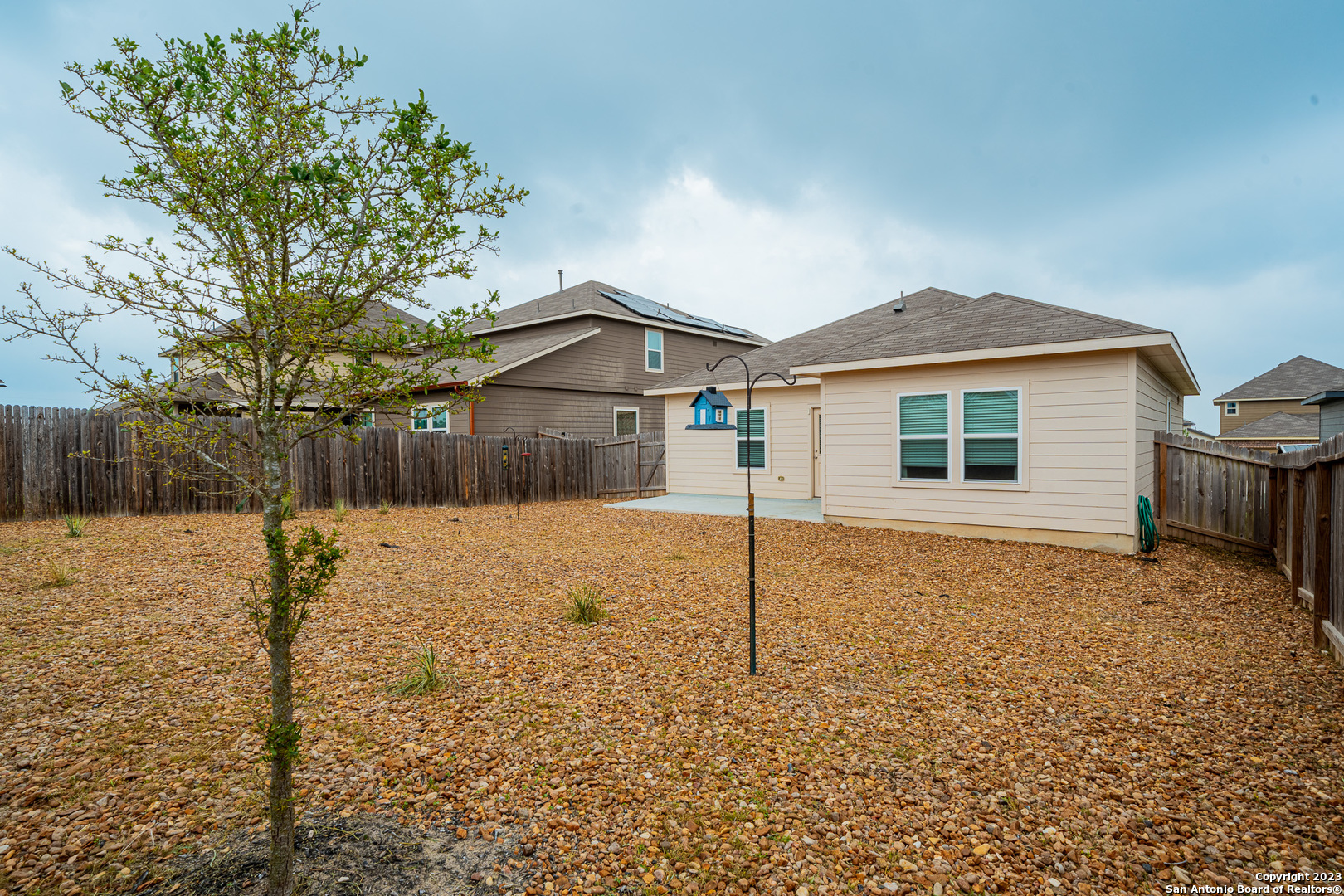 This is a charming and spacious home located in a quiet and friendly neighborhood. The property features 3 bedrooms, 2 bathrooms, a large living area, and a fully equipped kitchen with modern appliances. The house also boasts a full rear fenced backyard perfect for enjoying outdoor gatherings with friends and loved ones. Home includes a two a half car garage, great for a workshop or extra storage and a laundry room equipped with a washer and dryer. Located in the popular Hunters Ranch community, the property is conveniently situated near several shopping centers, restaurants, and entertainment venues. It is also in close proximity to the Lackland Air Force Base, and Medina Air Force Base and major highways, making commuting to downtown San Antonio a breeze.