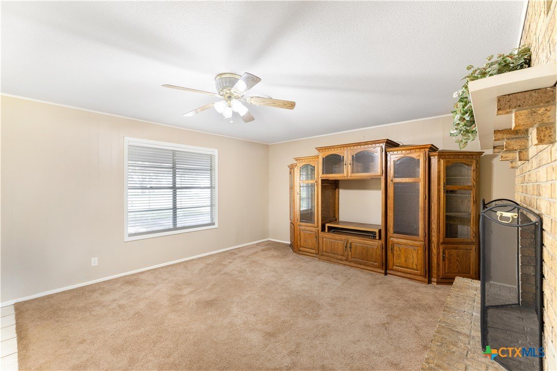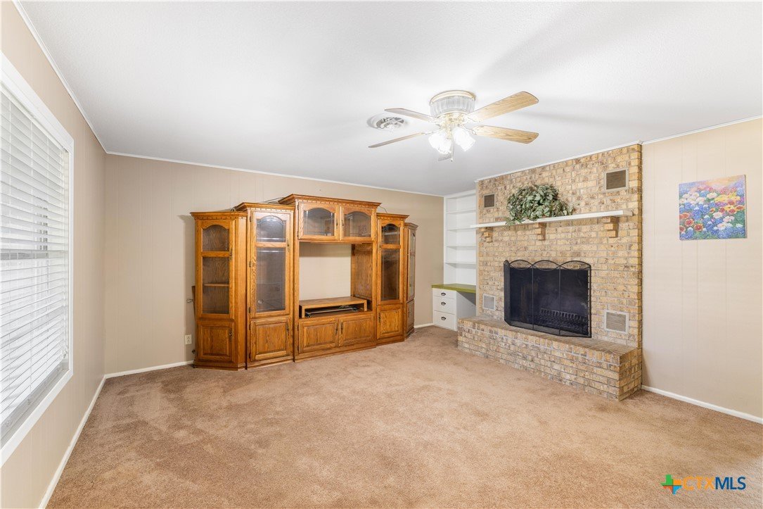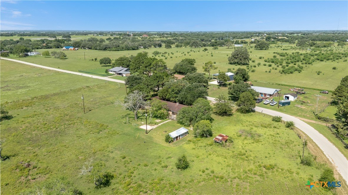 Country Living on Nearly 5 Acres! Welcome to 347 Green Acres Road, a spacious 4 bedroom, 3 bath brick home on 4.97 peaceful acres just outside the Yorktown city limits. This one-story ranch-style home offers over 2,100 square feet of living space and is surrounded by mature shade trees, open views, and room to grow. The interior features a large living area with a wood-burning fireplace and built-in bookcases, a functional kitchen with a breakfast bar and tile counters, and an open dining area. The home includes multiple storage options, ceiling fans throughout, and a converted garage offering additional flexibility. With perimeter fencing and plenty of space, this property is well-suited for animals, gardening, or FFA/4-H projects. Covered parking includes a garage and multiple carports to protect your vehicles and equipment. Located just minutes from town with no city taxes, this property combines the tranquility of rural living with convenient access to local amenities. Perfect for those looking to create a homestead or simply enjoy more space. Motivated seller – schedule your showing today!
