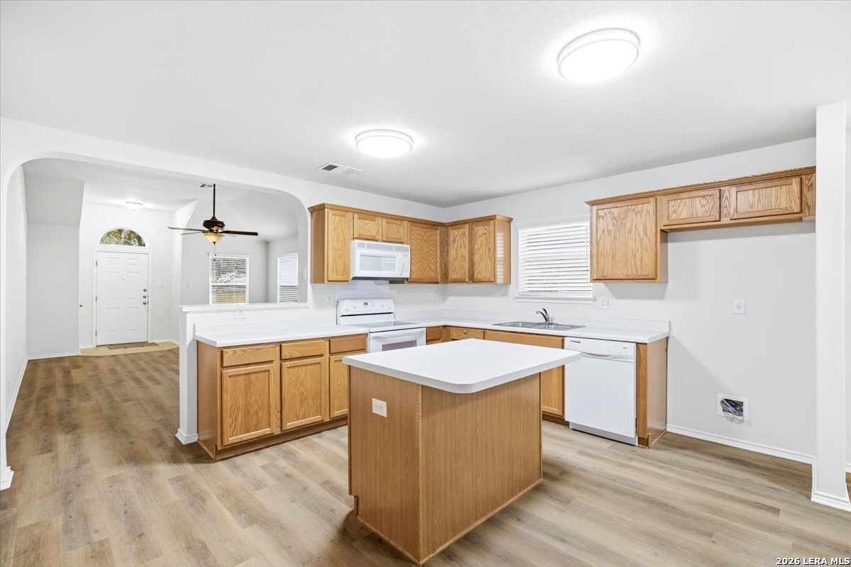 Well-maintained single-story home in the established Quail Valley subdivision, conveniently located in New Braunfels. Built in 2005, this 3-bedroom, 2-bath residence offers 1,535 square feet of functional living space. The main living area flows into the dining space and kitchen, creating a comfortable setting for everyday living. The primary suite features a private bath with a double vanity, tub/shower combo, and walk-in closet, while secondary bedrooms are well-sized and share a full bath. Additional highlights include a programmable thermostat, indoor laundry area, and a 2-car attached garage. The backyard provides a level, usable space with mature trees and room for outdoor enjoyment. Property includes a detached outbuilding with finished interior space. Located in the Comal Independent School District with convenient access to shopping, dining, and major roadways. A solid opportunity in a desirable New Braunfels location.
