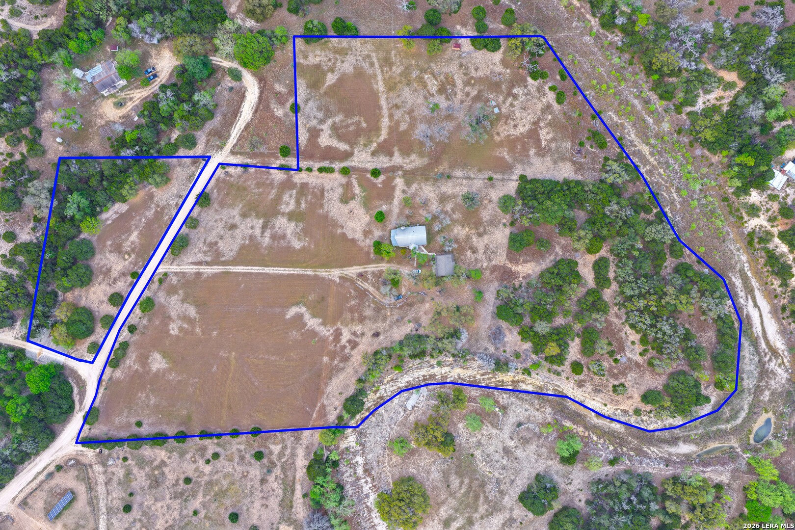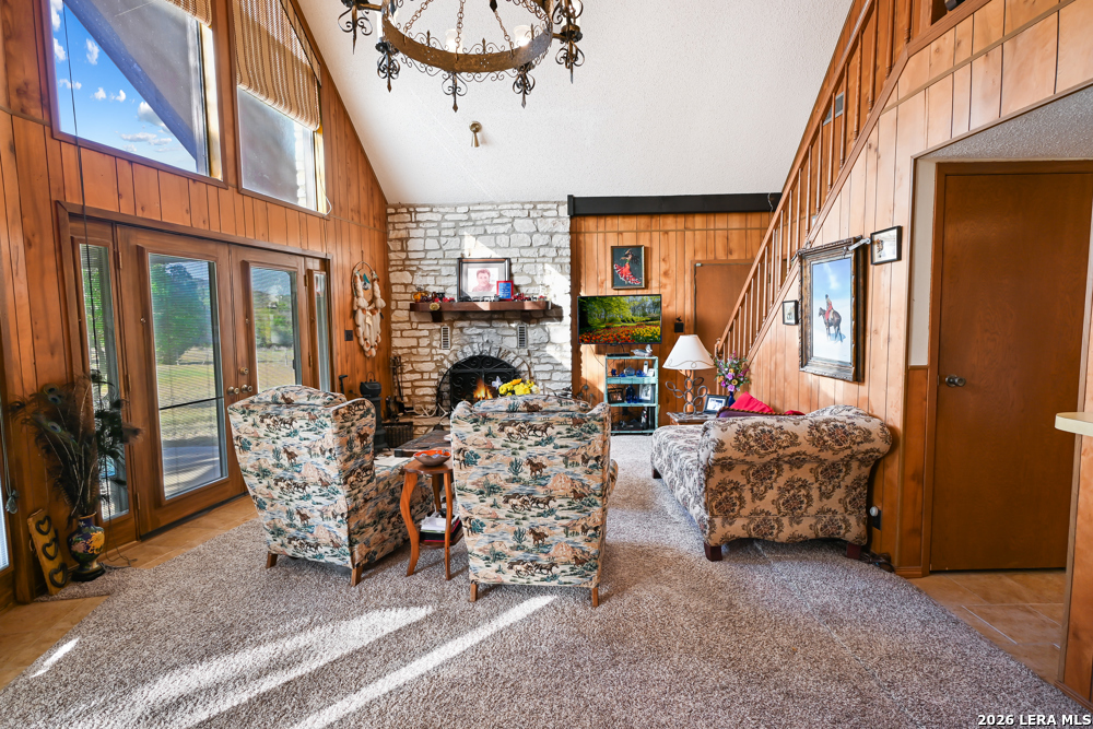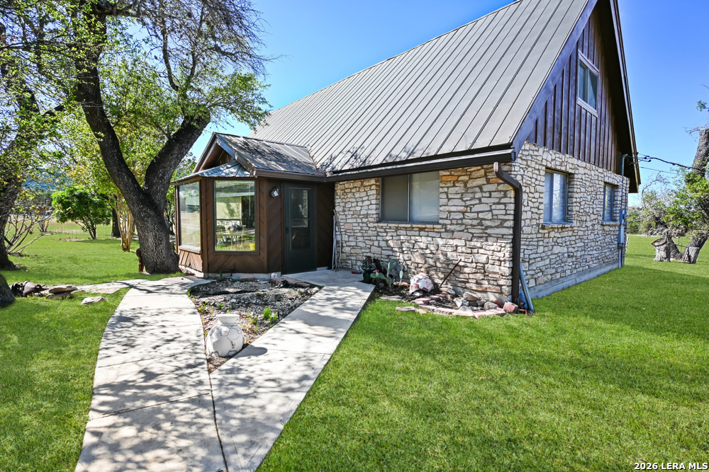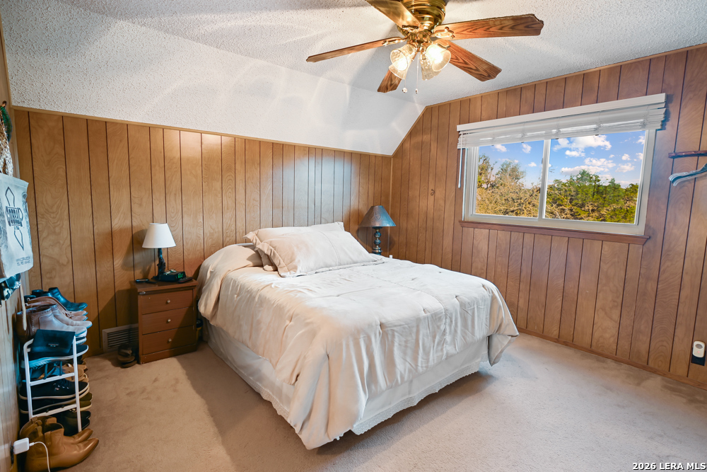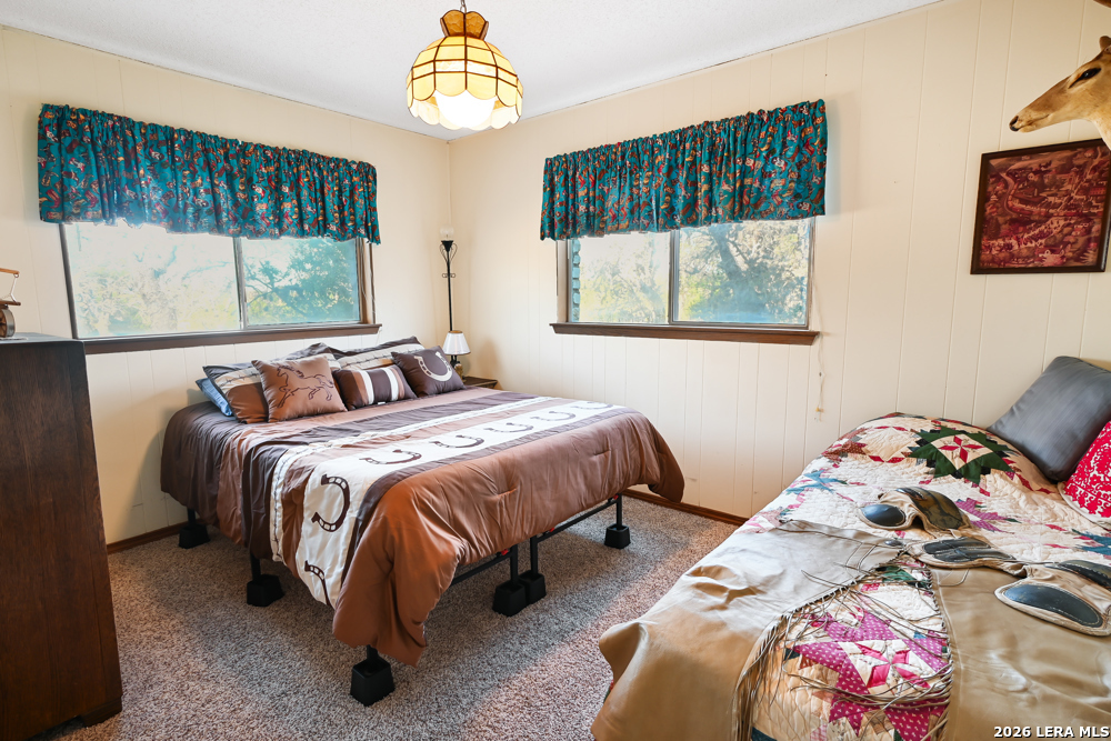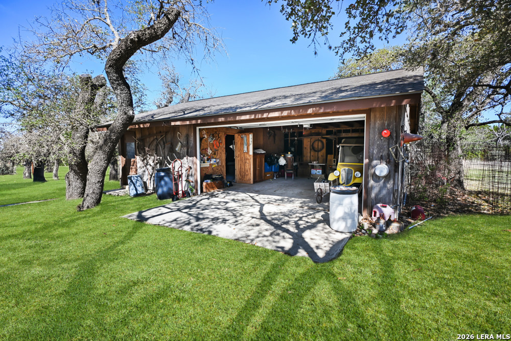 CASTLE LAKE PROPERTY - 13.5 Acres, 2 water wells, 3 bed/2bath 1,400 sqft home with a 2-car detached garage & shop. But that's not the story of this home! This is a Generational home, a home built with family, love, & memories. Where grandparents, children, & grandchildren all have played, fish & swam in the creek, picnicked, BBQ'd, camped, hunted, hiked, sang, laughed & told stories around a camp fire under the big Texas sky! Grandma & grandpa by the fireplace, grown children playing domino's in the kitchen, grandchildren playing checkers, playing hide-go-seek outside or video games upstairs! That's this home's ambiance/history. Quiet, private & secluded is where you'll locate this resting jewel at the end of the road. As your eyes scan the large useable land, images of horses grazing, childing playing, people camping, smiling-laughing & cars parked everywhere because all the family is here! Fenced & crossed fence, the 10 acre tract supports the home, garage/shop, private well & the cross fence divides the 3 acres tract with its own private well with RV hookups for extra space & company! The living area boasts large floor to ceiling windows to bring the outdoors in along with the large rock wood burning fireplace, iron chandelier & vaulted ceiling. The living room shares its space with the dining room, or large use of living area. Kitchen has lots of cabin space and is perfect for the cook who wants to reach everything! Breakfast bar, separate breakfast nook with outdoor access for children wanting to get back outside! Two nice size bedrooms, full bath & laundry room down stairs & upstairs a nice large area/bedroom, play room & full bath. This property is alive & full of wildlife as the watering holes keep the wildlife close like it has for centuries. White tail, Axis, hogs, birds, turkey, dove and more are just outside, enjoy nature at its finest! Whether a full time residence, summer home or start your own generational utopia...it's the perfect place for your family! Just minutes from Bandera Road that takes to you SA for Medical, shopping or work aka Hwy 16 a perfect commuters route. Turn key, most furniture & all Appliances can convey. Make an appointment today!