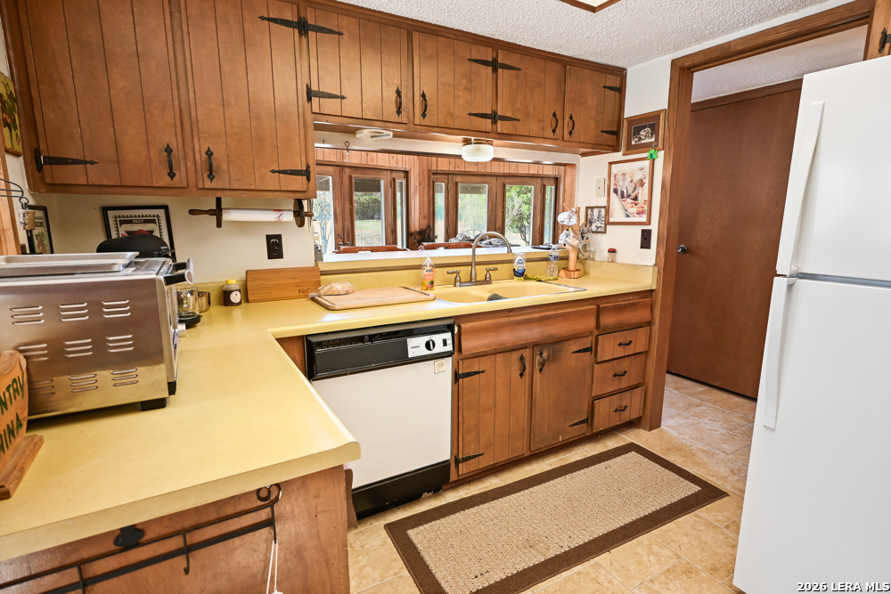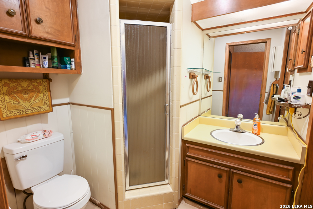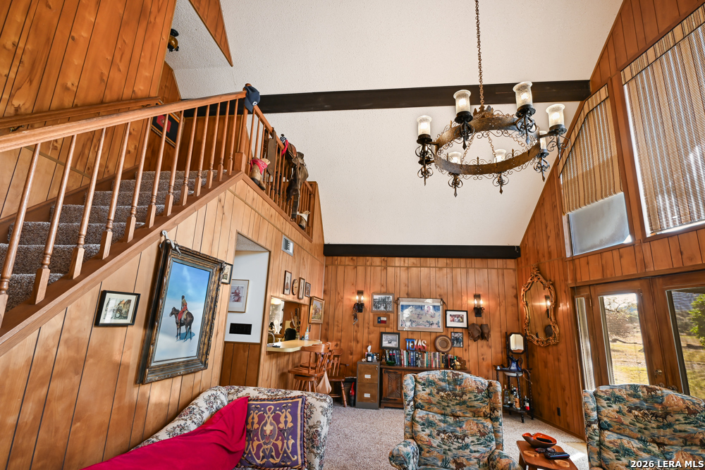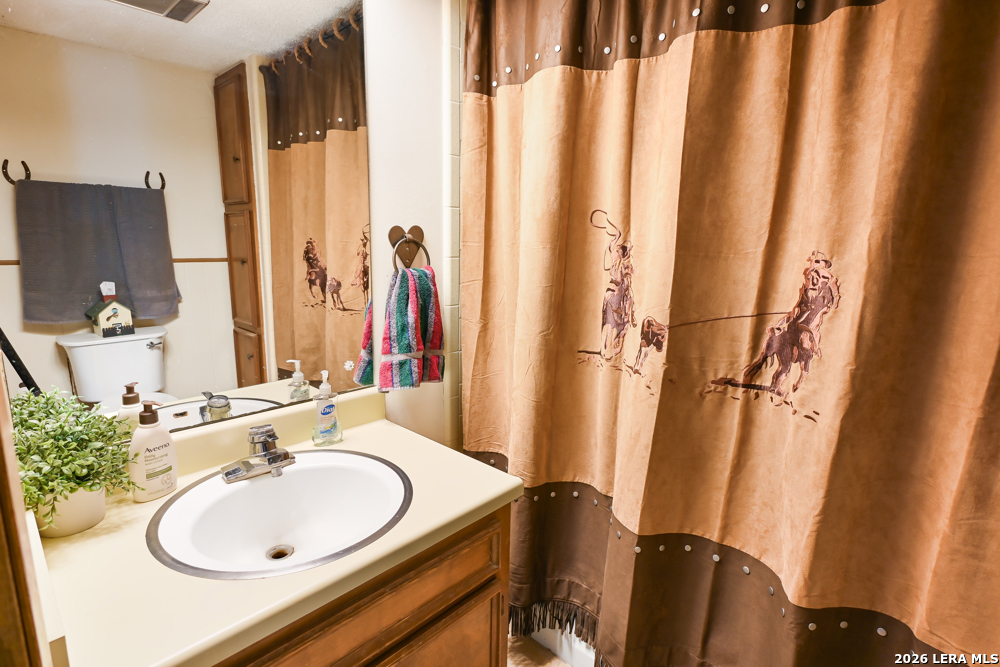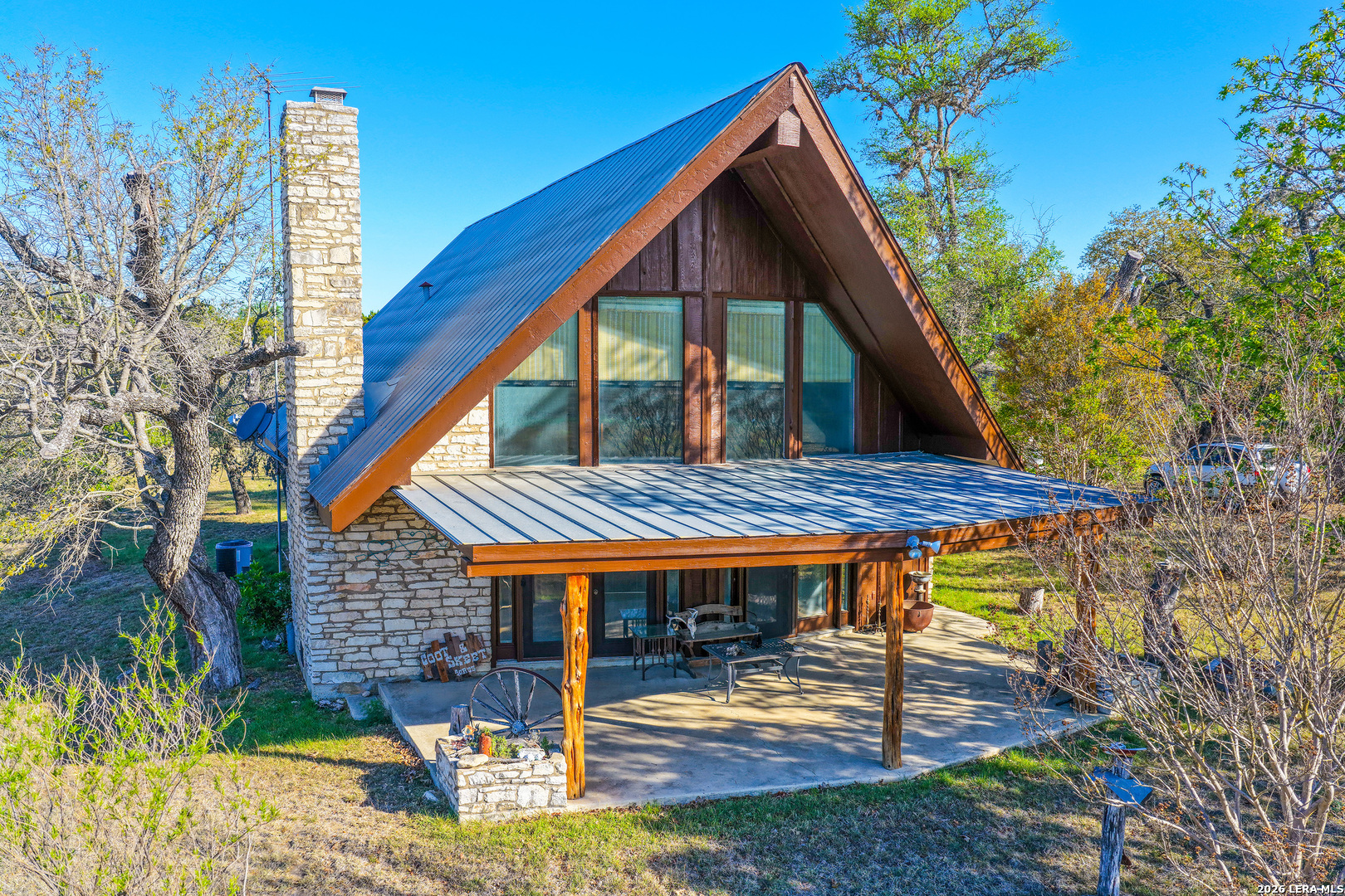 CASTLE LAKE PROPERTY - 13.5 Acres, 2 water wells, 3 bed/2bath 1,400 sqft home with a 2-car detached garage & shop. But that's not the story of this home! This is a Generational home, a home built with family, love, & memories. Where grandparents, children, & grandchildren all have played, fish & swam in the creek, picnicked, BBQ'd, camped, hunted, hiked, sang, laughed & told stories around a camp fire under the big Texas sky! Grandma & grandpa by the fireplace, grown children playing domino's in the kitchen, grandchildren playing checkers, playing hide-go-seek outside or video games upstairs! That's this home's ambiance/history. Quiet, private & secluded is where you'll locate this resting jewel at the end of the road. As your eyes scan the large useable land, images of horses grazing, childing playing, people camping, smiling-laughing & cars parked everywhere because all the family is here! Fenced & crossed fence, the 10 acre tract supports the home, garage/shop, private well & the cross fence divides the 3 acres tract with its own private well with RV hookups for extra space & company! The living area boasts large floor to ceiling windows to bring the outdoors in along with the large rock wood burning fireplace, iron chandelier & vaulted ceiling. The living room shares its space with the dining room, or large use of living area. Kitchen has lots of cabin space and is perfect for the cook who wants to reach everything! Breakfast bar, separate breakfast nook with outdoor access for children wanting to get back outside! Two nice size bedrooms, full bath & laundry room down stairs & upstairs a nice large area/bedroom, play room & full bath. This property is alive & full of wildlife as the watering holes keep the wildlife close like it has for centuries. White tail, Axis, hogs, birds, turkey, dove and more are just outside, enjoy nature at its finest! Whether a full time residence, summer home or start your own generational utopia...it's the perfect place for your family! Just minutes from Bandera Road that takes to you SA for Medical, shopping or work aka Hwy 16 a perfect commuters route. Turn key, most furniture & all Appliances can convey. Make an appointment today!