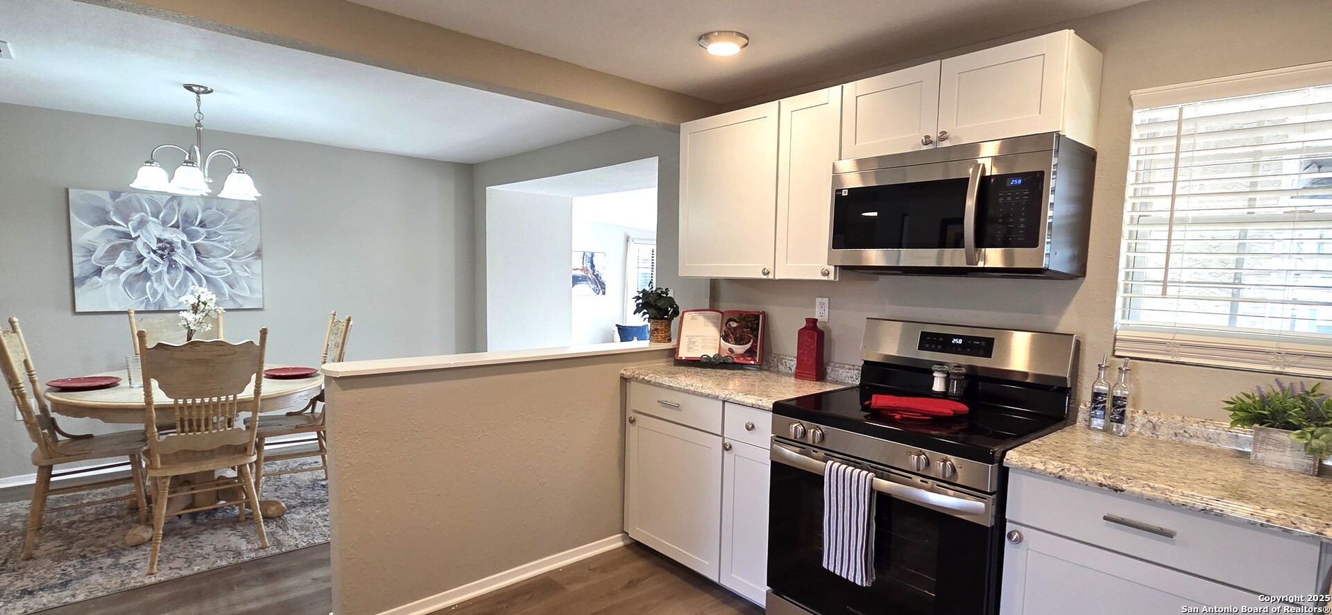 Completely updated and beautiful. Spacious 5 bedroom home with 2 living areas. New cabinets. New countertops. New stainless appliances. New light fixtures. New faux flooring in both living areas, dining, and kitchen. Fresh paint inside and out. New 2 inch blinds and window treatments are included. 2 lots. 2 sheds. Full house rewired electric up to code 2024. New roof 2024. New energy efficient heat pump AC and heat system 2024.