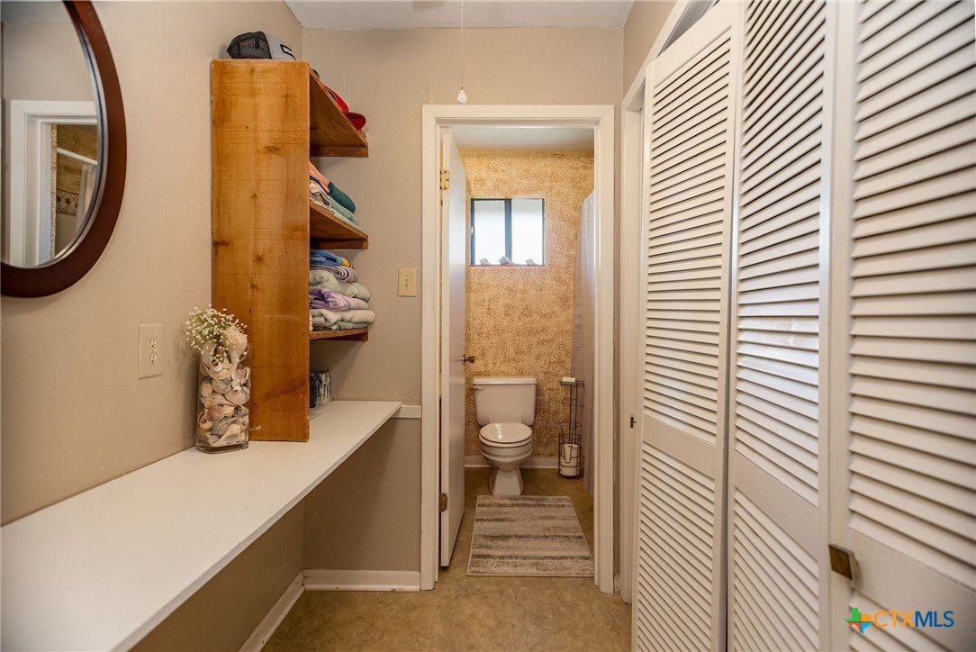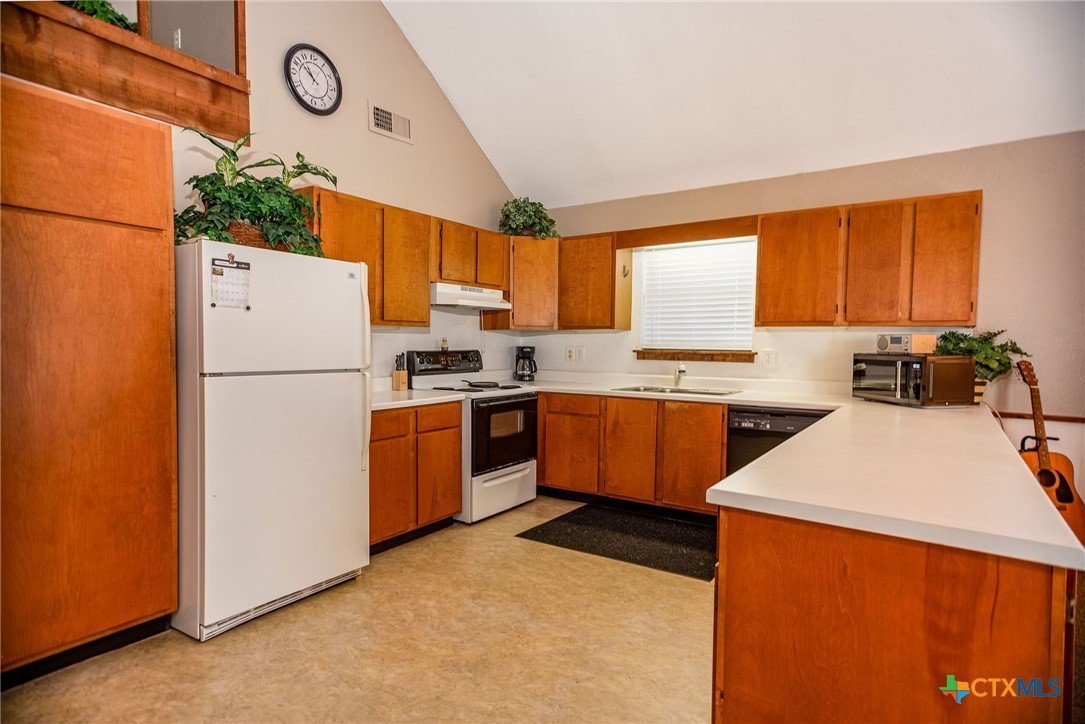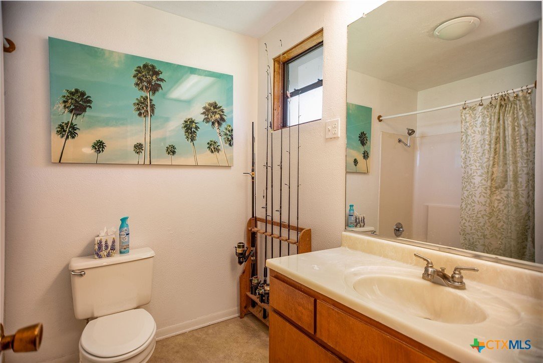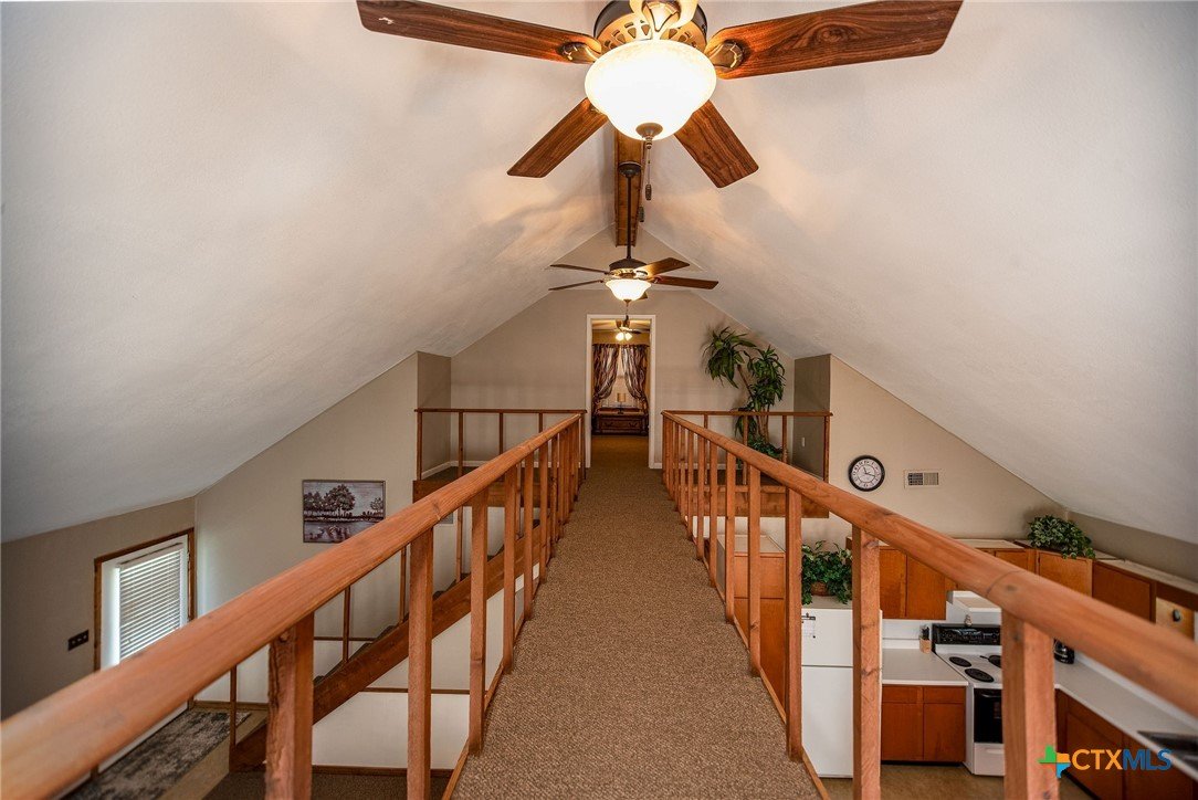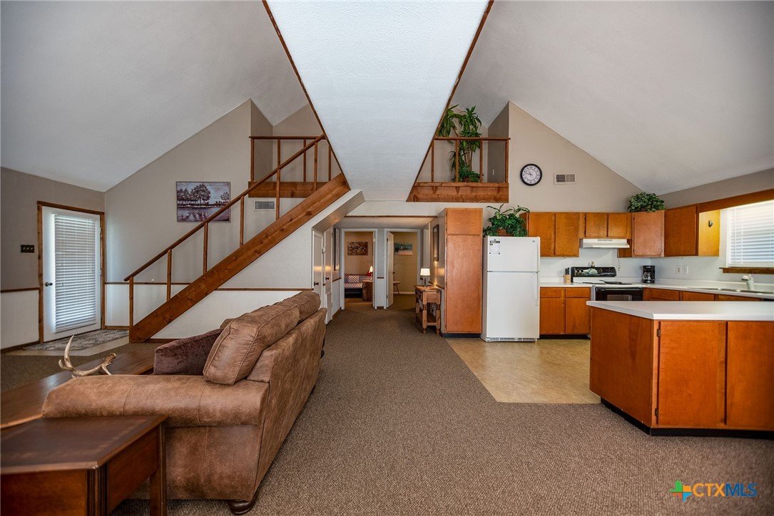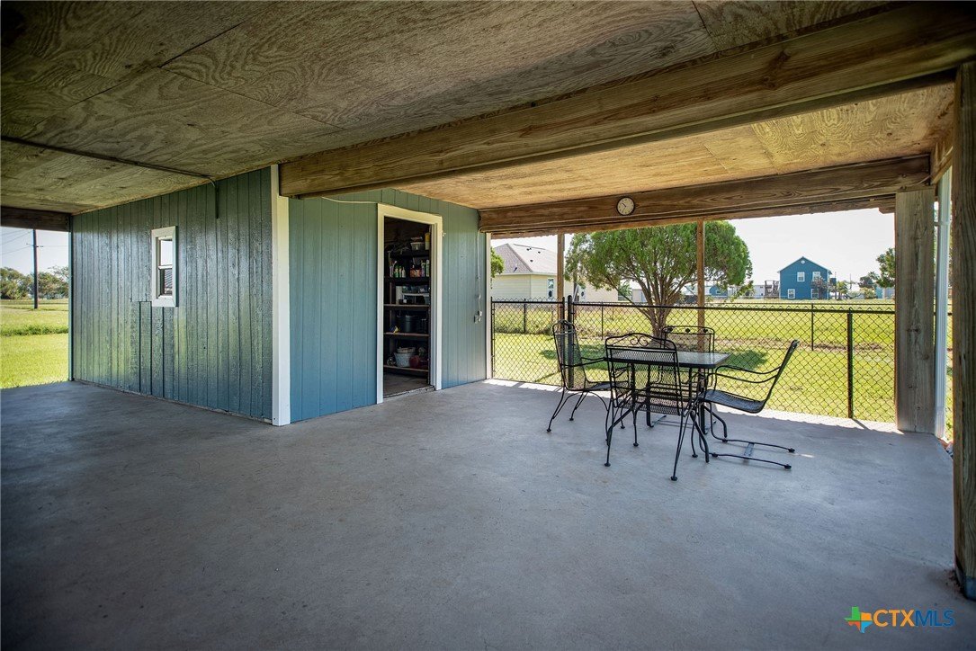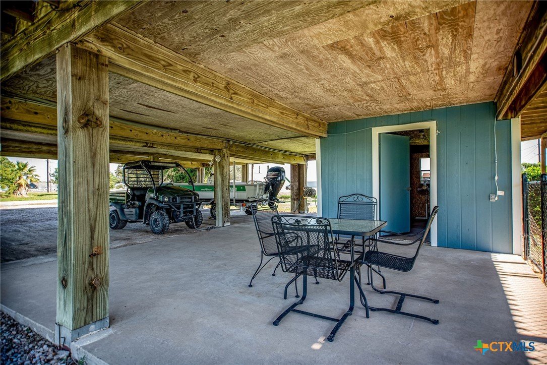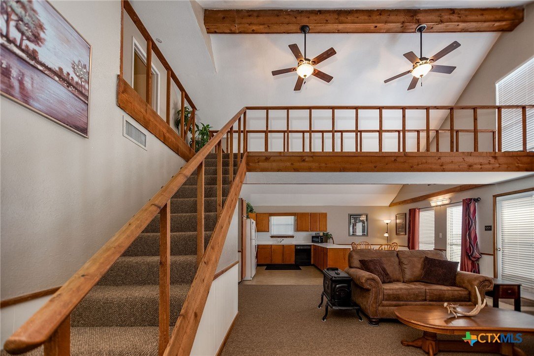 This beautiful 3 bedroom, 2 bathroom home offers the ultimate coastal lifestyle. Nestled in a gated waterfront community on 2 lots, this elevated home boasts breathtaking views of Carancahua Bay from its spacious balcony. The open-concept layout creates a bright and airy living space between the living room, kitchen and dining areas. Upstairs, you will find a private third bedroom connected to a unique catwalk that adds a touch of character and charm and provides a bird's-eye view of the main living space. Enjoy the community's amenities, including two swimming pools, tennis court, boat ramp, pier, and festive holiday events.