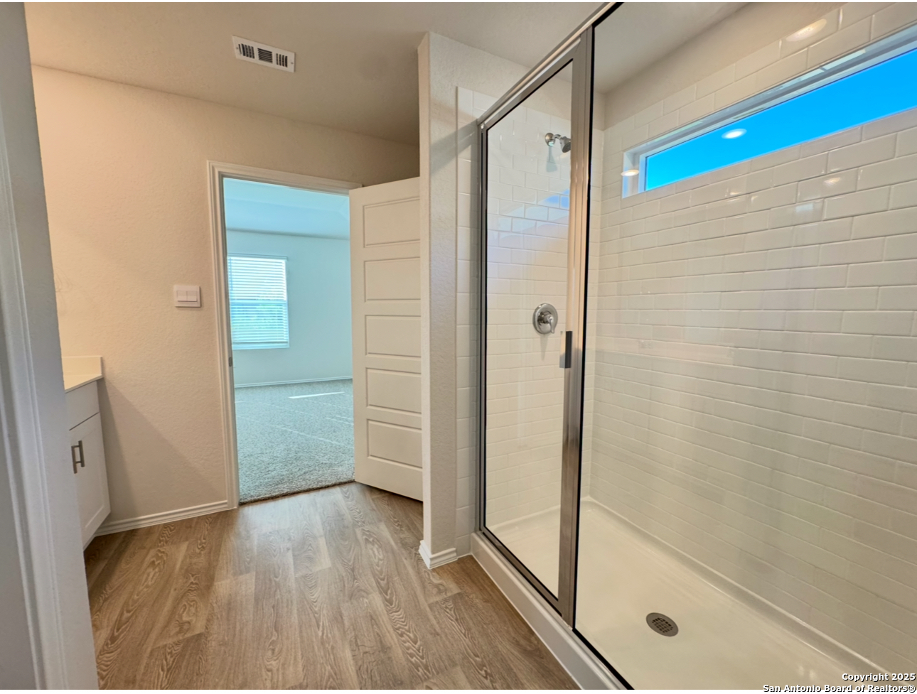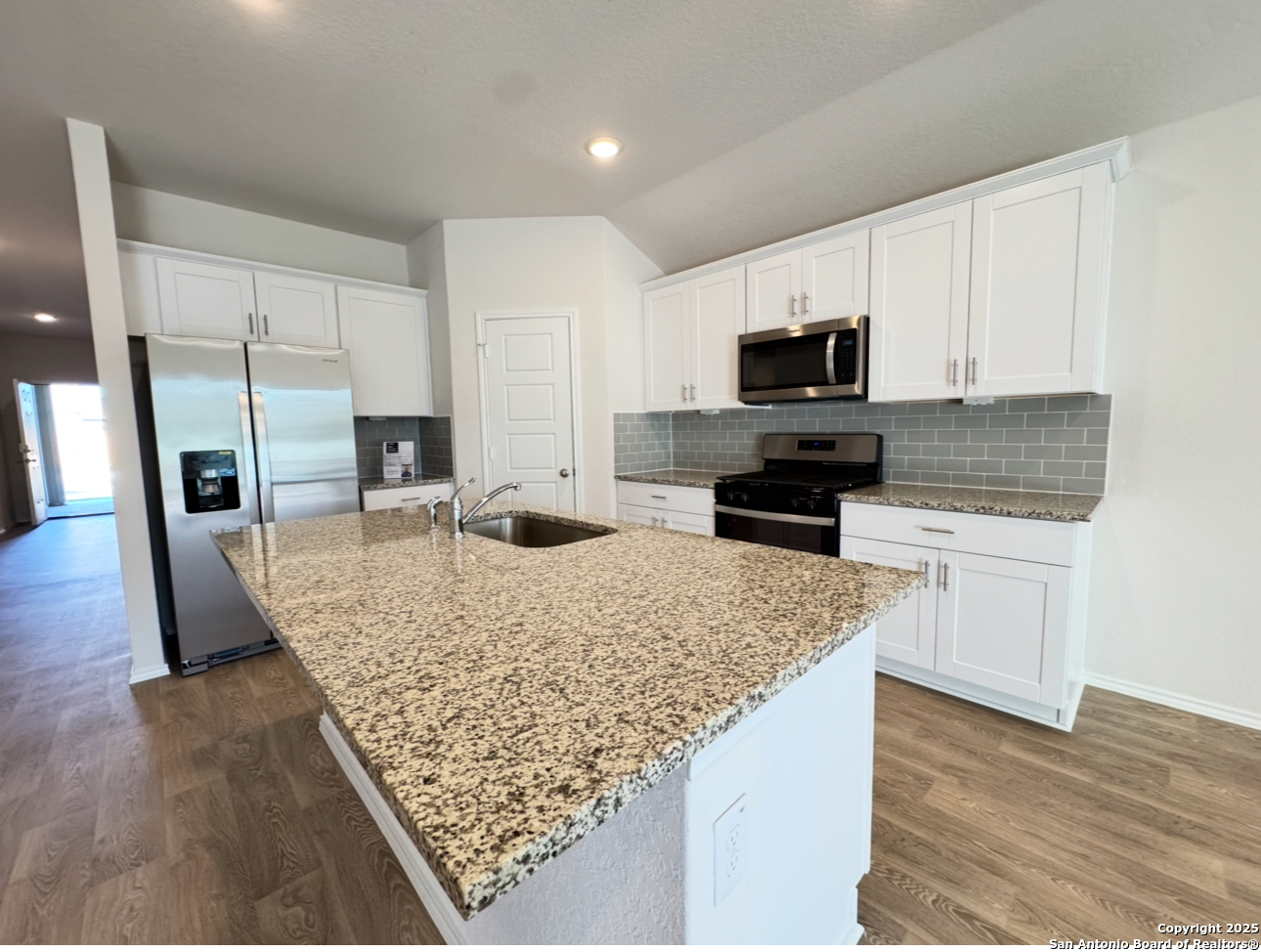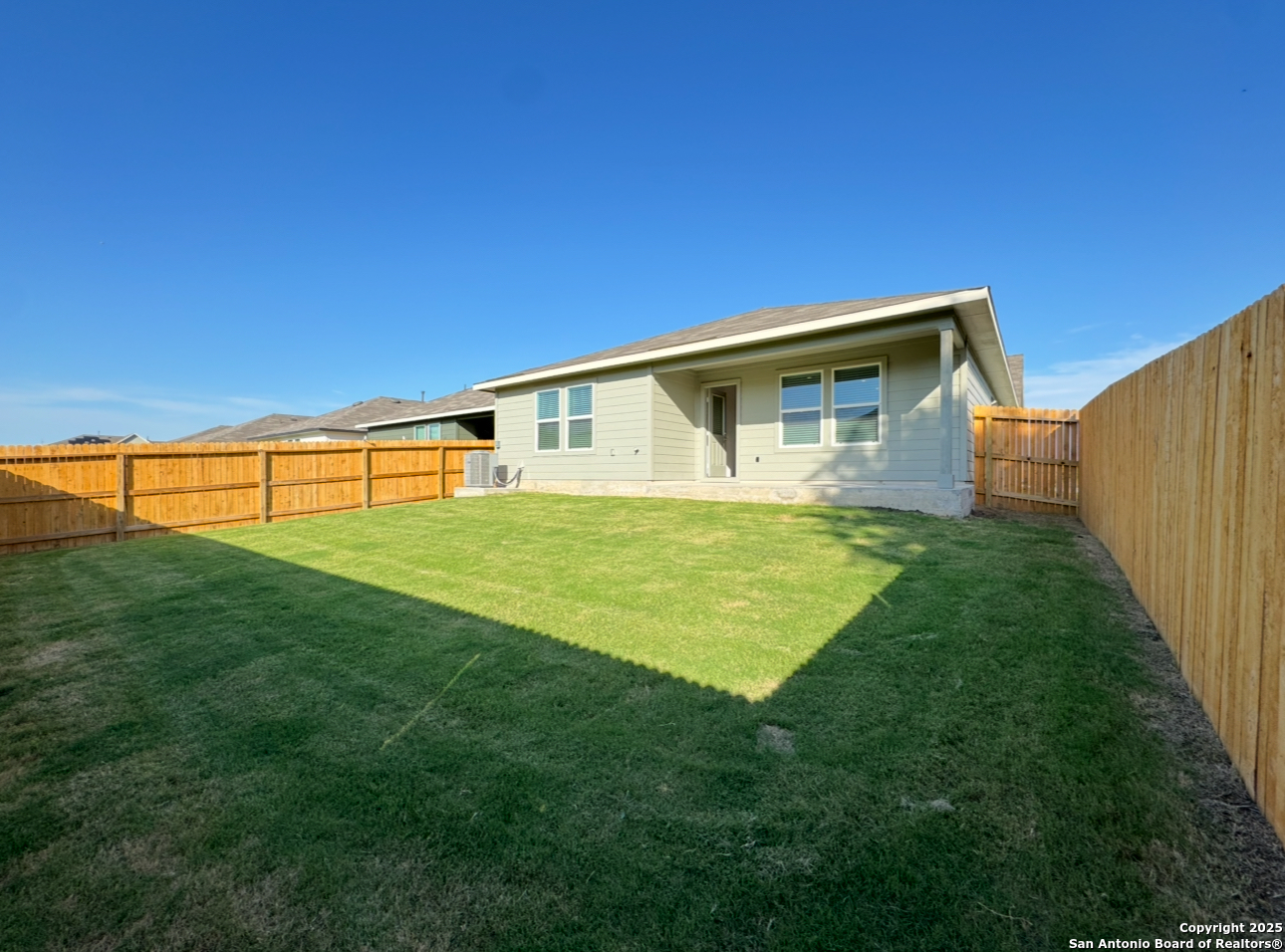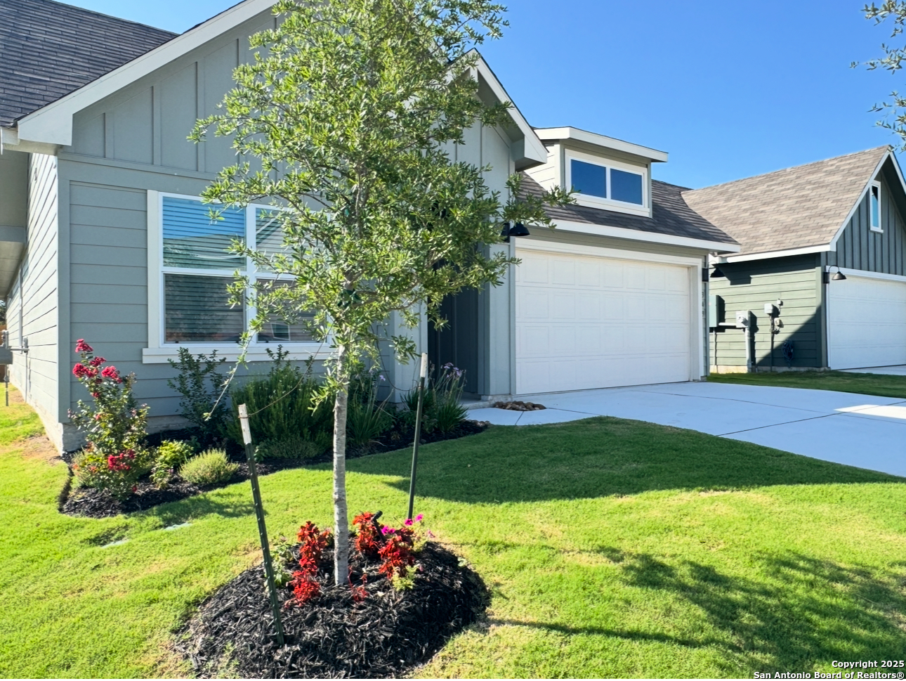 Brand new, single 4 bedroom home. This modern farmhouse-style home boasts an inviting open floor plan. The spacious dining room is conveniently located across from the kitchen, which serves as the heart of the home. The kitchen is equipped with a large island and sleek white cabinets, aligning perfectly with the home's modern aesthetic. **Includes Refrigerator, washer, and dryer ** The primary suite is a luxurious retreat with a generous walk-in shower and an expansive walk-in closet. The backyard offers privacy and includes a covered patio, ideal for BBQ gatherings. Situated in the thriving city of New Braunfels, this home is close to all essential amenities.