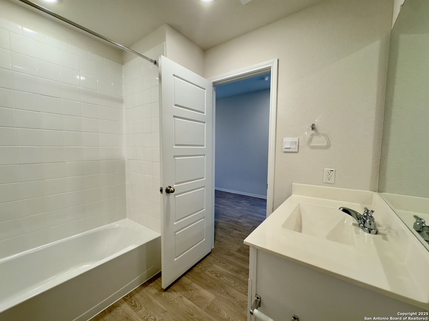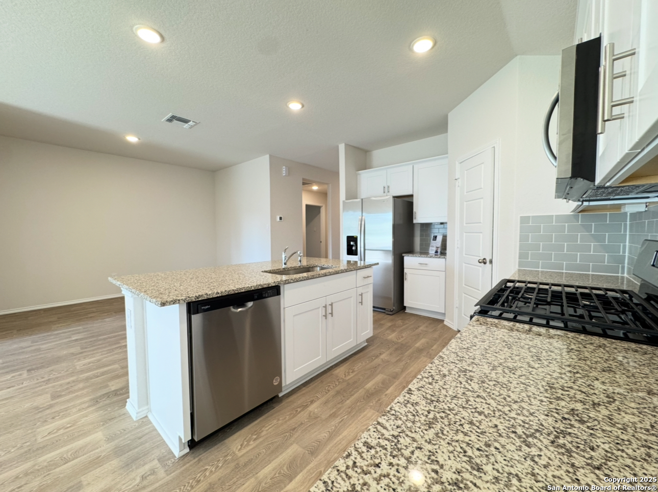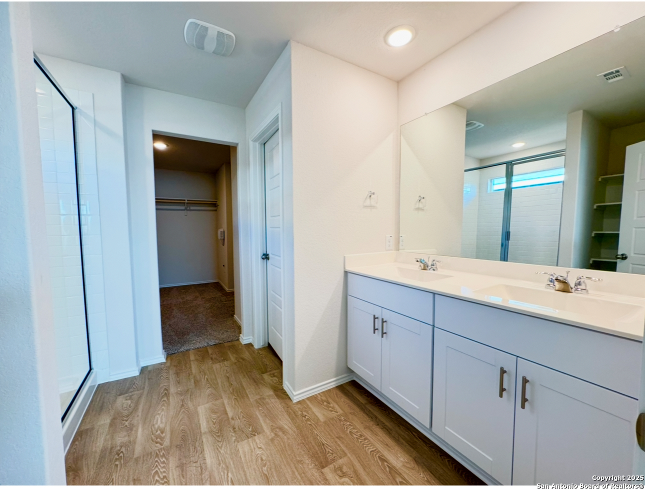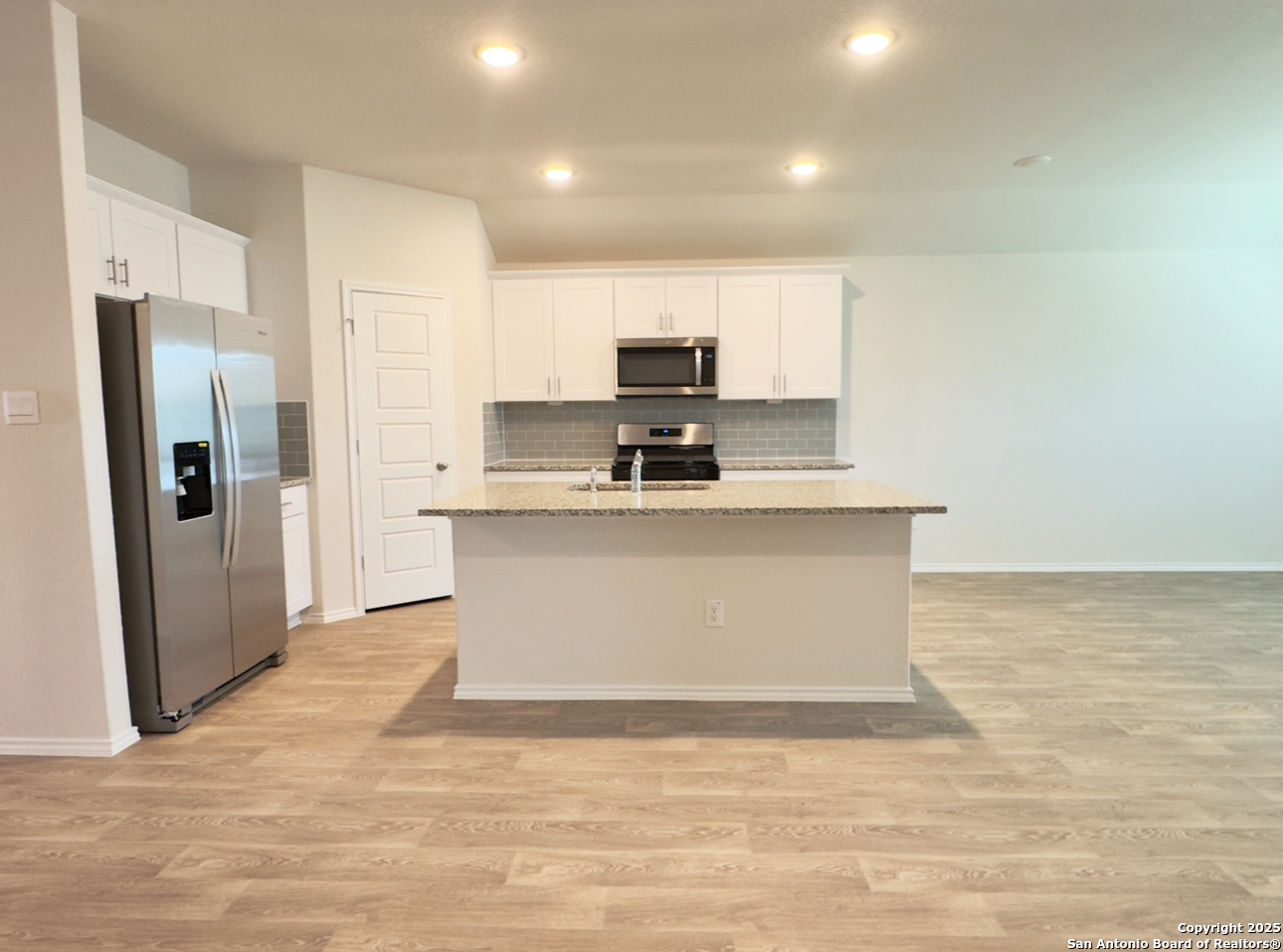 Brand new, single 4 bedroom home. This modern farmhouse-style home boasts an inviting open floor plan. The spacious dining room is conveniently located across from the kitchen, which serves as the heart of the home. The kitchen is equipped with a large island and sleek white cabinets, aligning perfectly with the home's modern aesthetic. **Includes Refrigerator, washer, and dryer ** The primary suite is a luxurious retreat with a generous walk-in shower and an expansive walk-in closet. The backyard offers privacy and includes a covered patio, ideal for BBQ gatherings. Situated in the thriving city of New Braunfels, this home is close to all essential amenities.