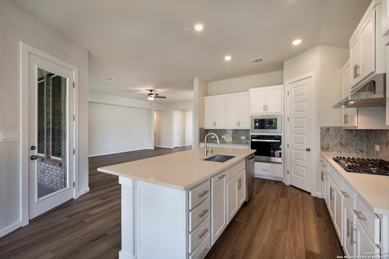 Discover the perfect blend of style, function, and comfort in this beautifully crafted Scott Felder Home located in the heart of the Veramendi master-planned community. This single-story, move-in ready residence offers 4 spacious bedrooms, 3 full baths, and 2,682 sq. ft. of thoughtfully designed living space. Step inside and you'll find an open-concept floor plan featuring a gourmet kitchen with an oversized island, custom cabinetry, and modern finishes. The dining area is enhanced by a charming bay window, flooding the space with natural light. A private study with elegant French doors provides the perfect setting for remote work or quiet retreat. The luxurious owner's suite boasts a spa-inspired bath complete with a drop-in soaking tub, separate shower, and dual vanities. Secondary bedrooms include walk-in closets for ample storage. Outside, enjoy seamless indoor-outdoor living with an extended covered patio, ideal for entertaining or simply relaxing. Situated in Veramendi, this home provides access to resort-style amenities including a pool, clubhouse, jogging trails, playgrounds, and more. Conveniently located near schools, shopping, dining, and the Guadalupe River, this home captures the essence of Hill Country living with modern conveniences. This Scott Felder masterpiece is truly move-in ready and waiting to welcome its next owners.