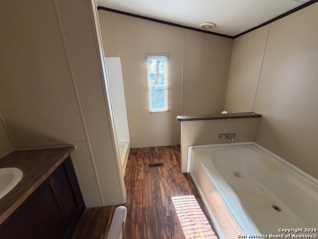 Very large yard and a 3 bed, 2 bath, approximately 1200 SF Manufactured home that could be used as an office for a commercial business or home for a residential.
